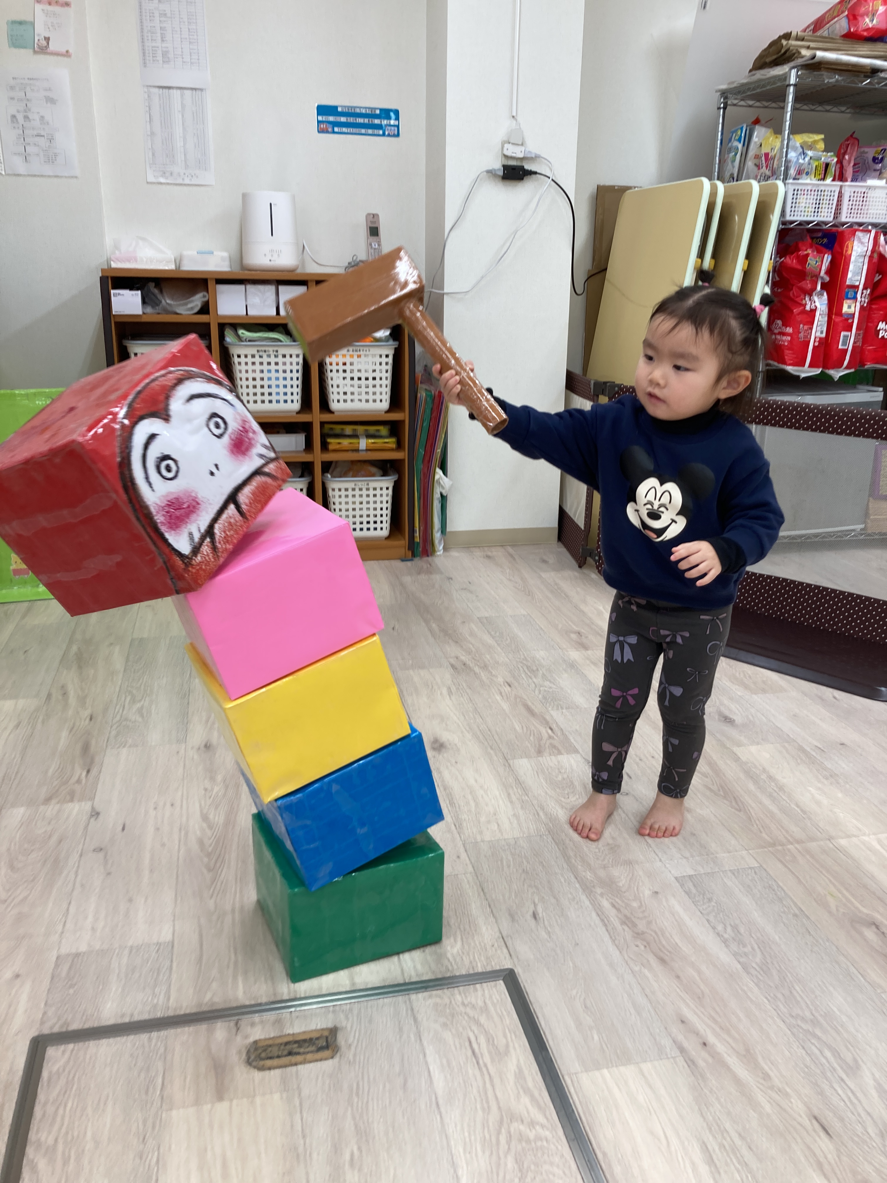 トンカチを振って上手にだるまに当てていました!
