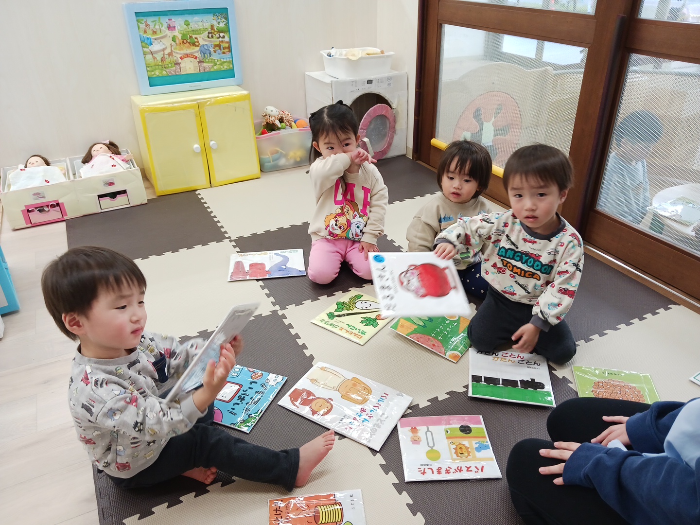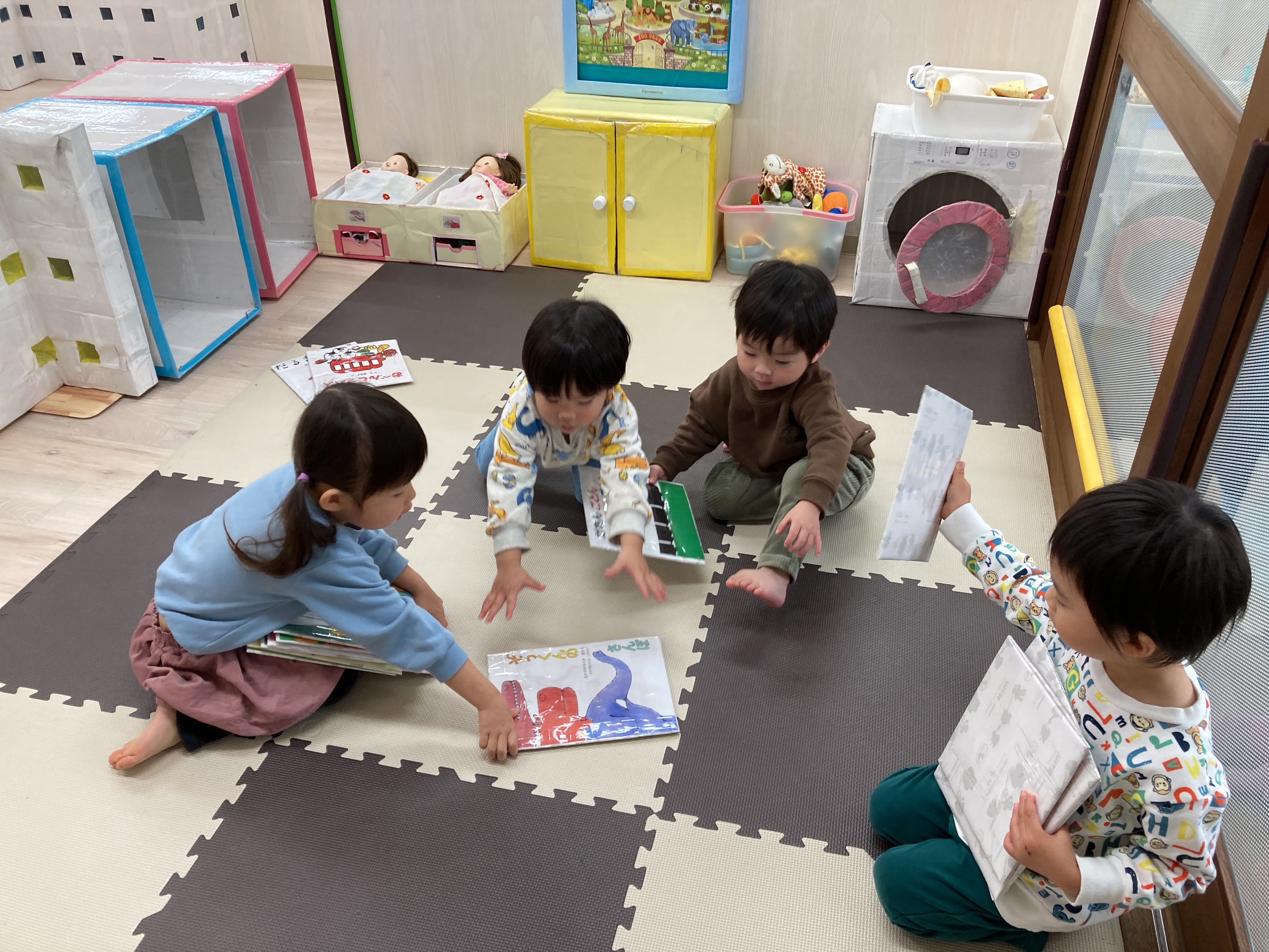 大きいお友だちは、お友だちとかるたを取り合って勝負を楽しんでいました![]()