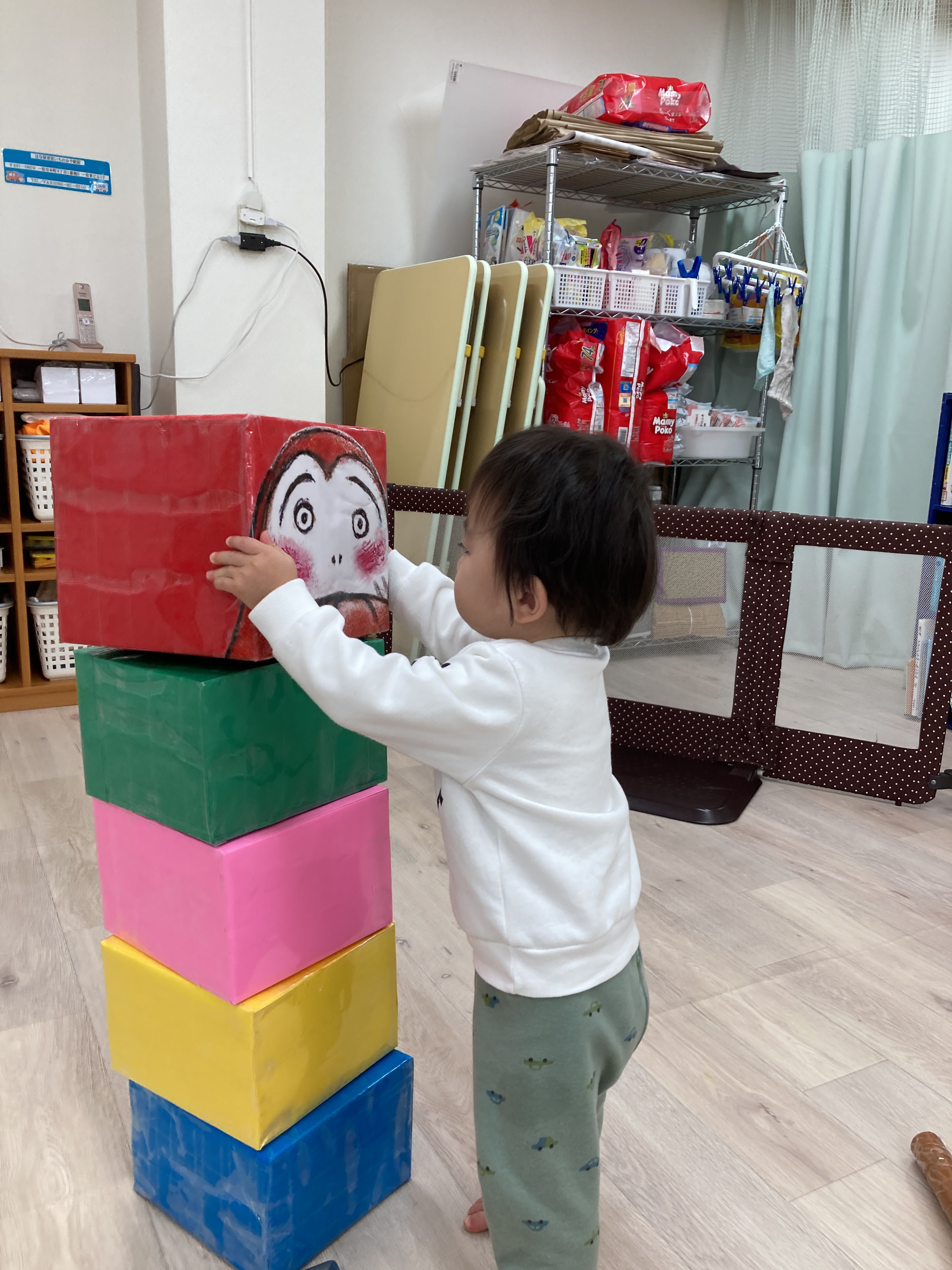 倒れただるまを積み直すのもとても上手でした![]()
