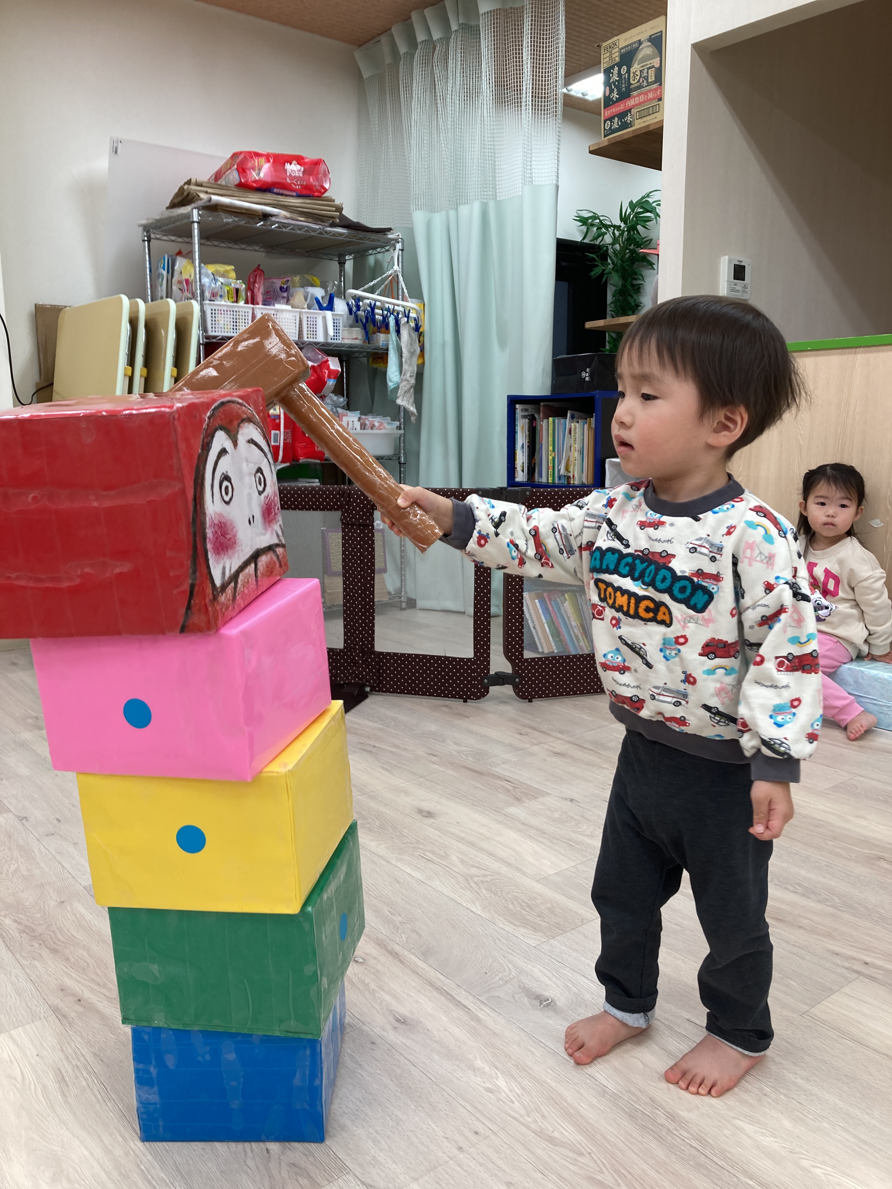 全部倒れるとやったー!と大喜びしている子もいましたよ![]()