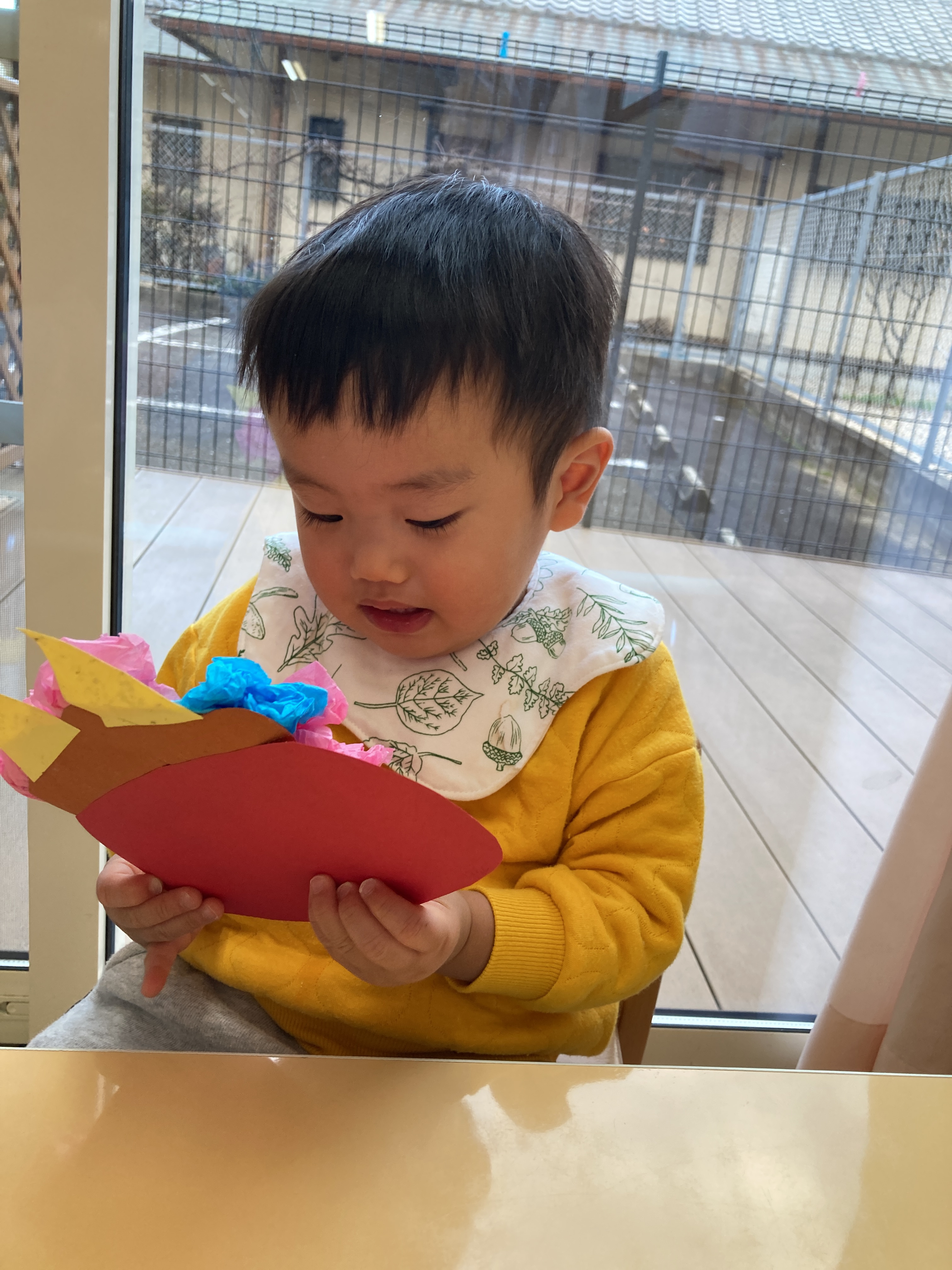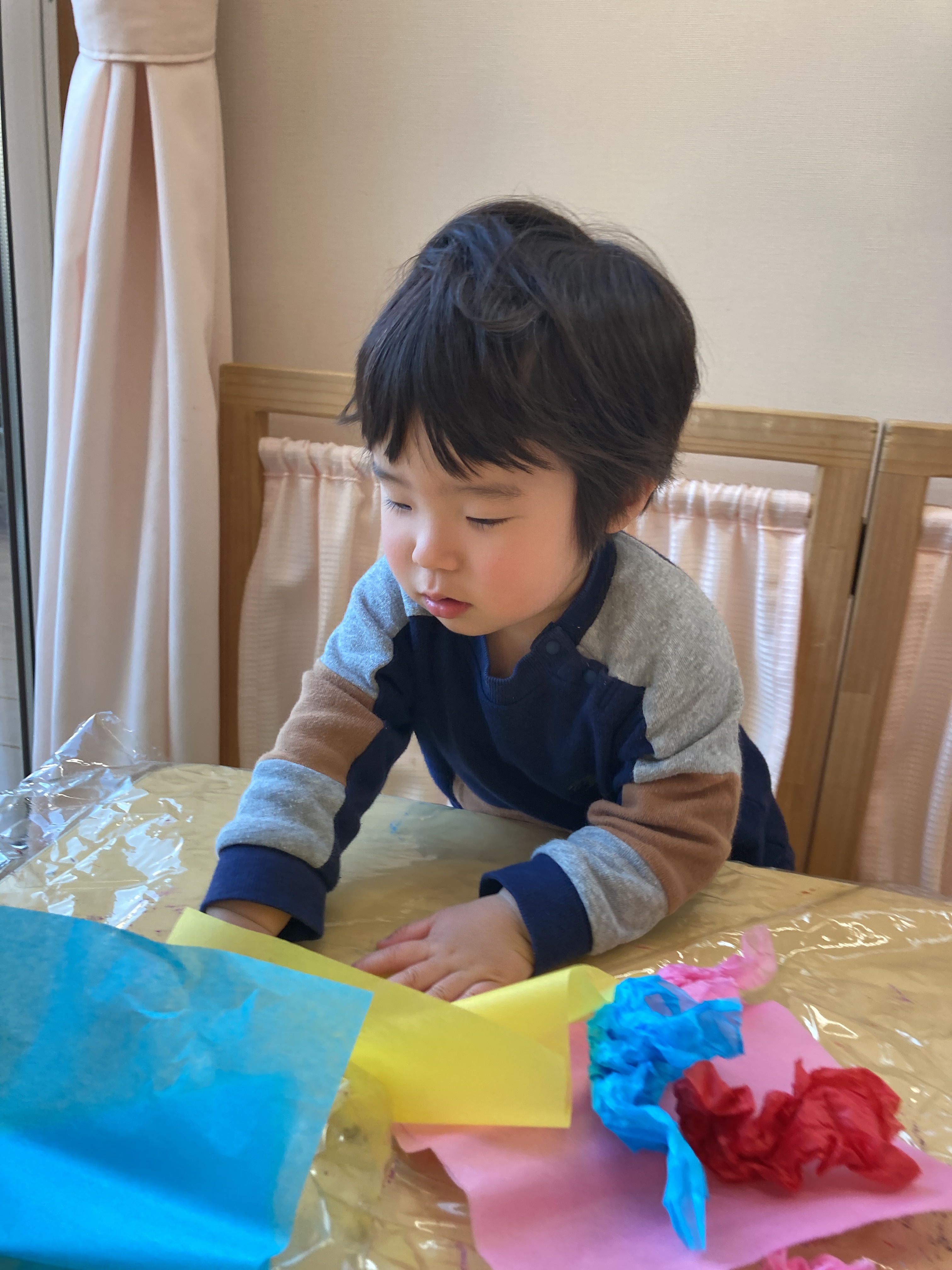 お花紙の色を選ぶときも「あお」や「あか」と使いたい色を教えてくれたり、「これがいい」と使いたい色を指さしして伝えてくれました!
