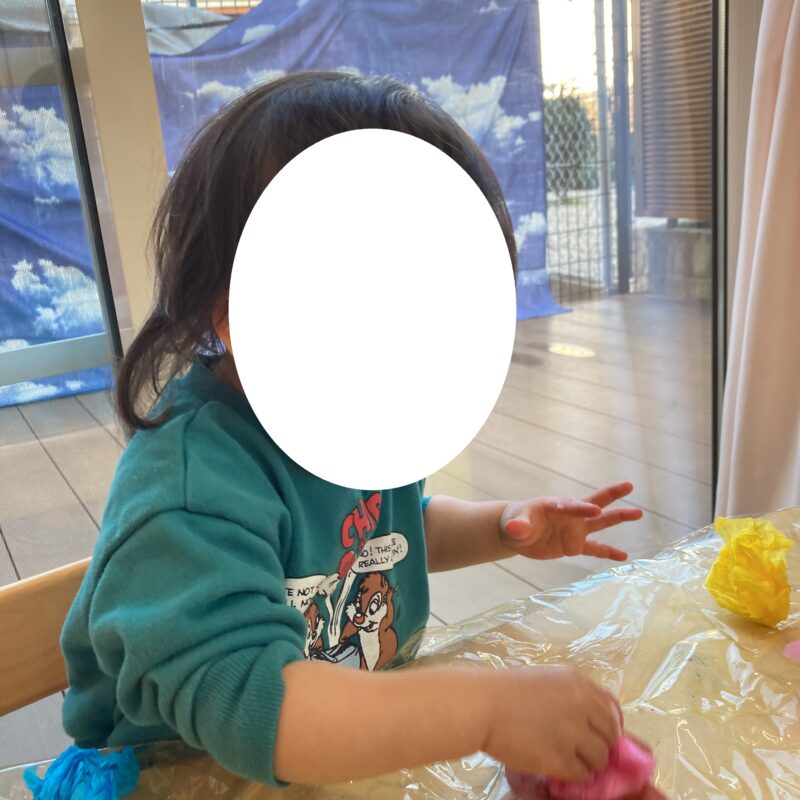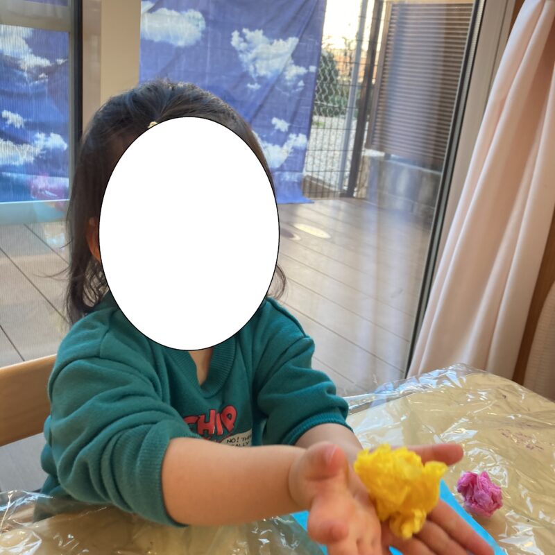 ジャーン!!上手に丸めたよ!」と、丸めたお花紙を見せてくれました。
