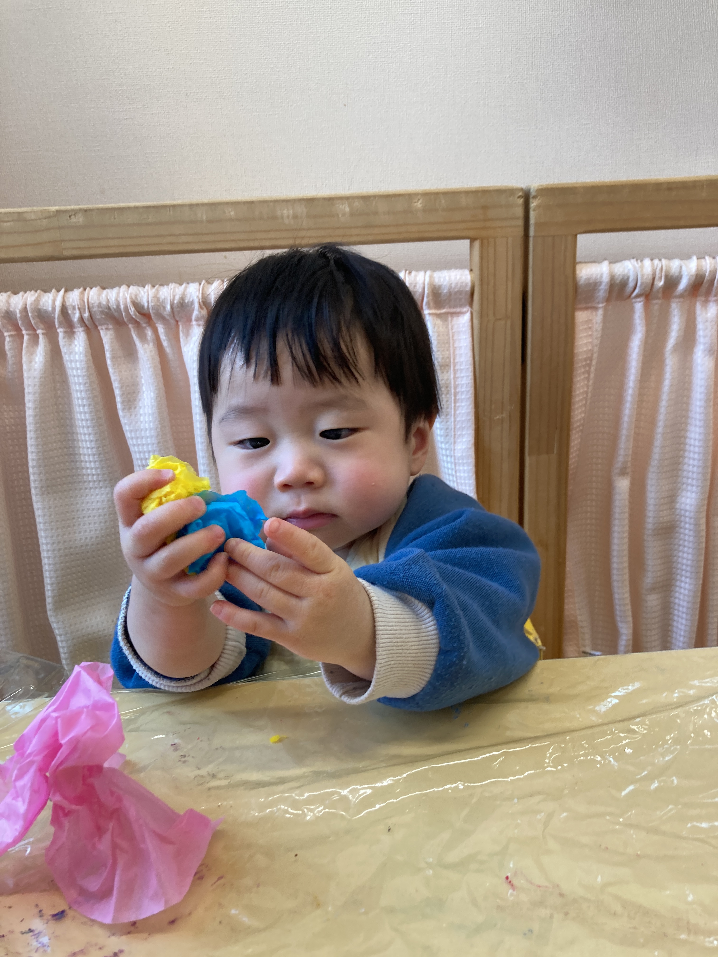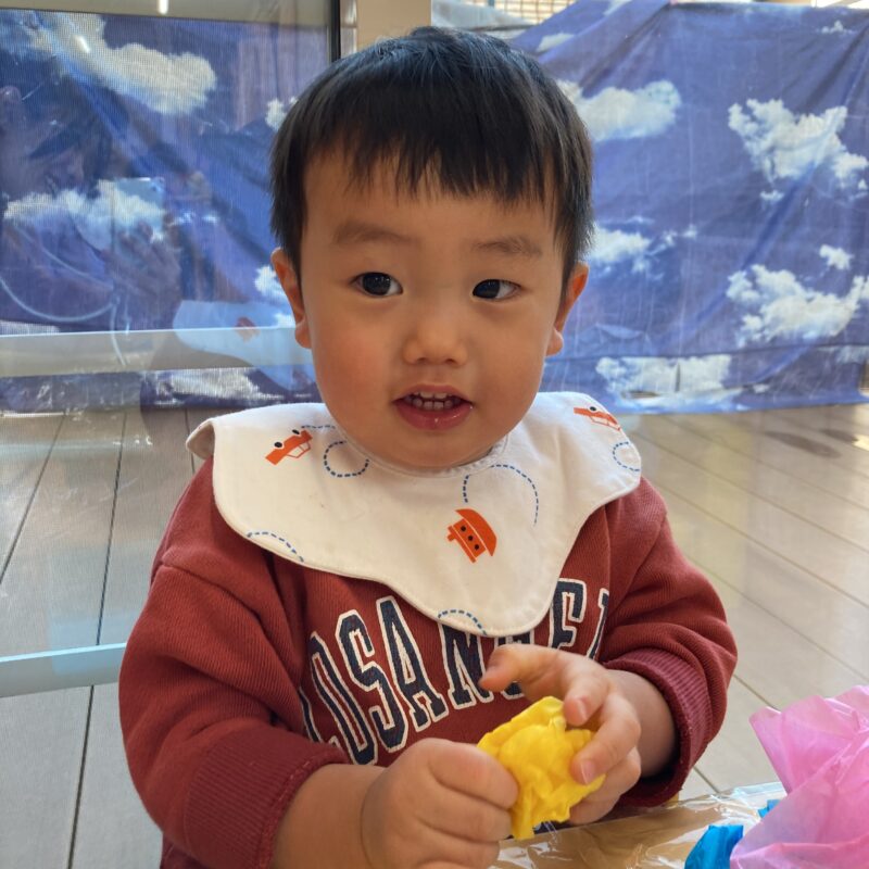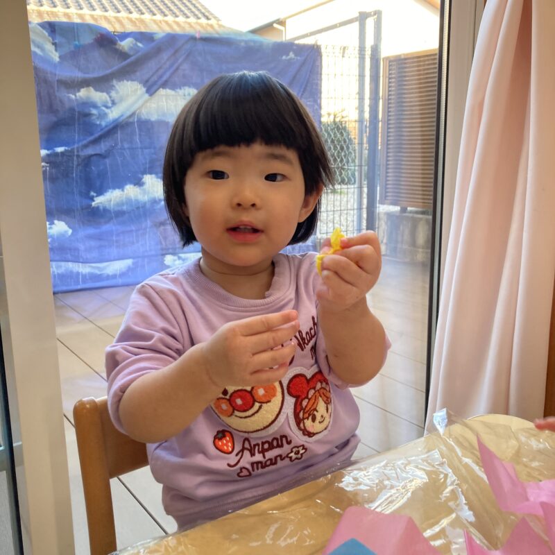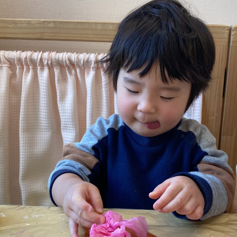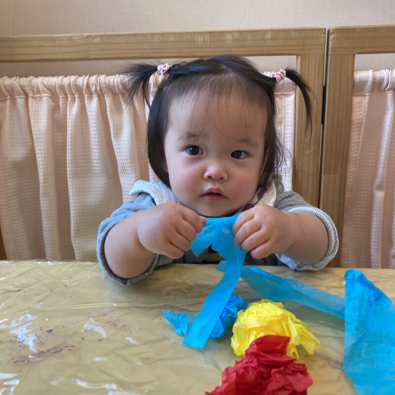 初めて見るお花紙に「これは何だろう?」と不思議そうな表情を浮かべる子もいました!