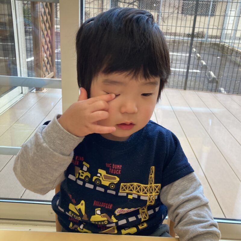 「ここらへんかなぁ?」と自分の目や口に触れて場所を確認する素振りも見られました