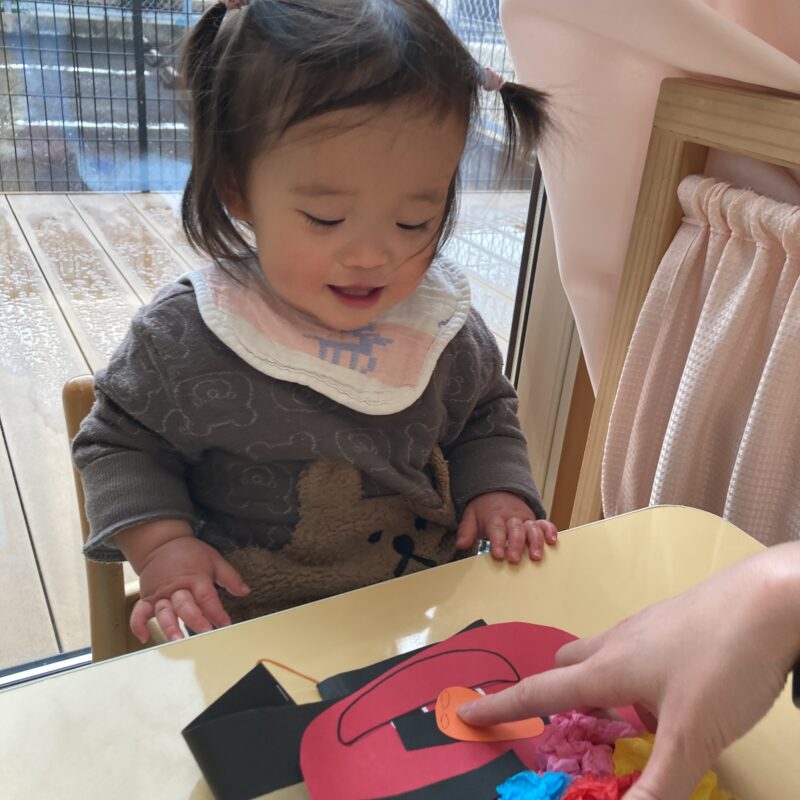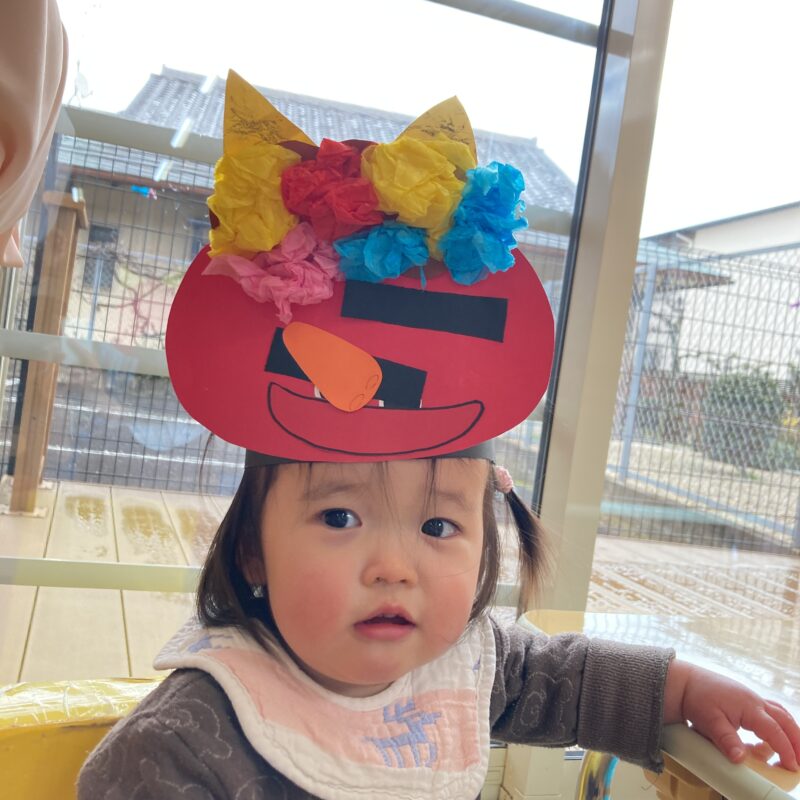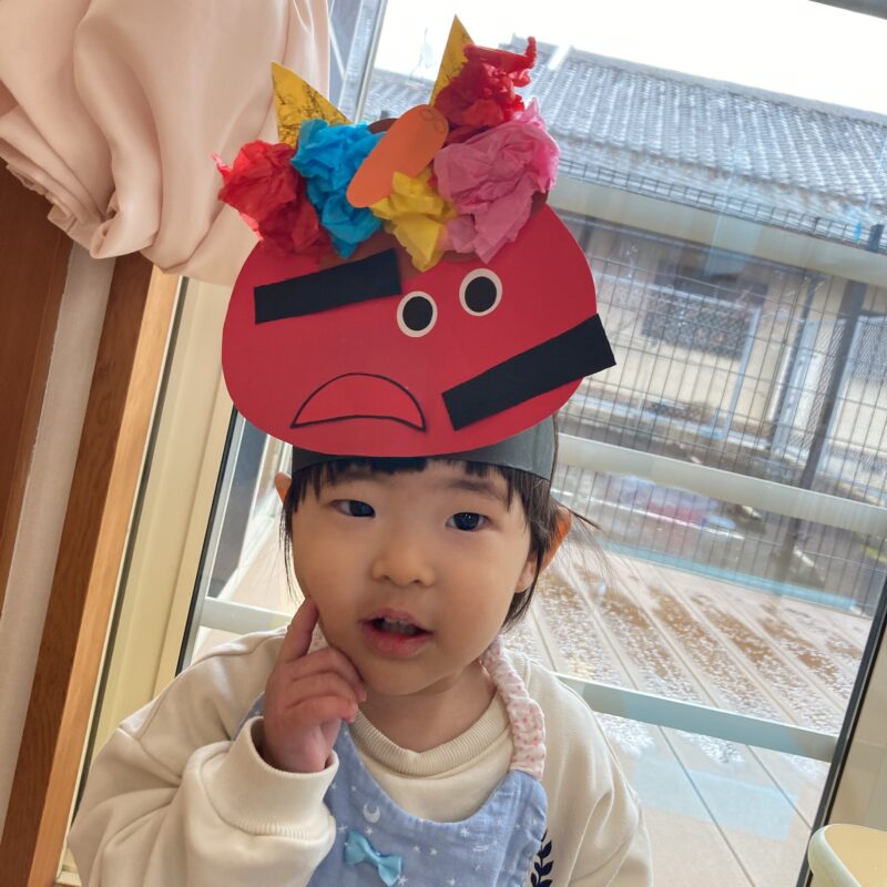 もうすぐ2月になり節分がやってきますね。節分の日に興味をもってもらえるように鬼のお面を作りました👹