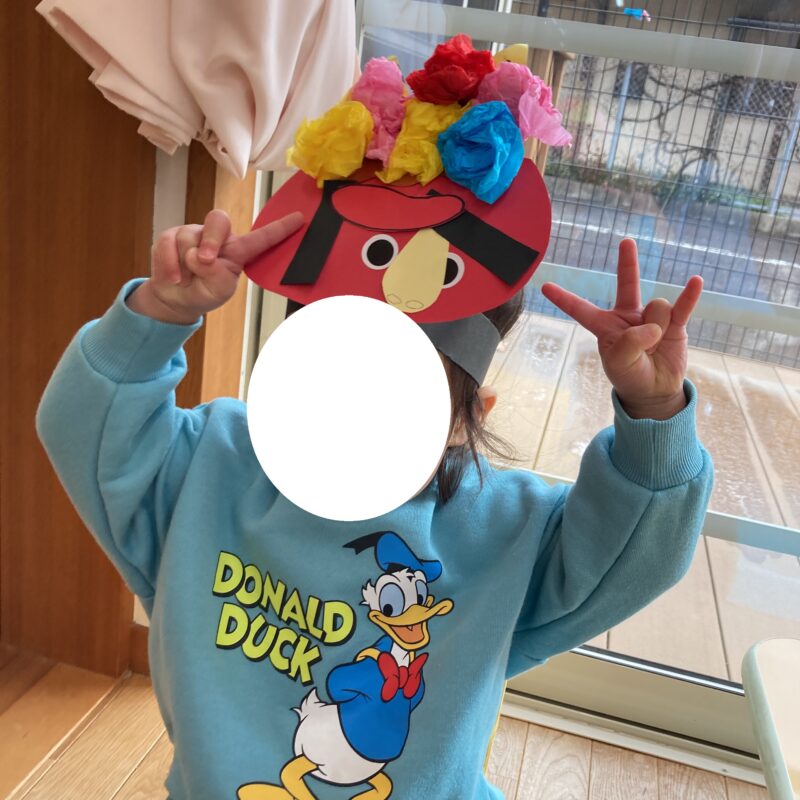 鬼のお面が完成したのでこれから節分遊びを楽しんでいきたいと思います!