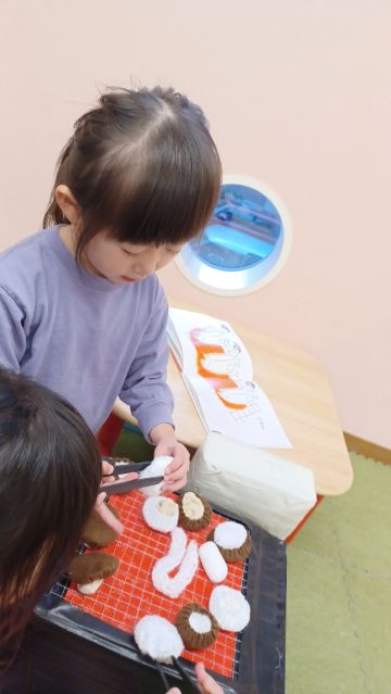 食べている途中も、「お餅がびよーんってのびちゃう~!」、「ちょっと食べてみてもいい?」と分けっこをしながら楽しんでいましたよ