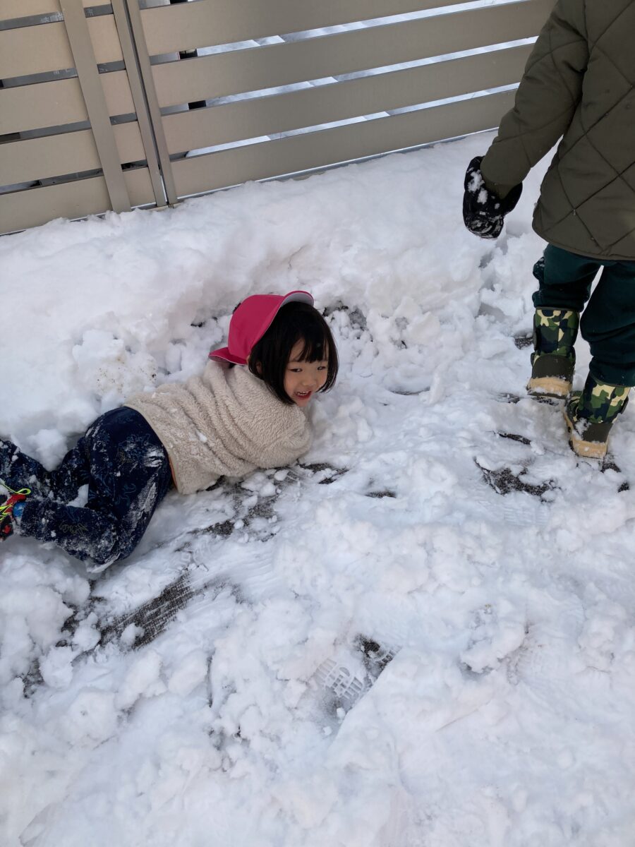 雪の布団に寝っ転がって、全身で雪を感じている子もいました![]()