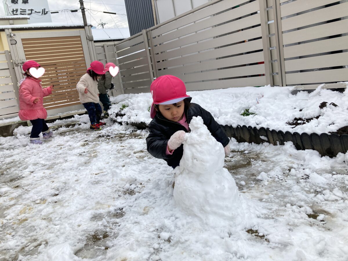 先生と一緒に黙々と雪だるまを作っているお友だちも⛄