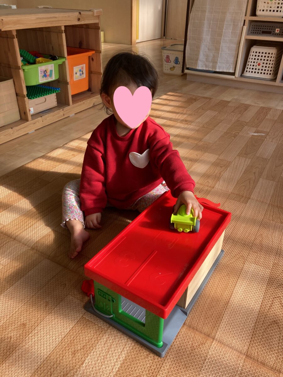 車を左右に動かして遊んでいます。 ゴーゴーという音を鳴らしています🚙