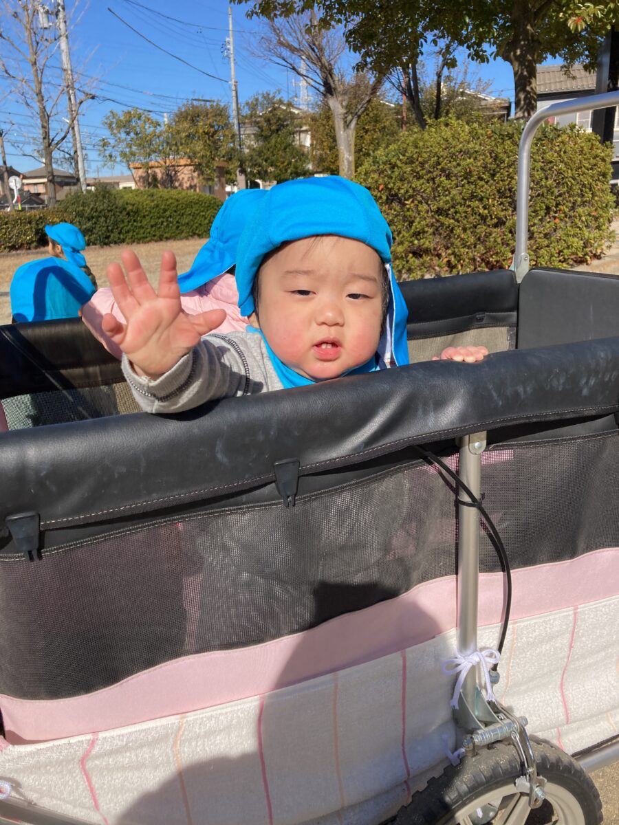 散歩車にのって公園へ。みんないつもニコニコで乗っています![]()