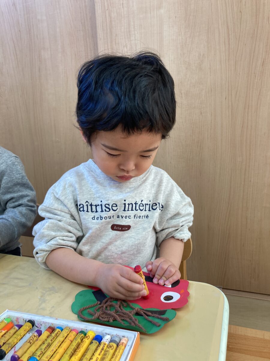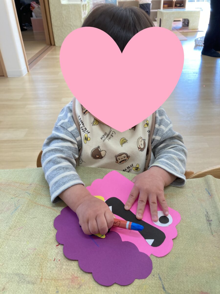 仕上げにクレヨンで、鬼の顔に色をつけましたよ✨