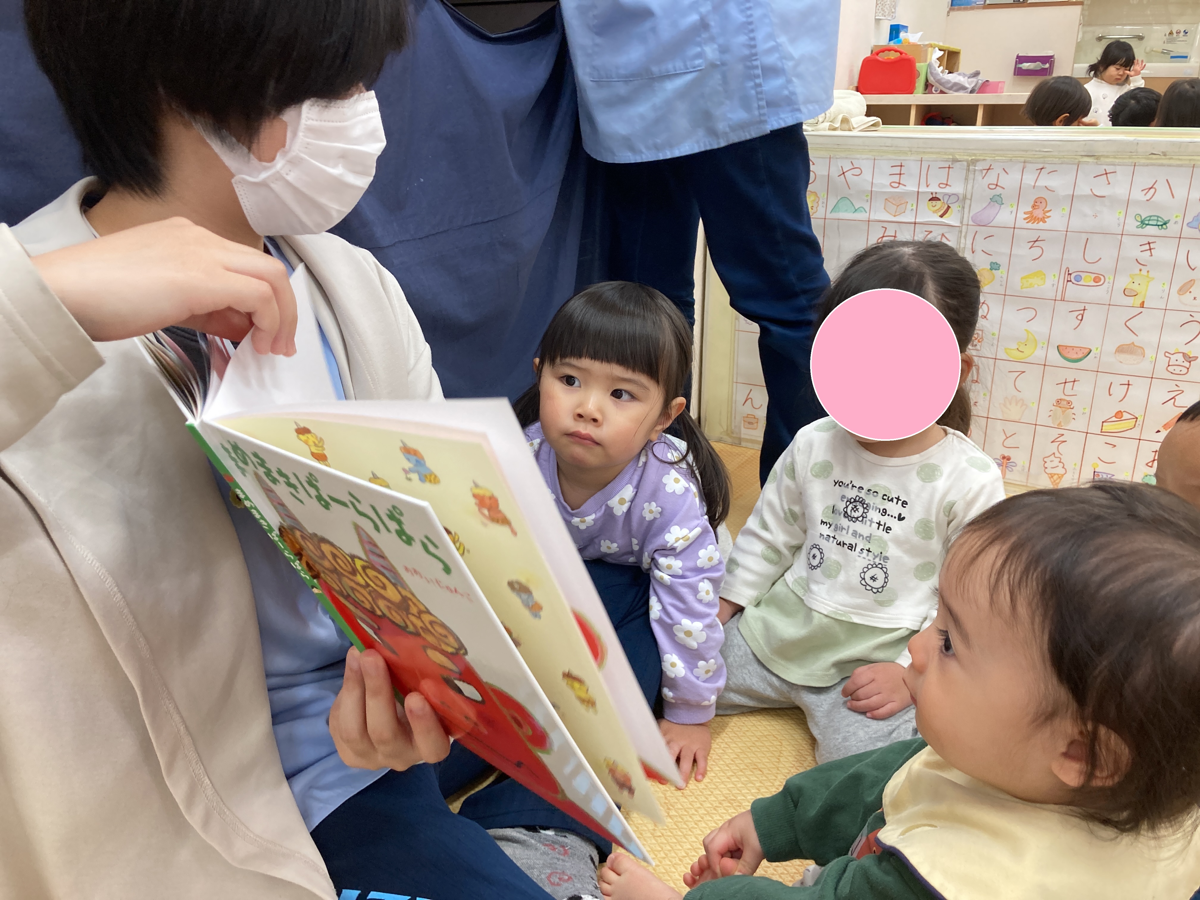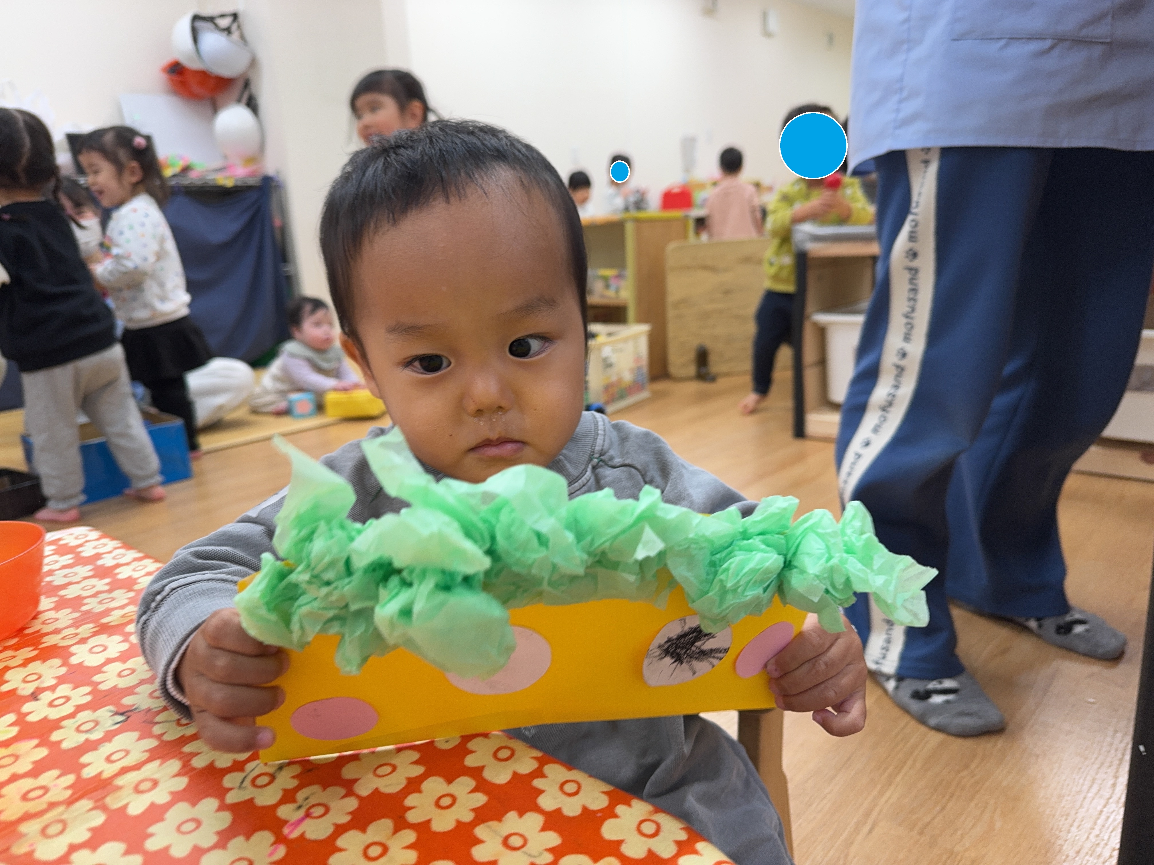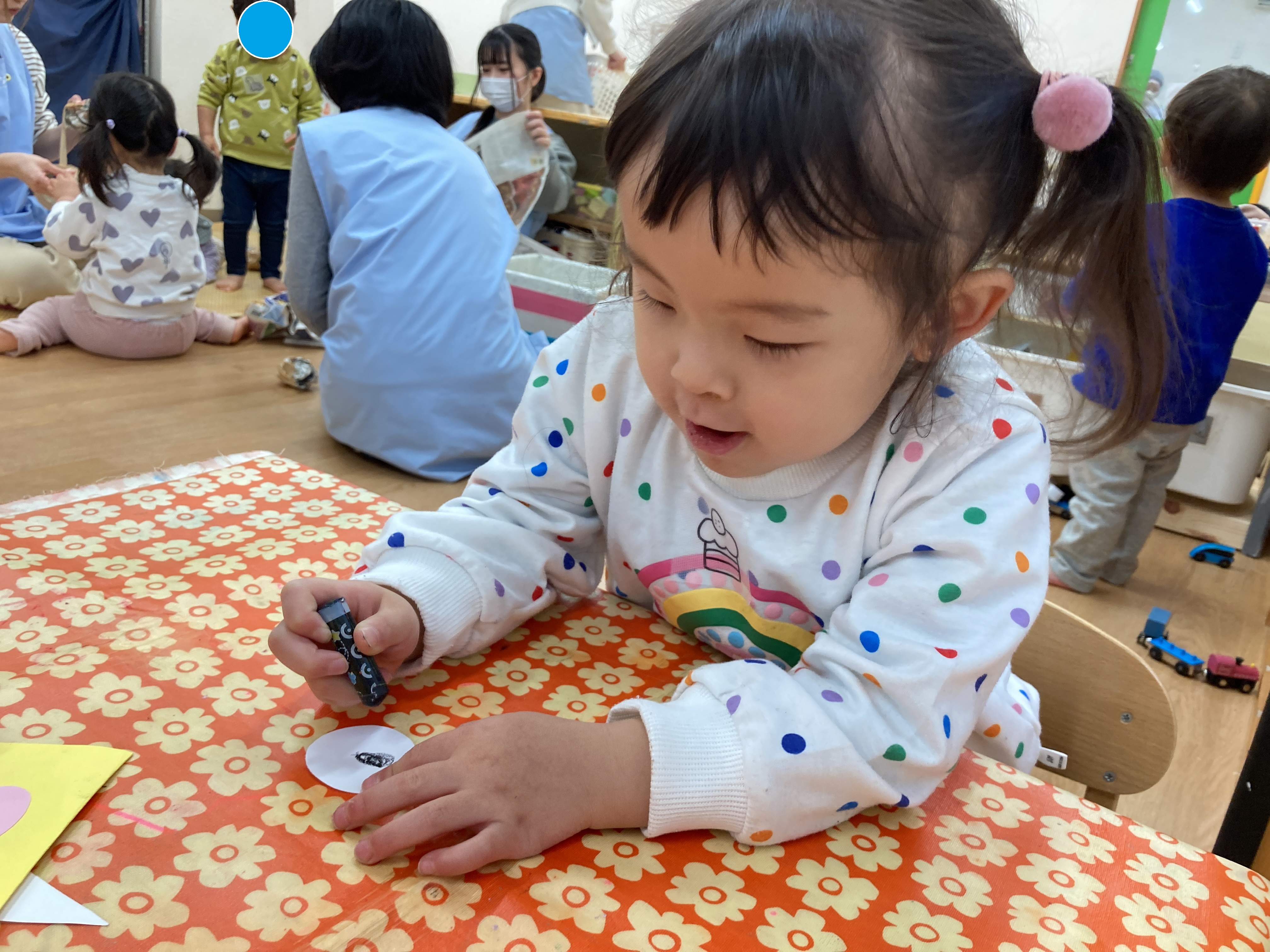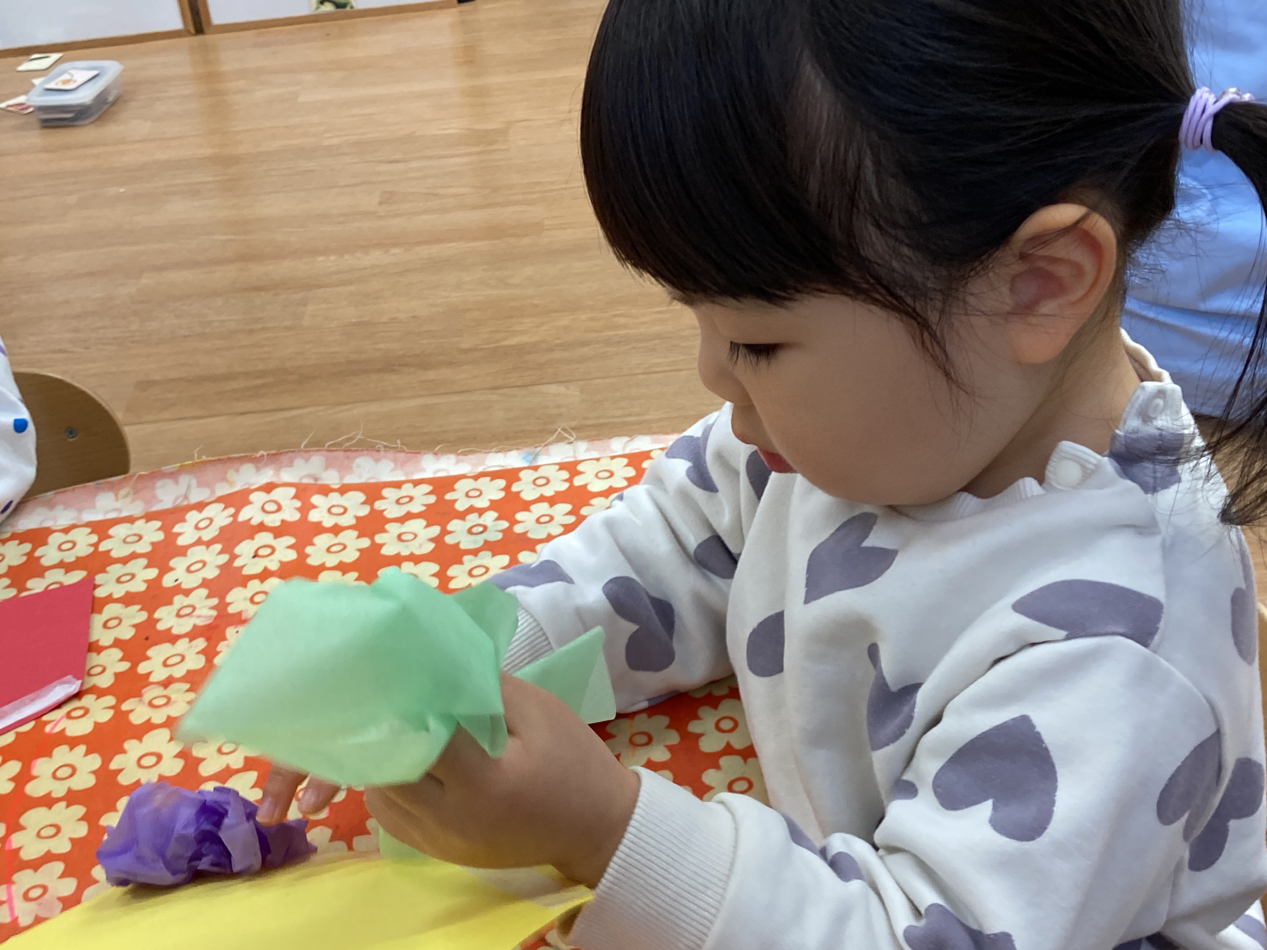 今月のたんぽぽ組(一歳児)さんは二月に行う節分会にむけた制作の様子をお届けします。