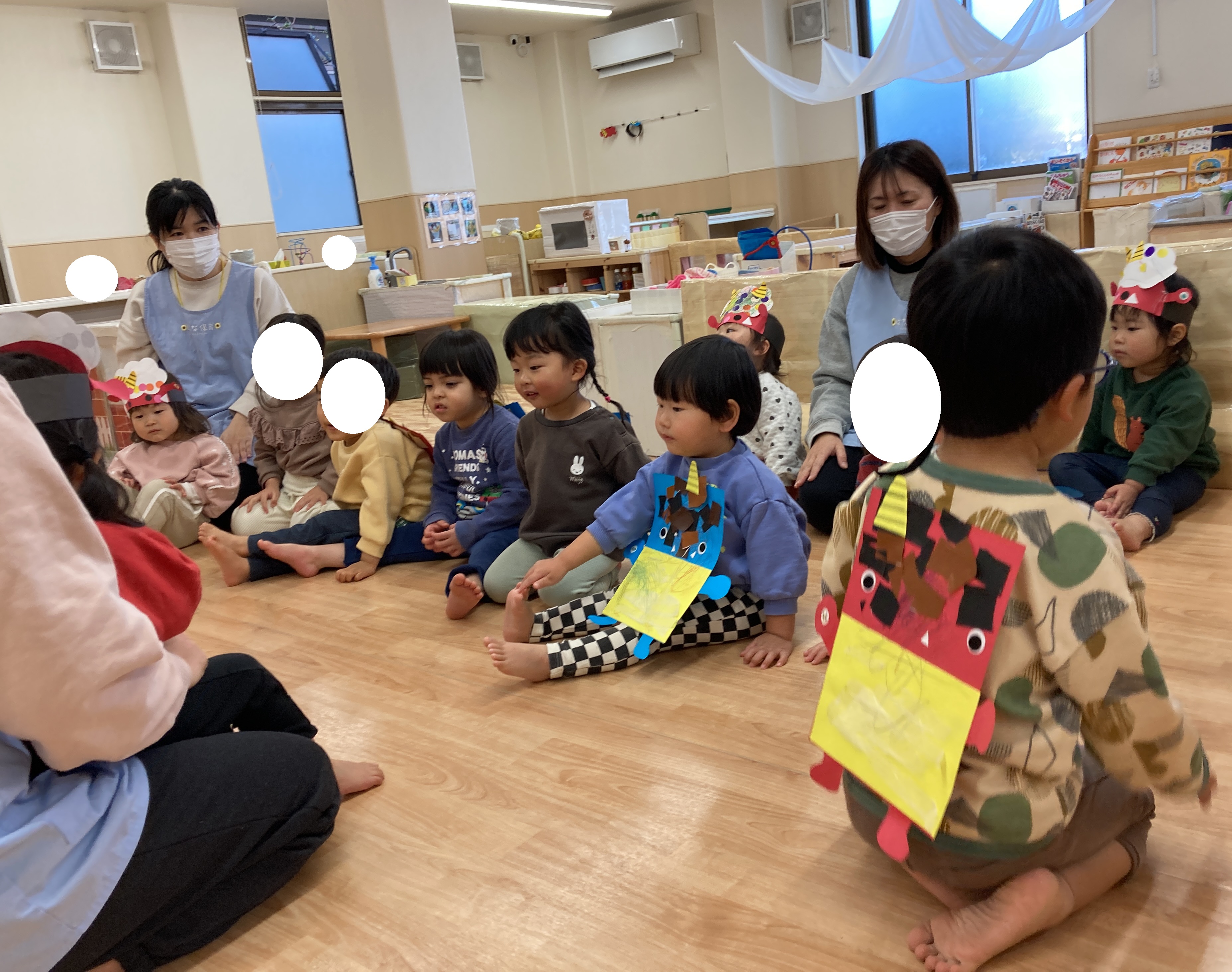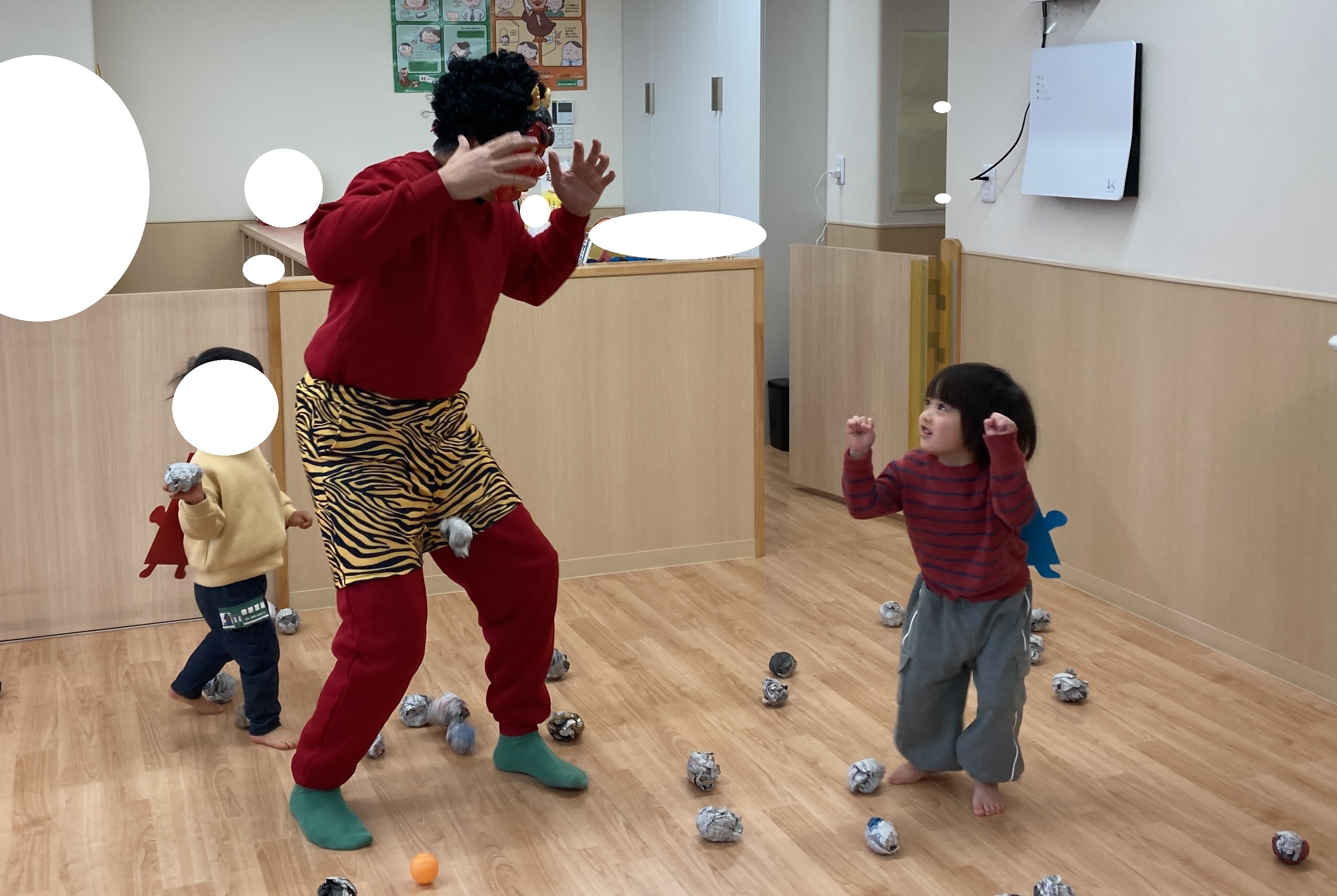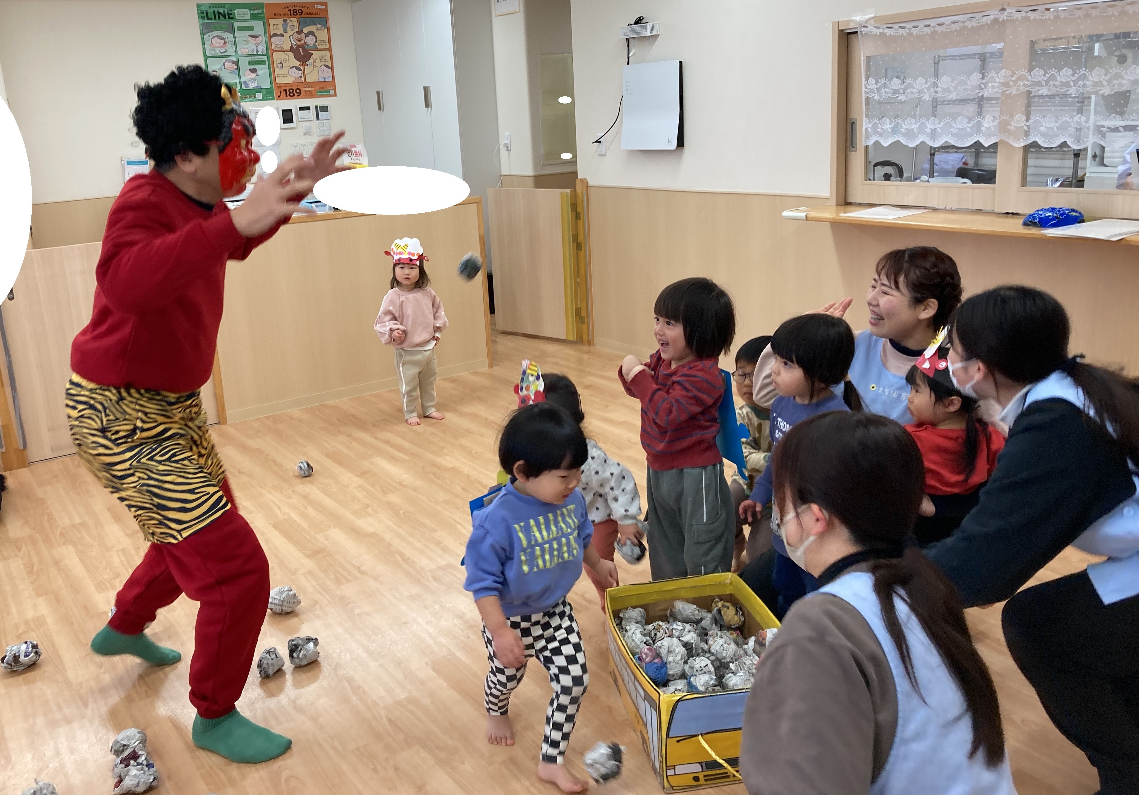 はな保育室かぎやでも「鬼のパンツ」を踊ったり、鬼やお面を作ったりしながら豆まき会の日を心待ちにしていました。