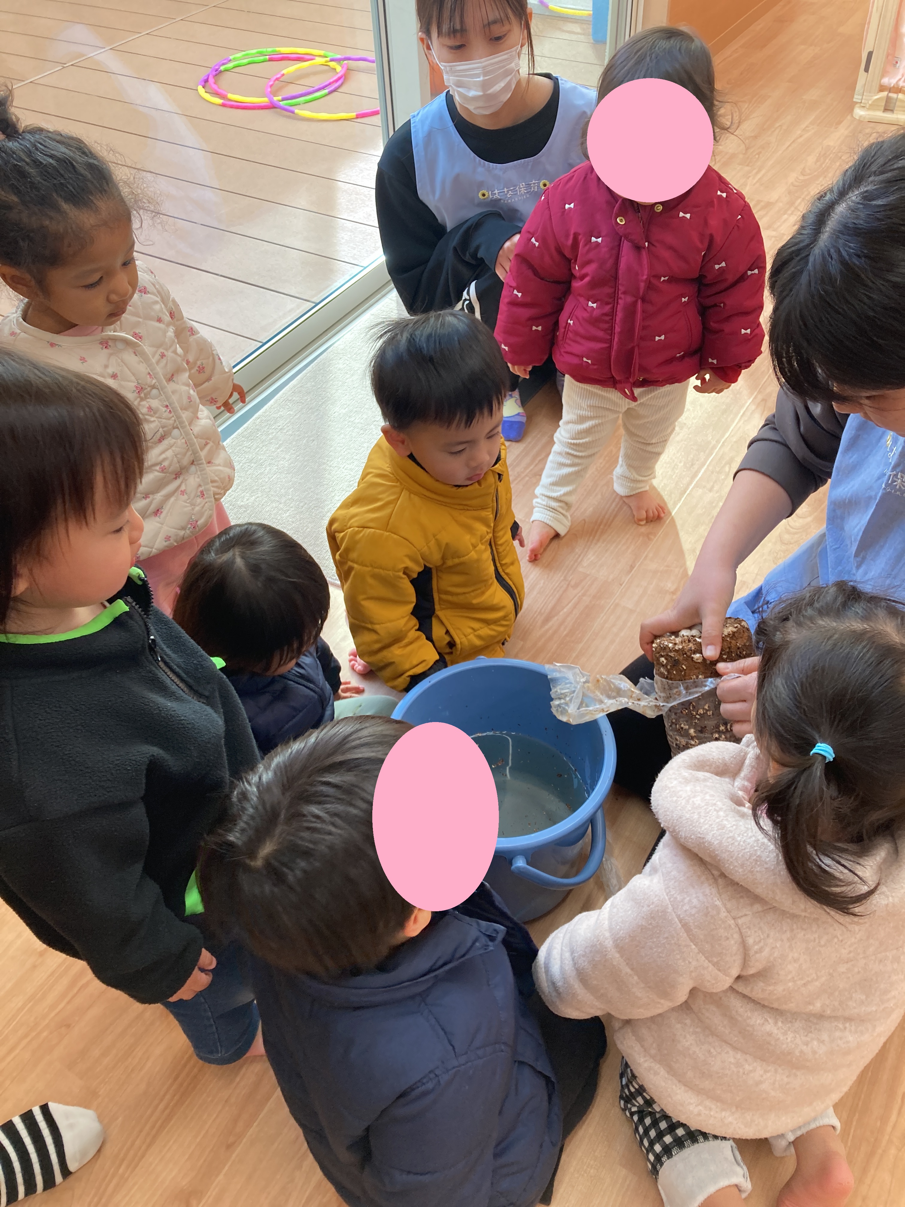 お散歩に行く前にしいたけキットの準備をしましたよ![]()