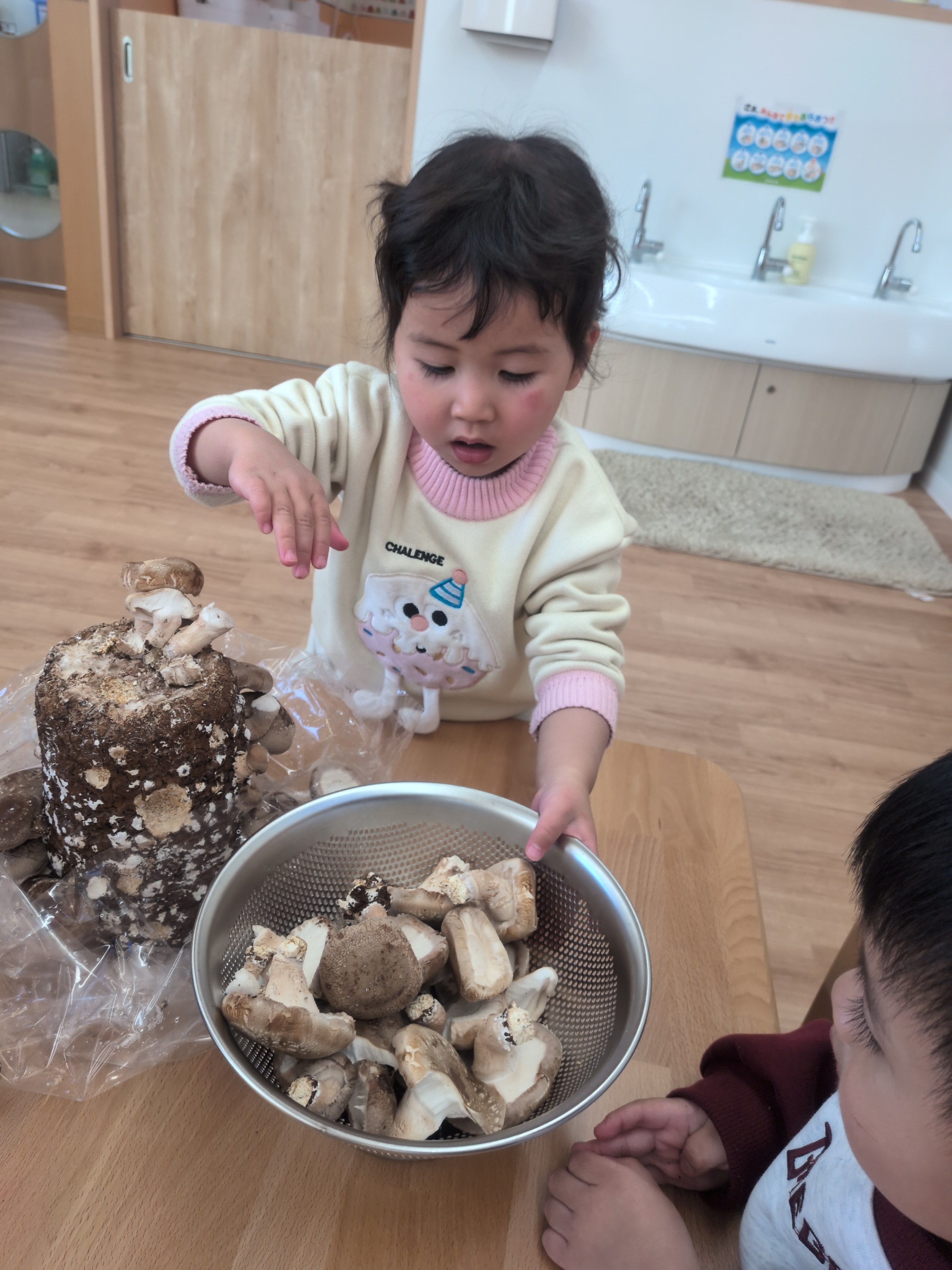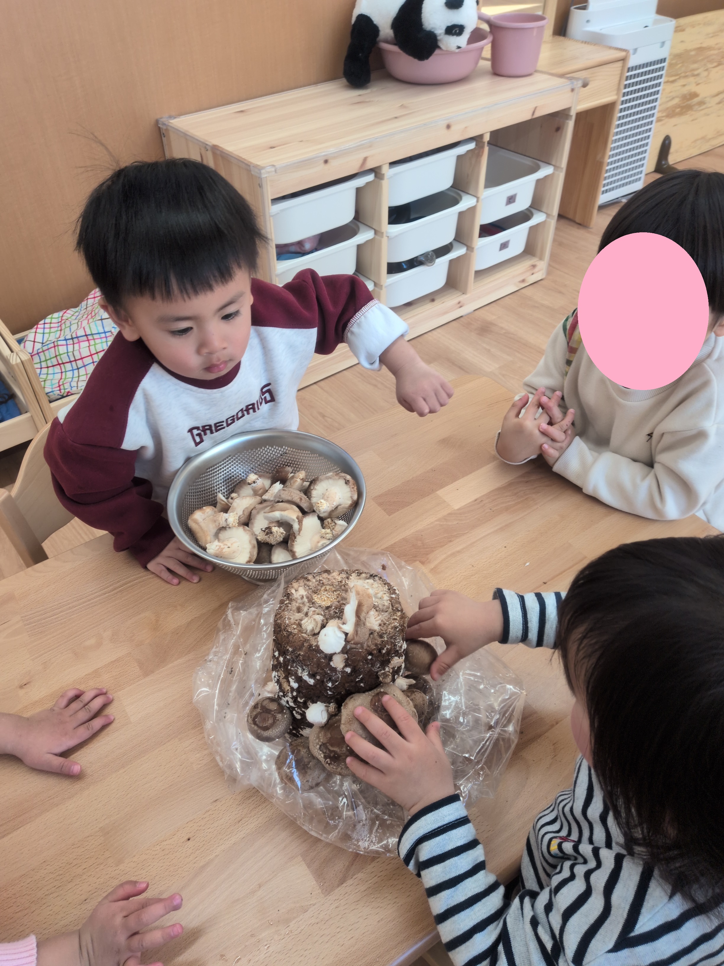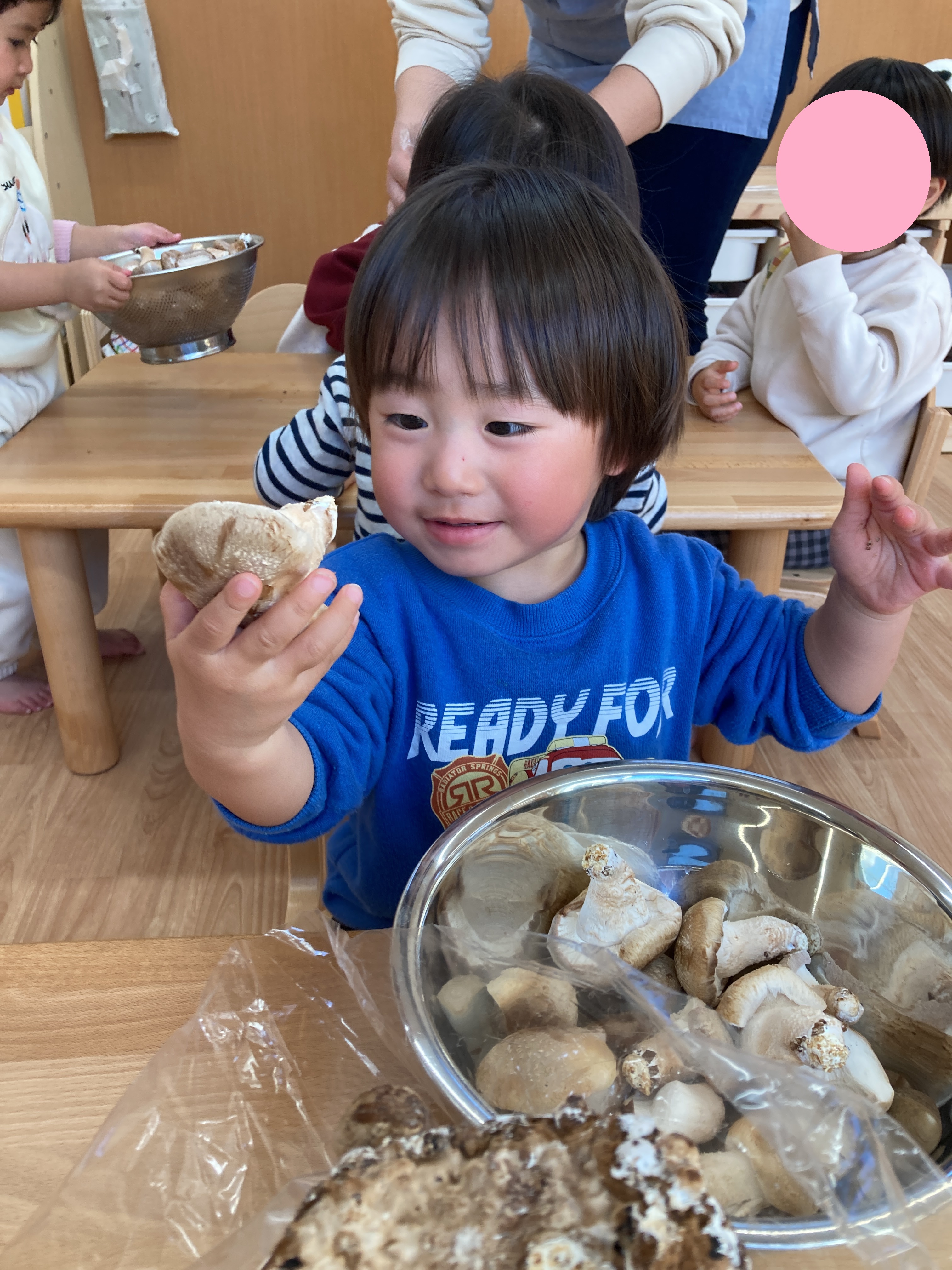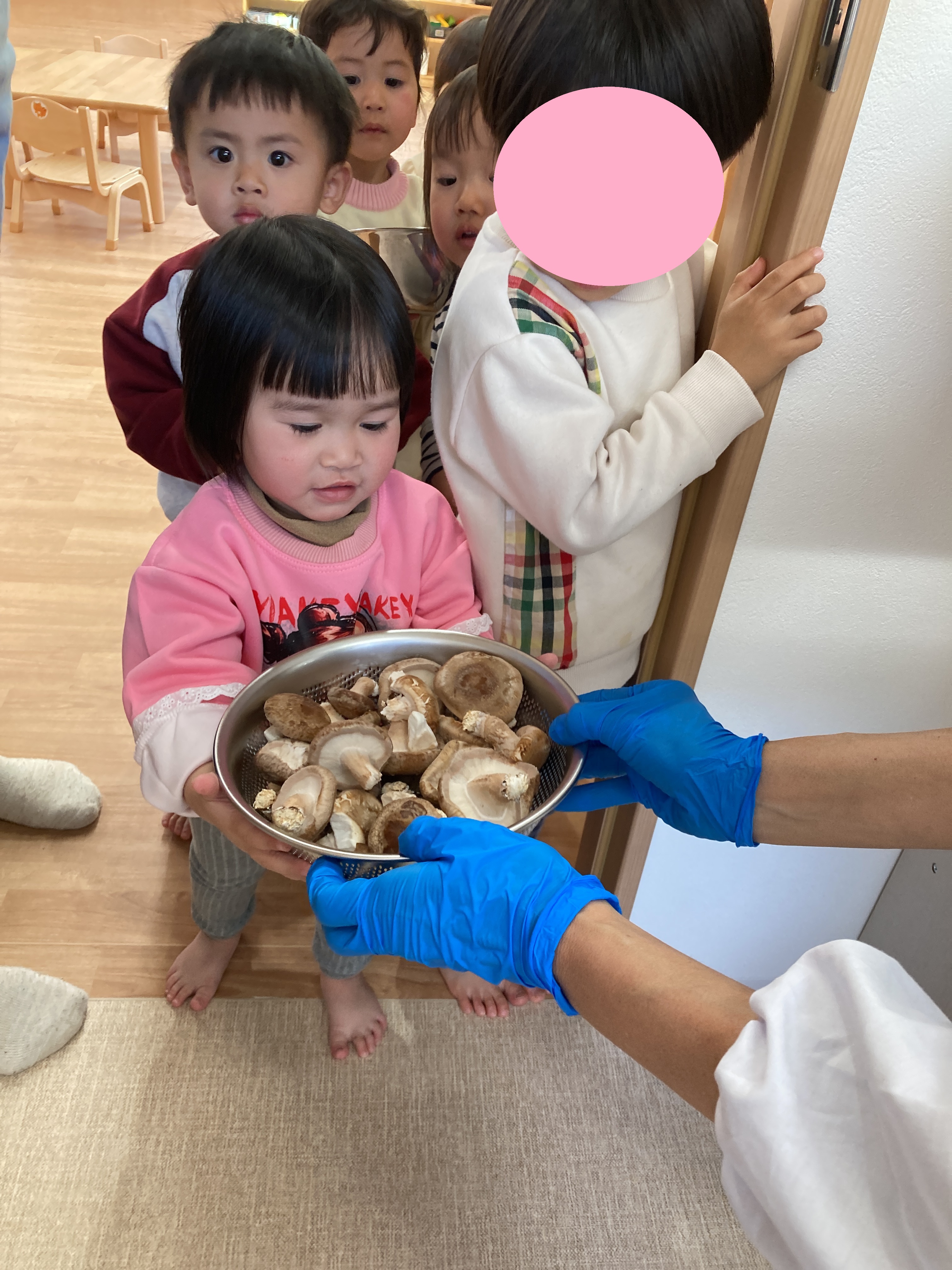 たくさんのしいたけを持って、お給食で作ってくださいと調理さんにお願いしましたよ![]()