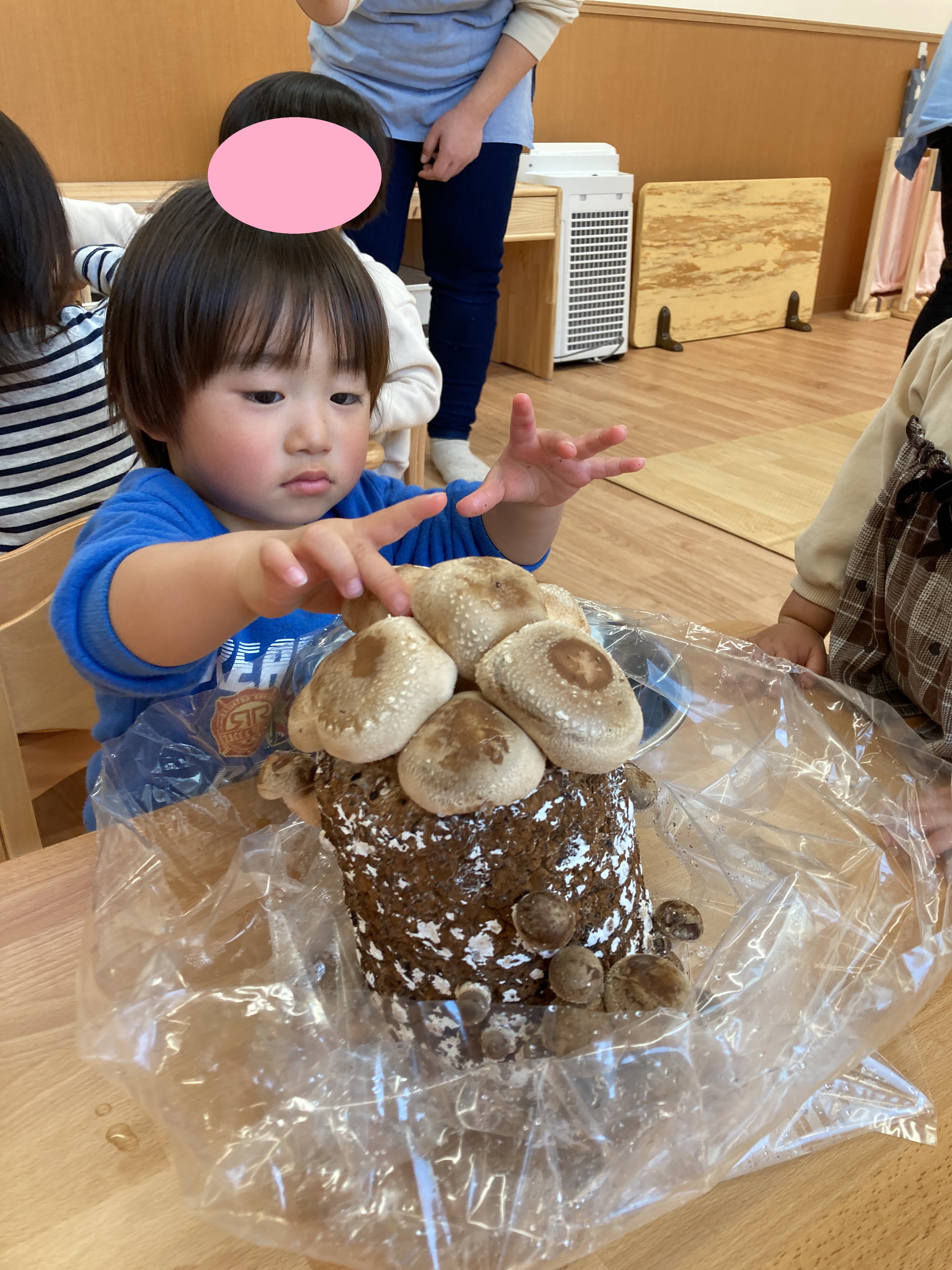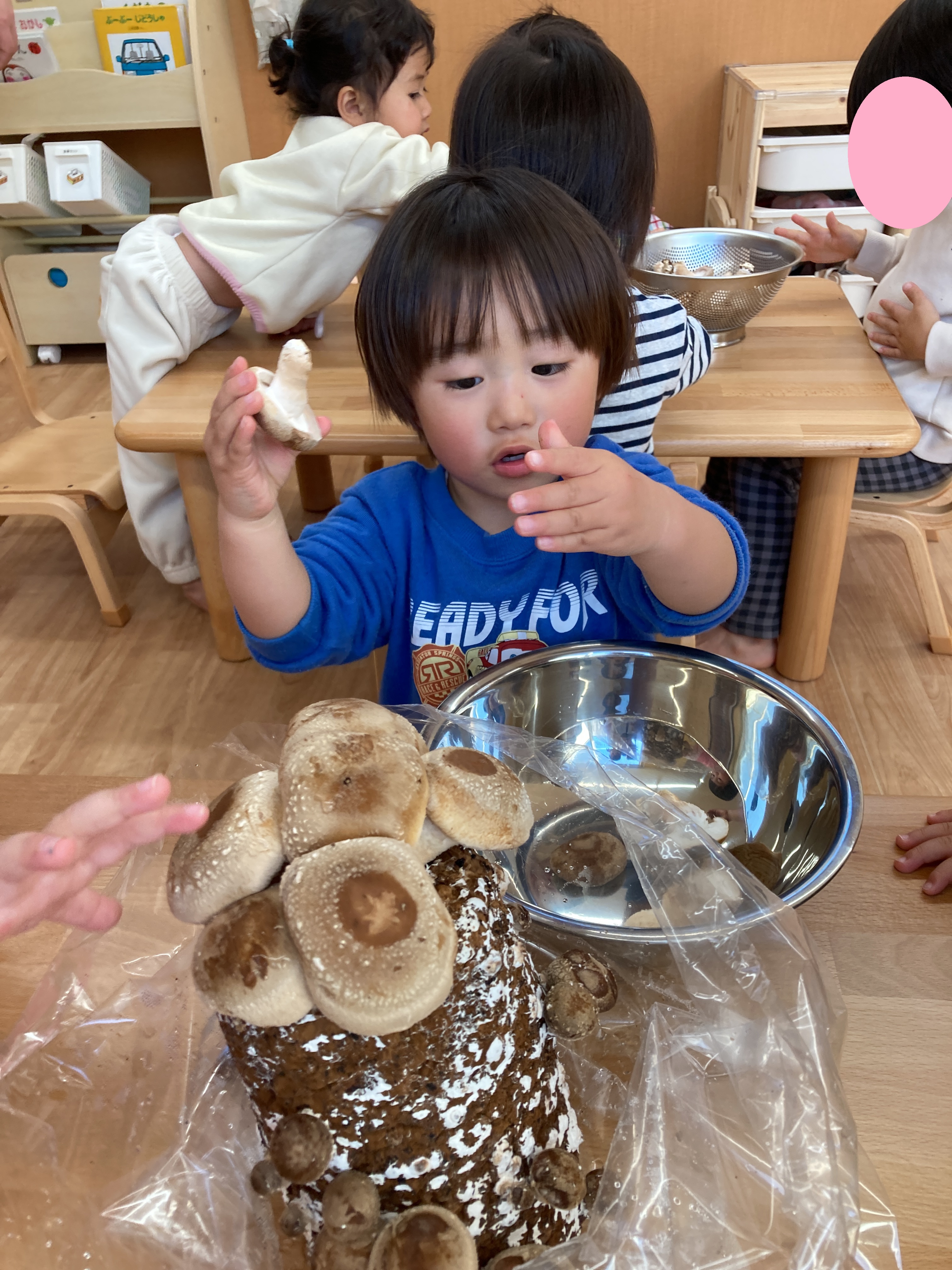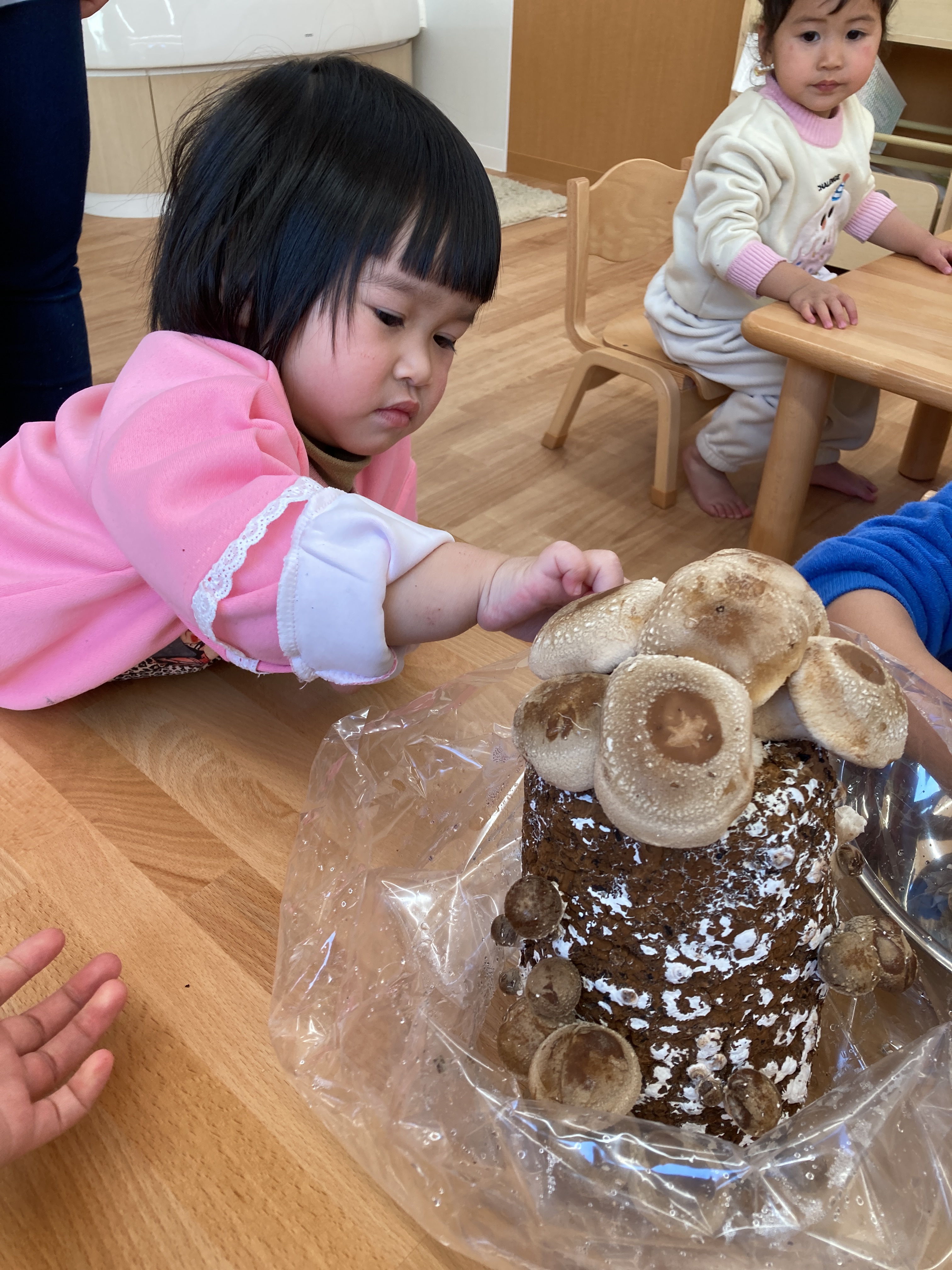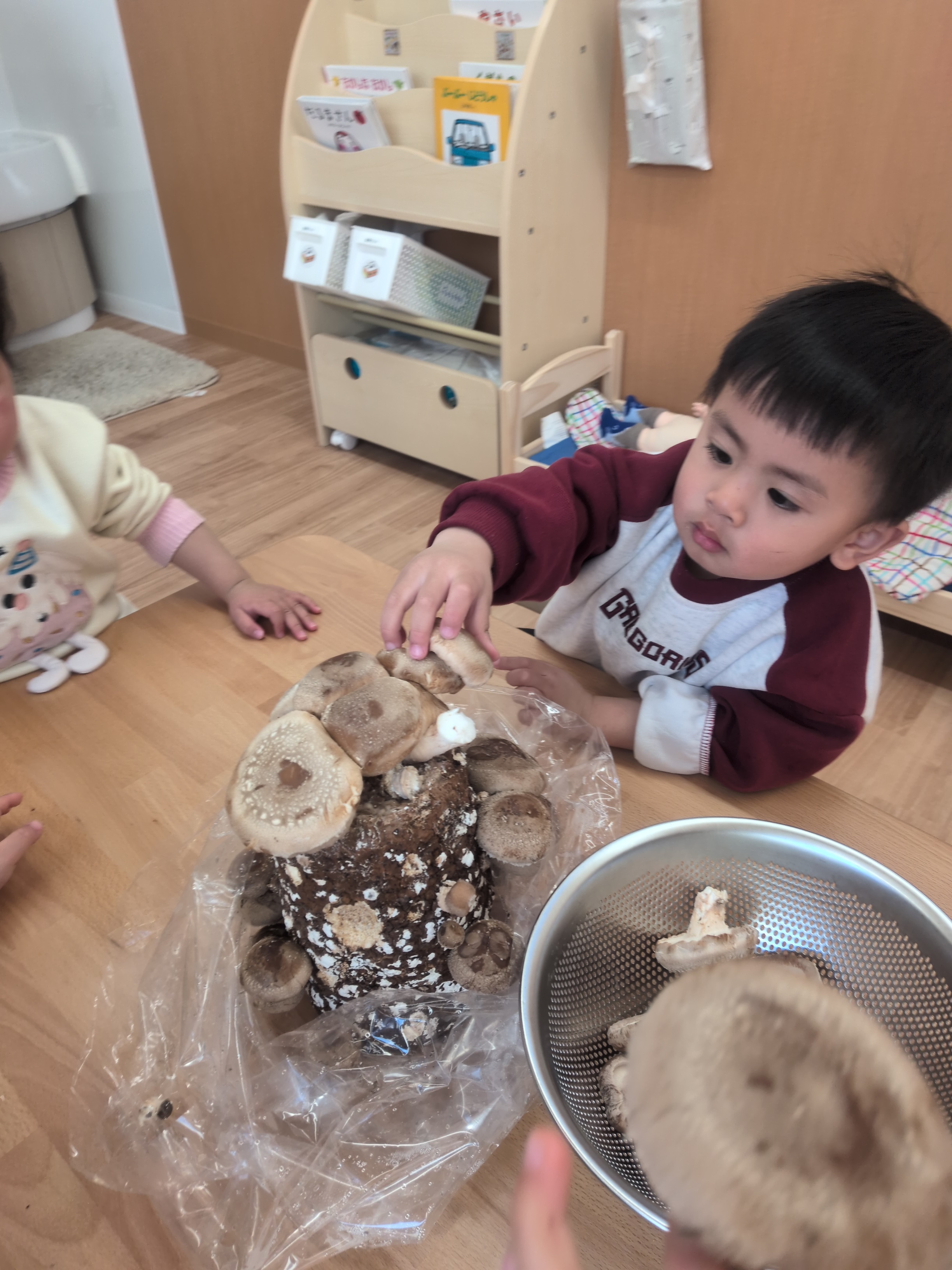 たくさんのしいたけを持って、お給食で作ってくださいと調理さんにお願いしましたよ![]()