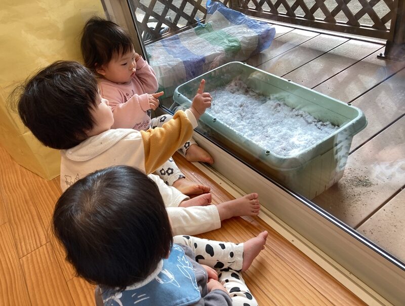 嬉しそうに触ってみる子や、初めての雪に不安そうな表情をする子もいました![]()