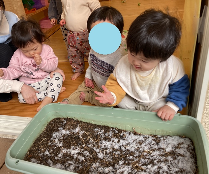 せっかくなので、プランターに積もった雪にみんなで触れてみることにしました![]()