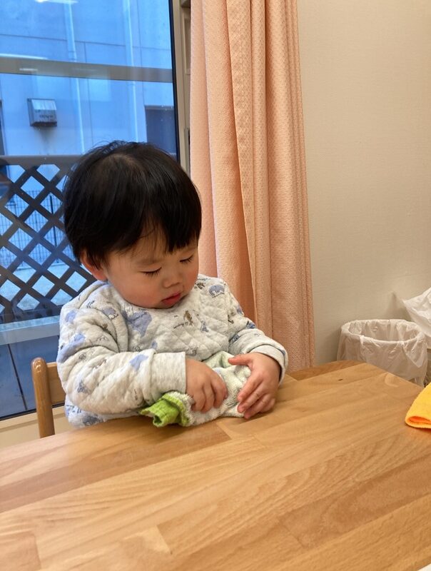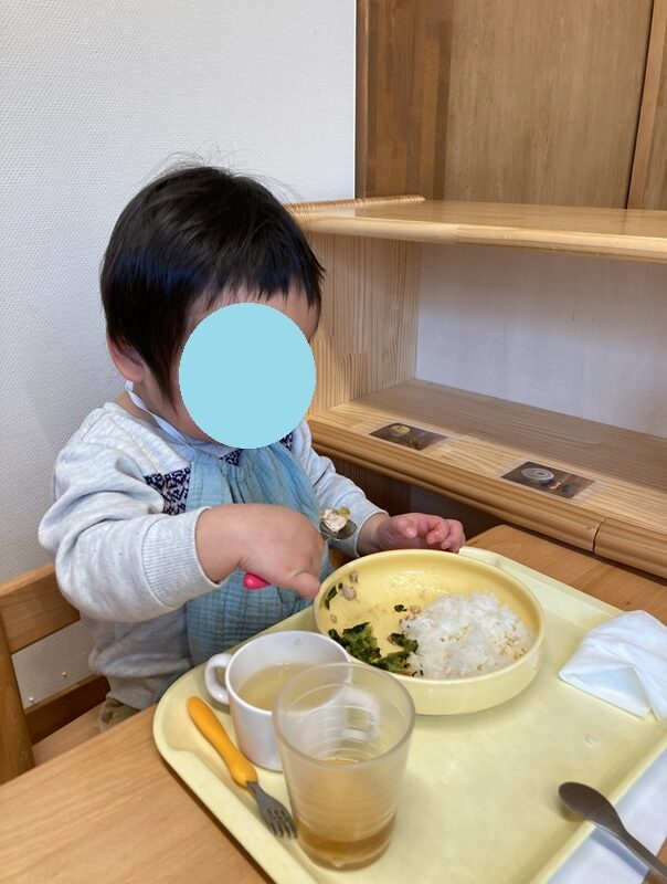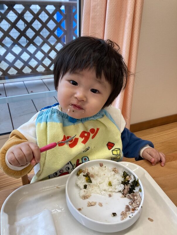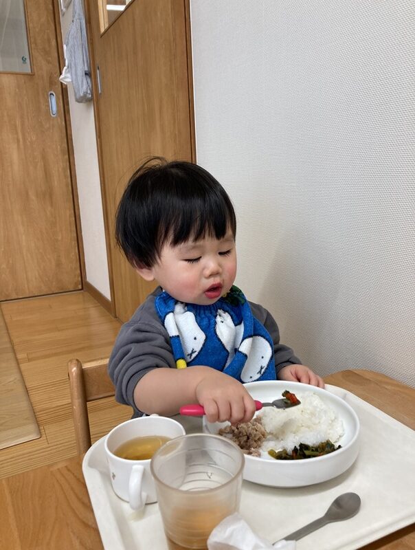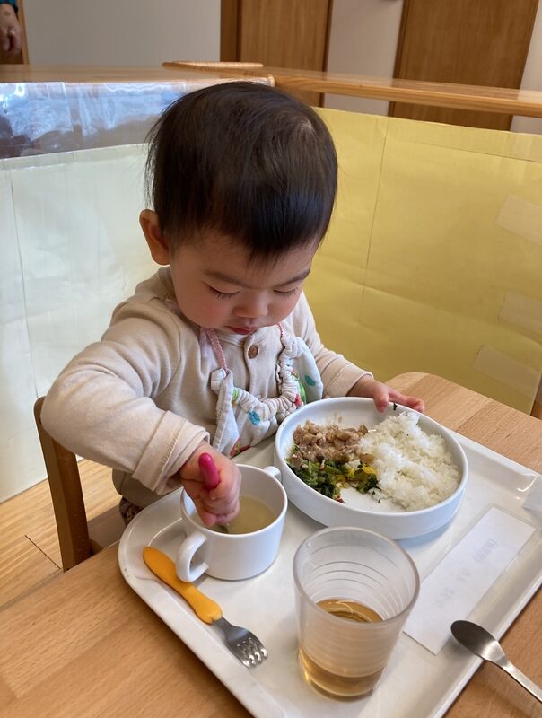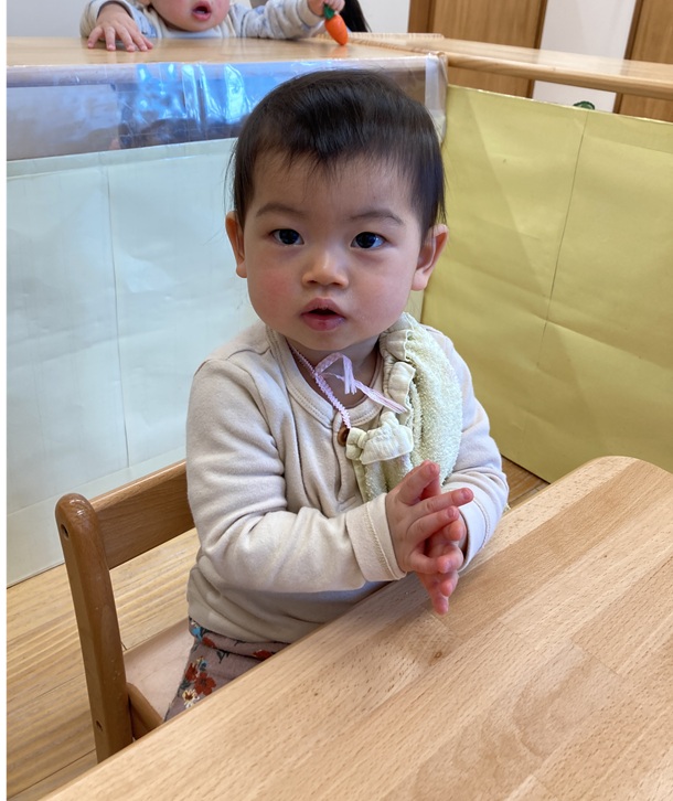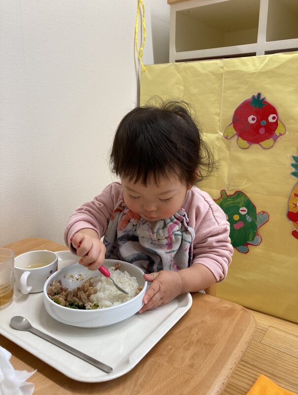 お皿に手を添えて食べることもできるようになり、食事のマナーが少しずつ身についてきています![]()