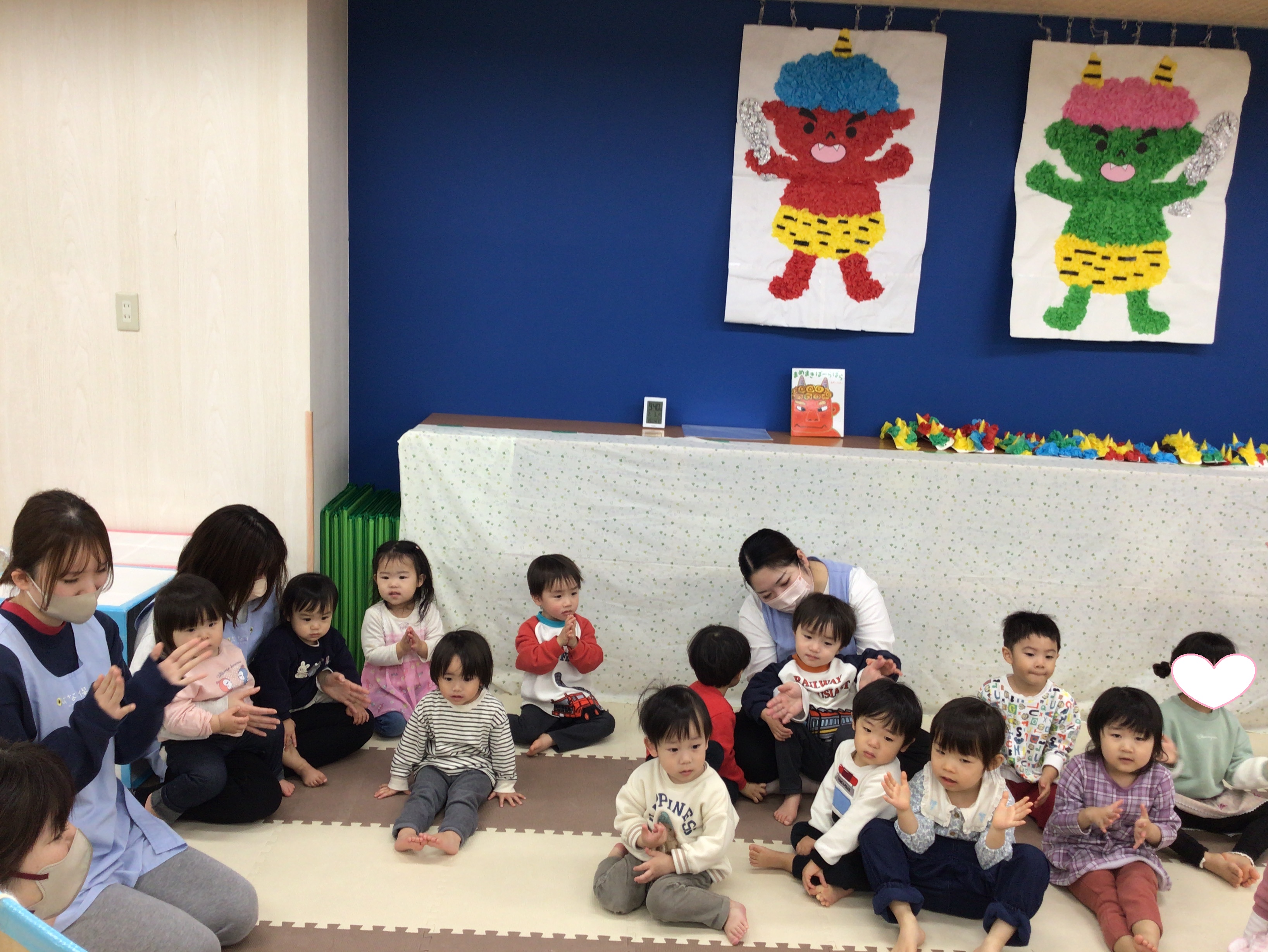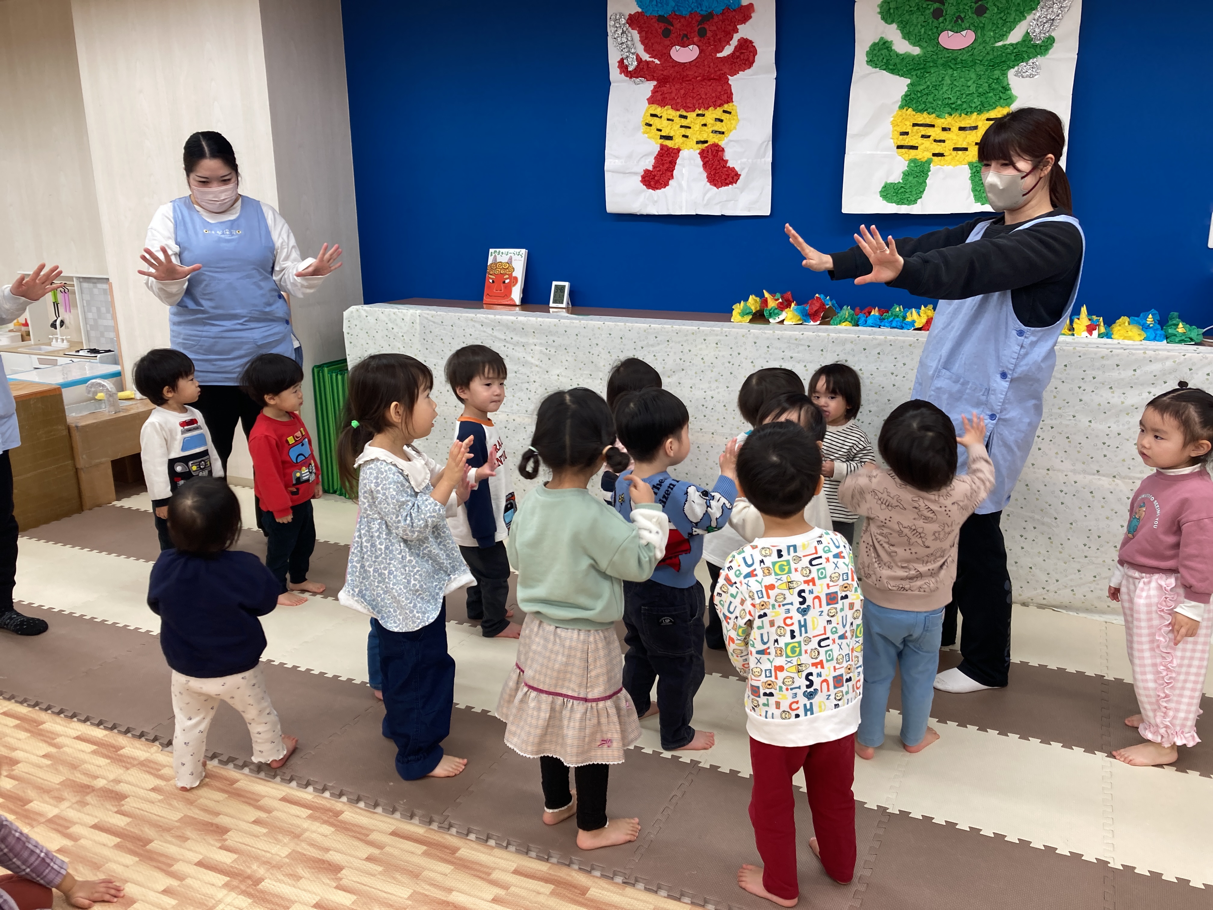 絵本を読んで節分について知った後は、「おにのパンツ」を踊りましたよ![]()