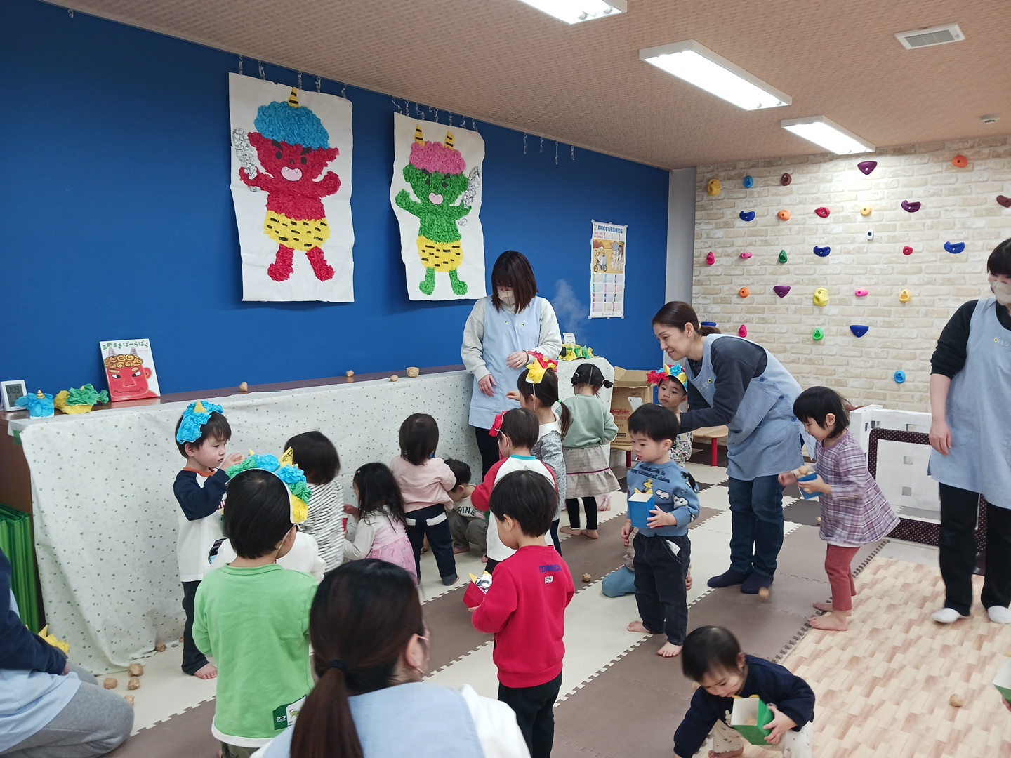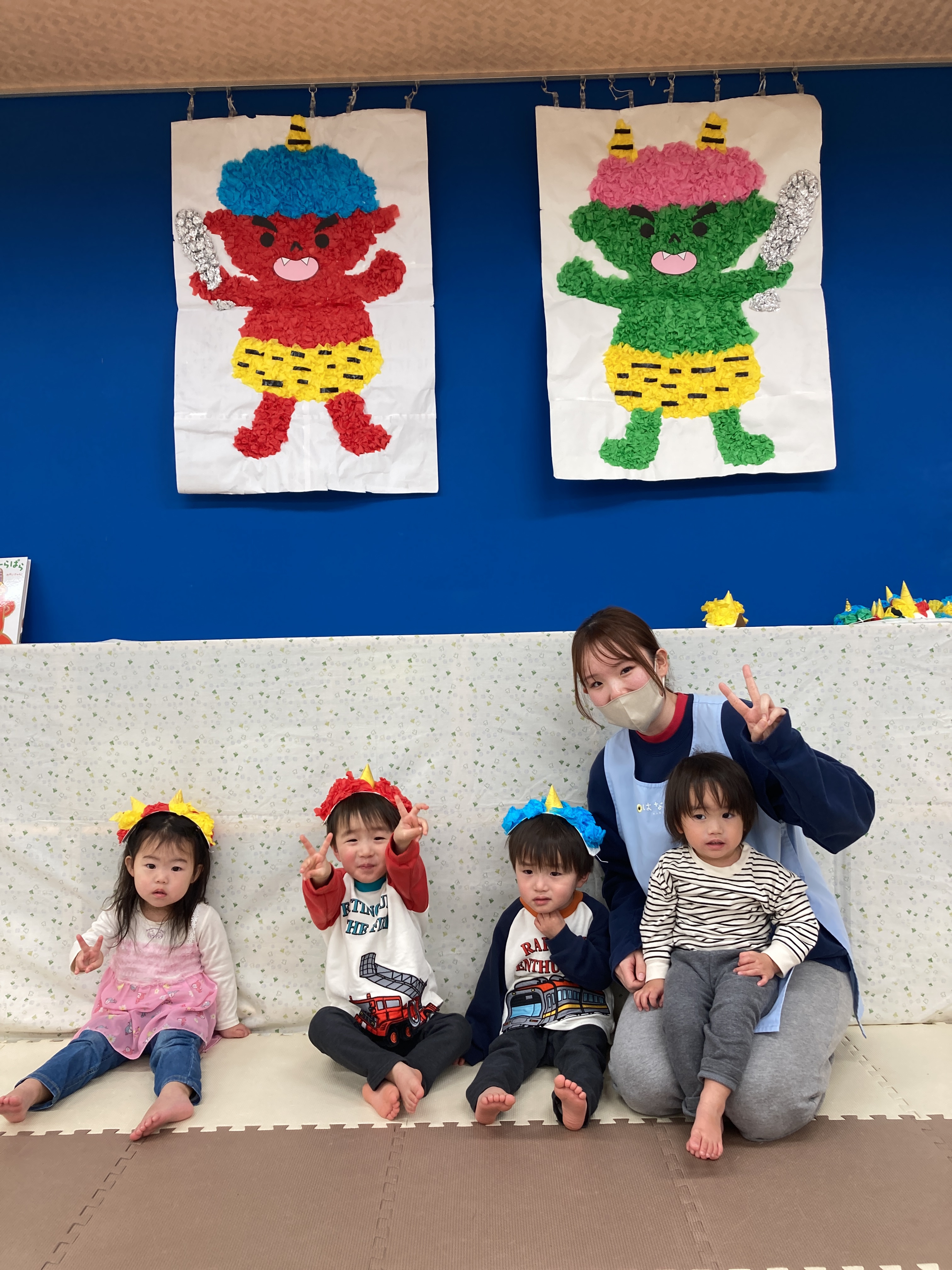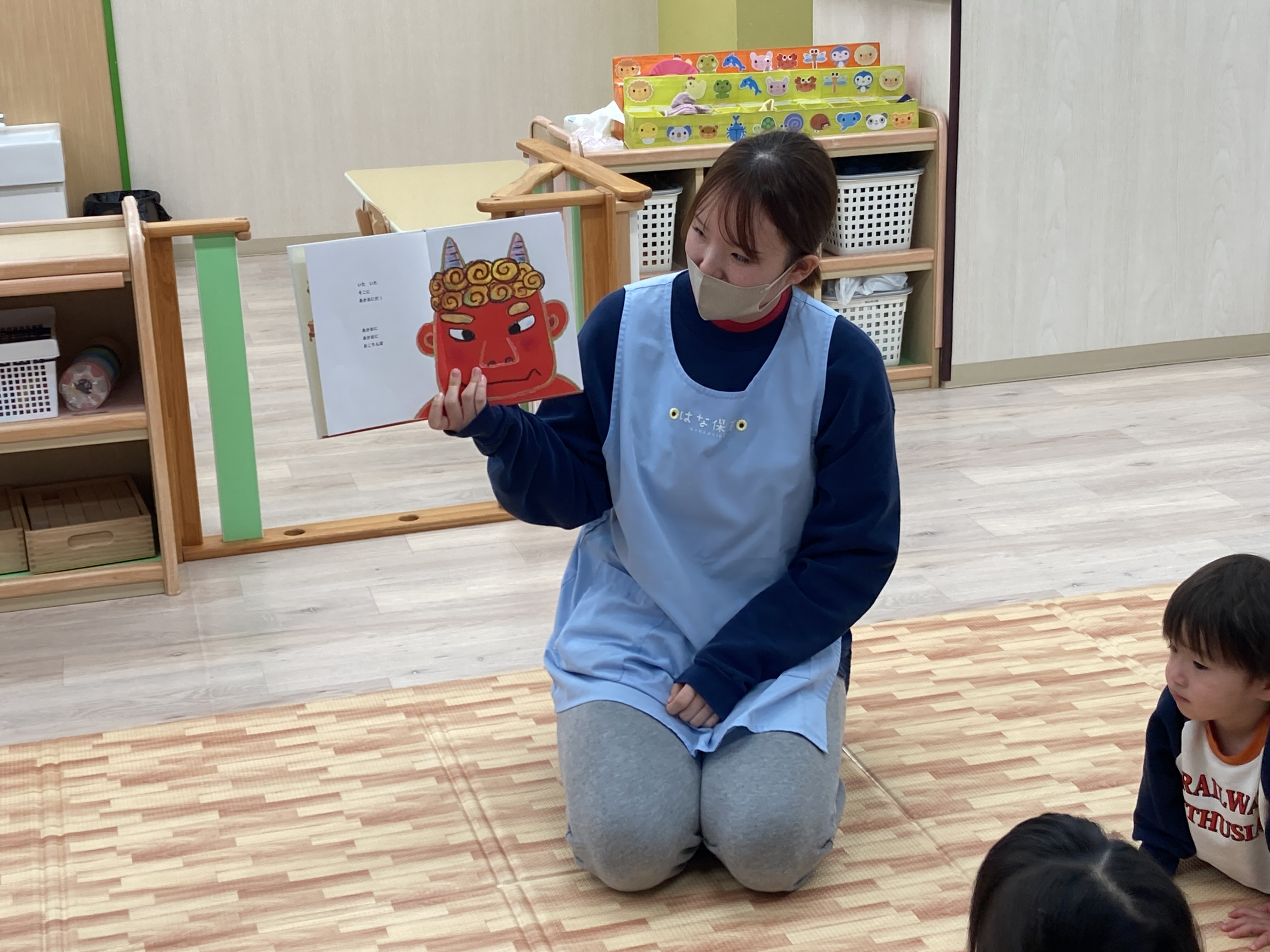 まず初めに節分の絵本を読んで節分とはどんな日かを見て、節分の日に何をするのかも聞きました!