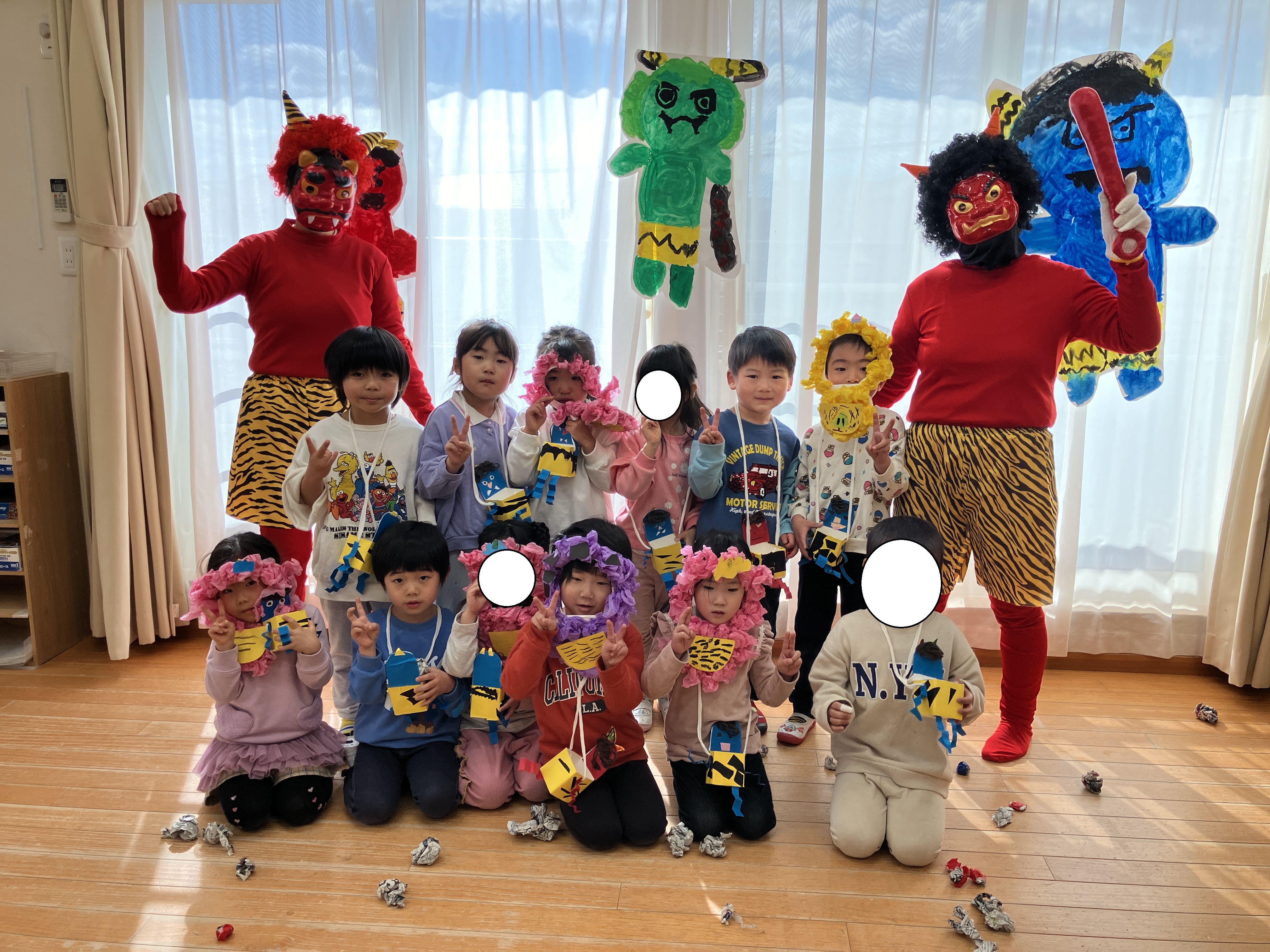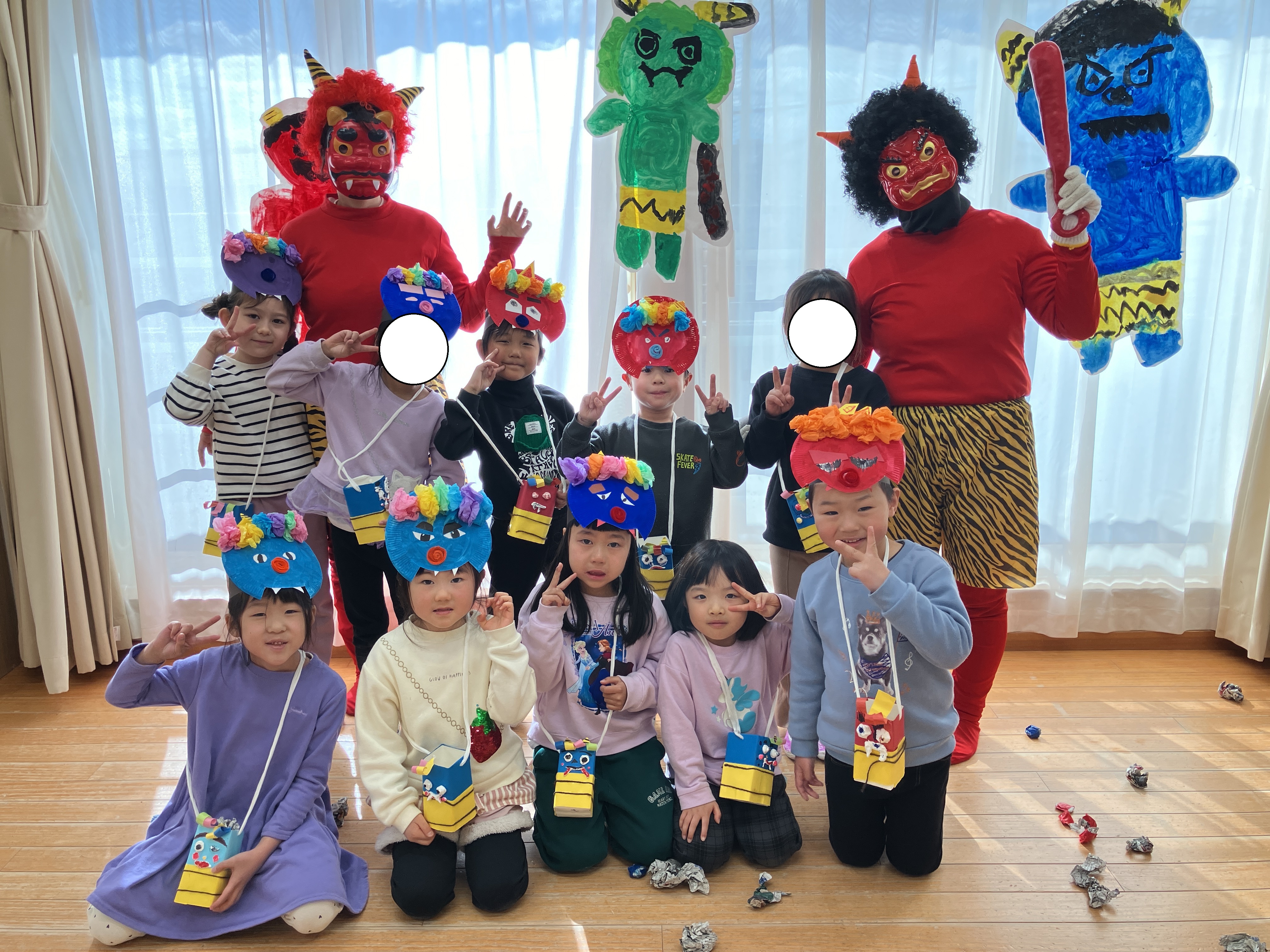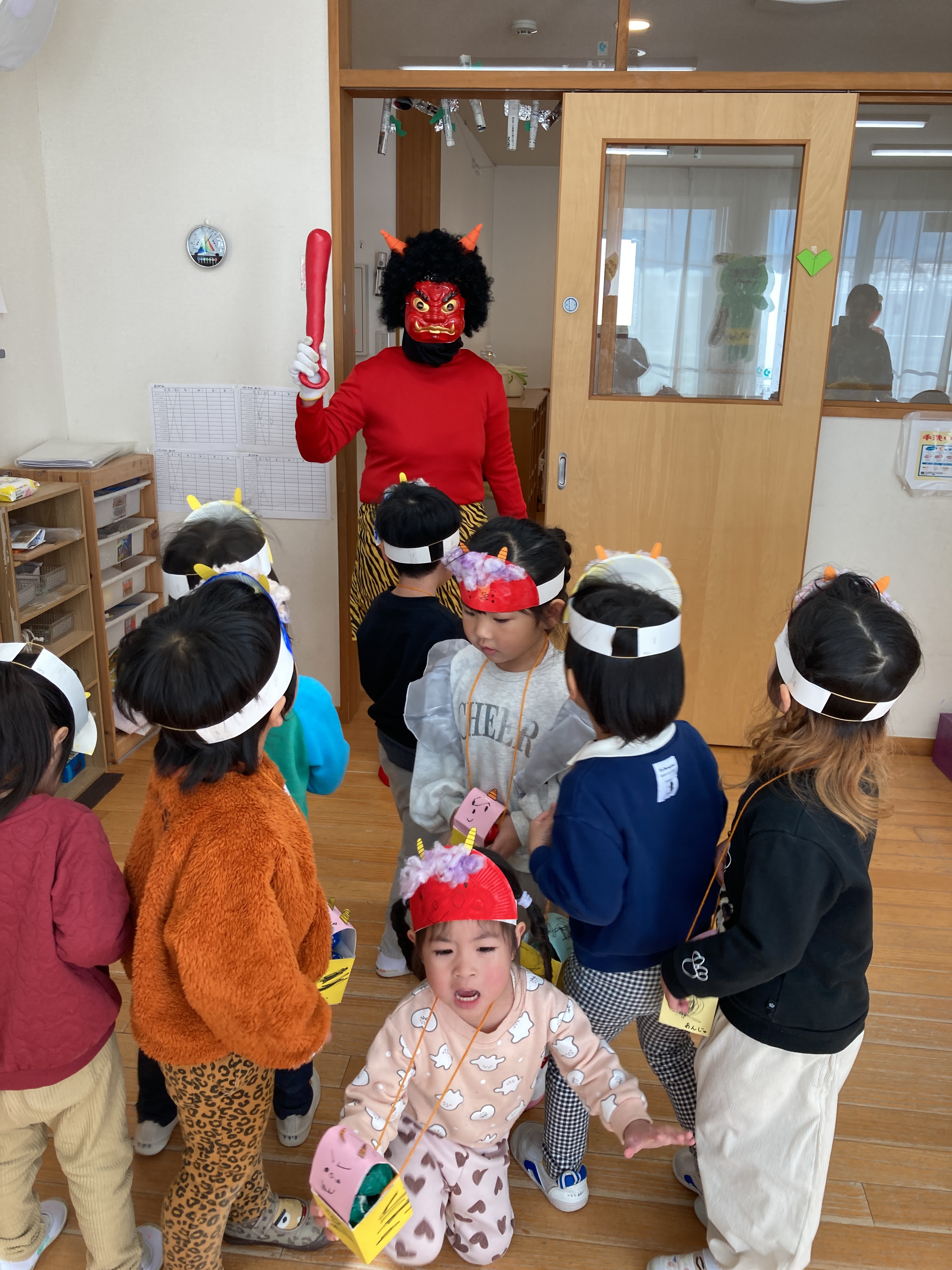 「鬼さんがきたらなんていうか知ってる?」と聞くと大きな声で「おにはそと!ふくはうち!」と教えてくれました![]()