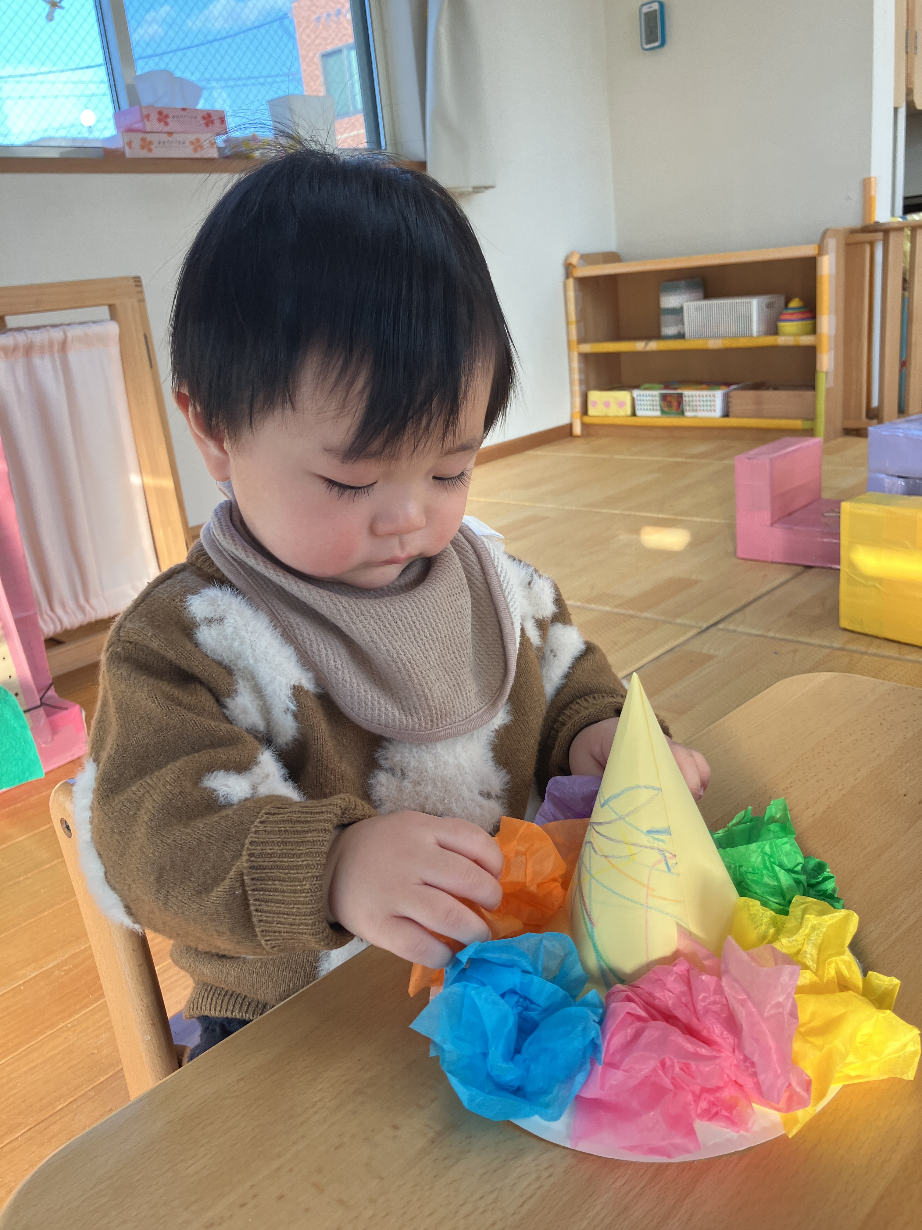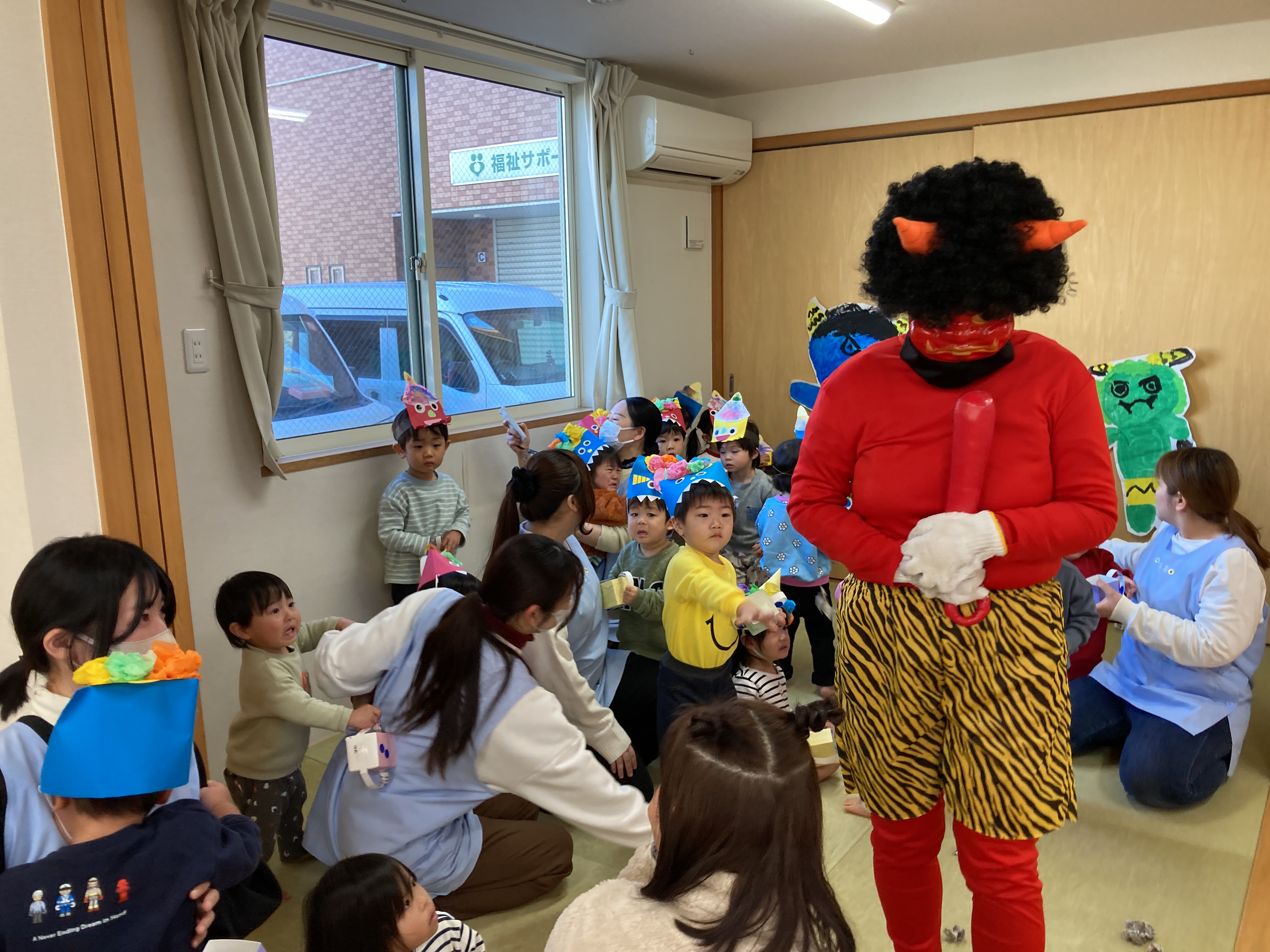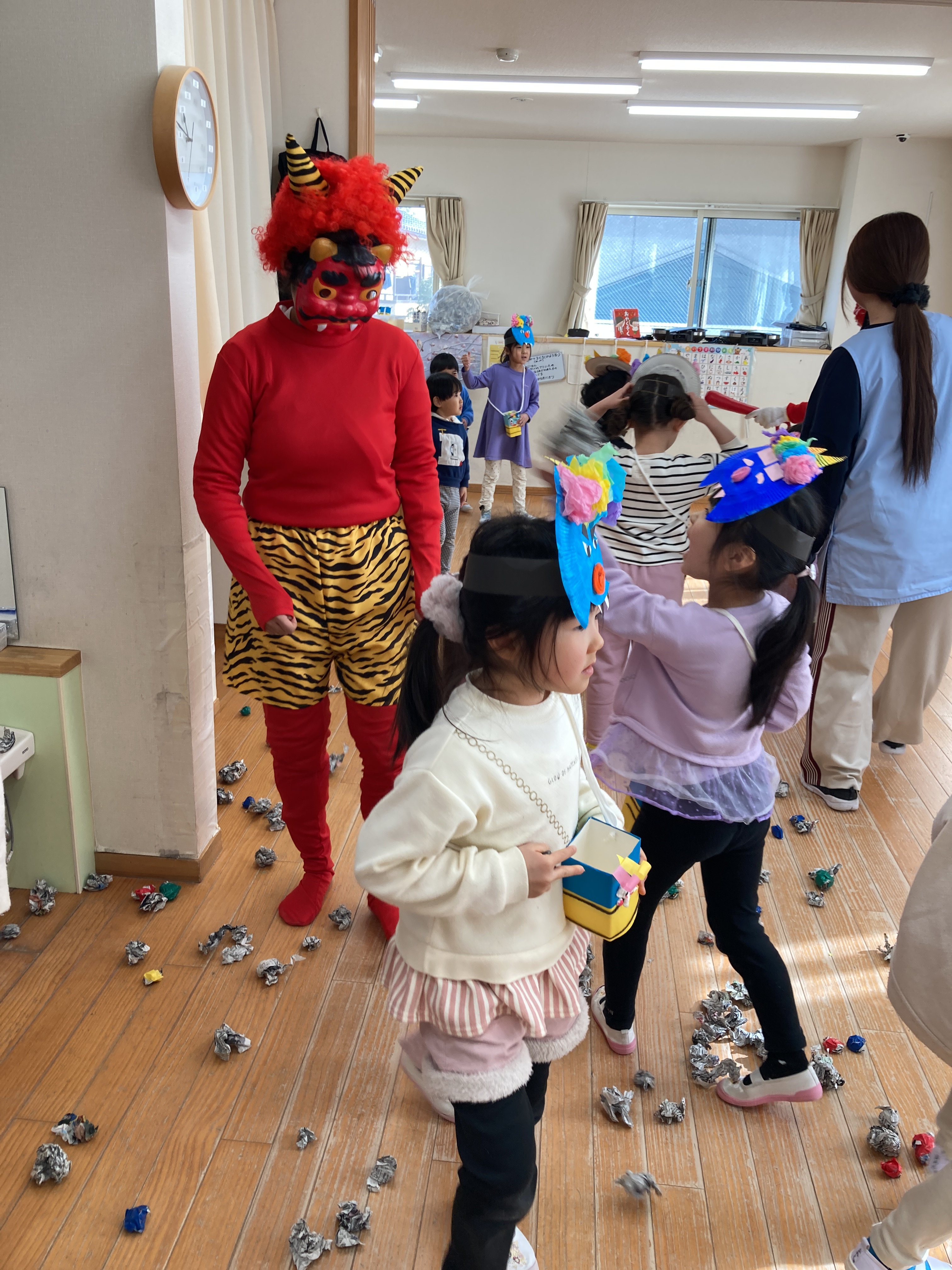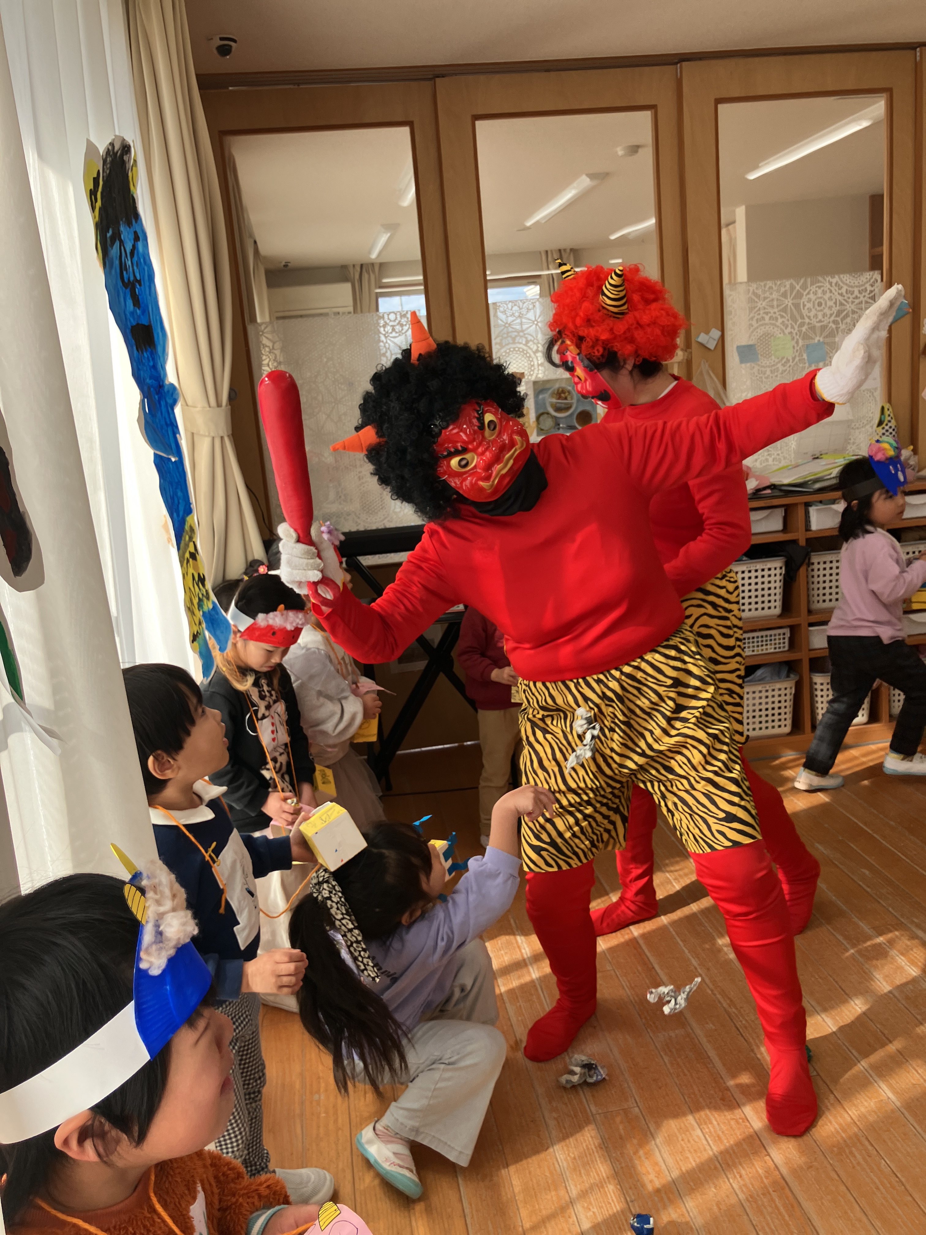 「鬼さんがきたらなんていうか知ってる?」と聞くと大きな声で「おにはそと!ふくはうち!」と教えてくれました![]()