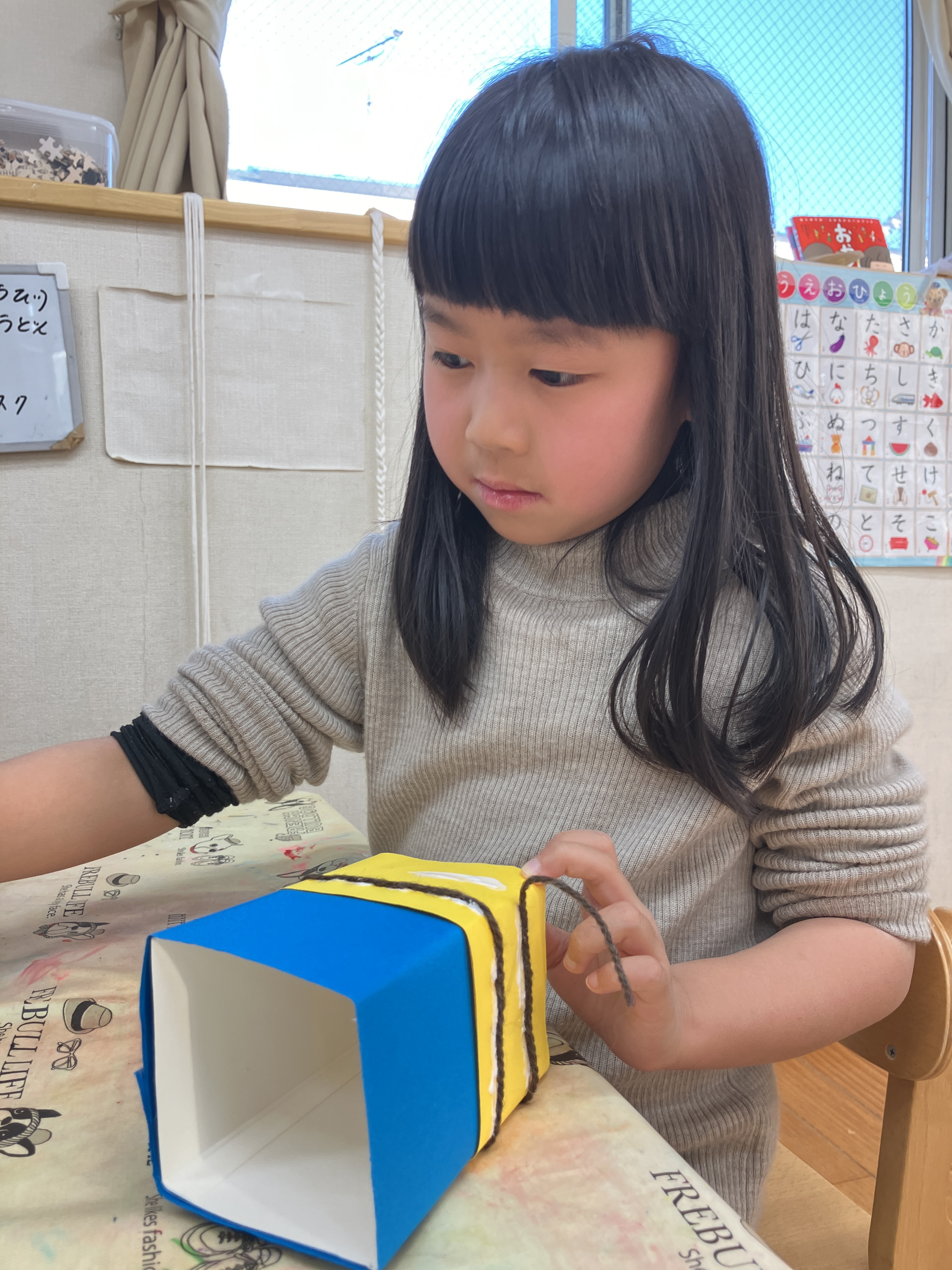 節分に向けて子どもたちが升と鬼のお面と豆を作りました!