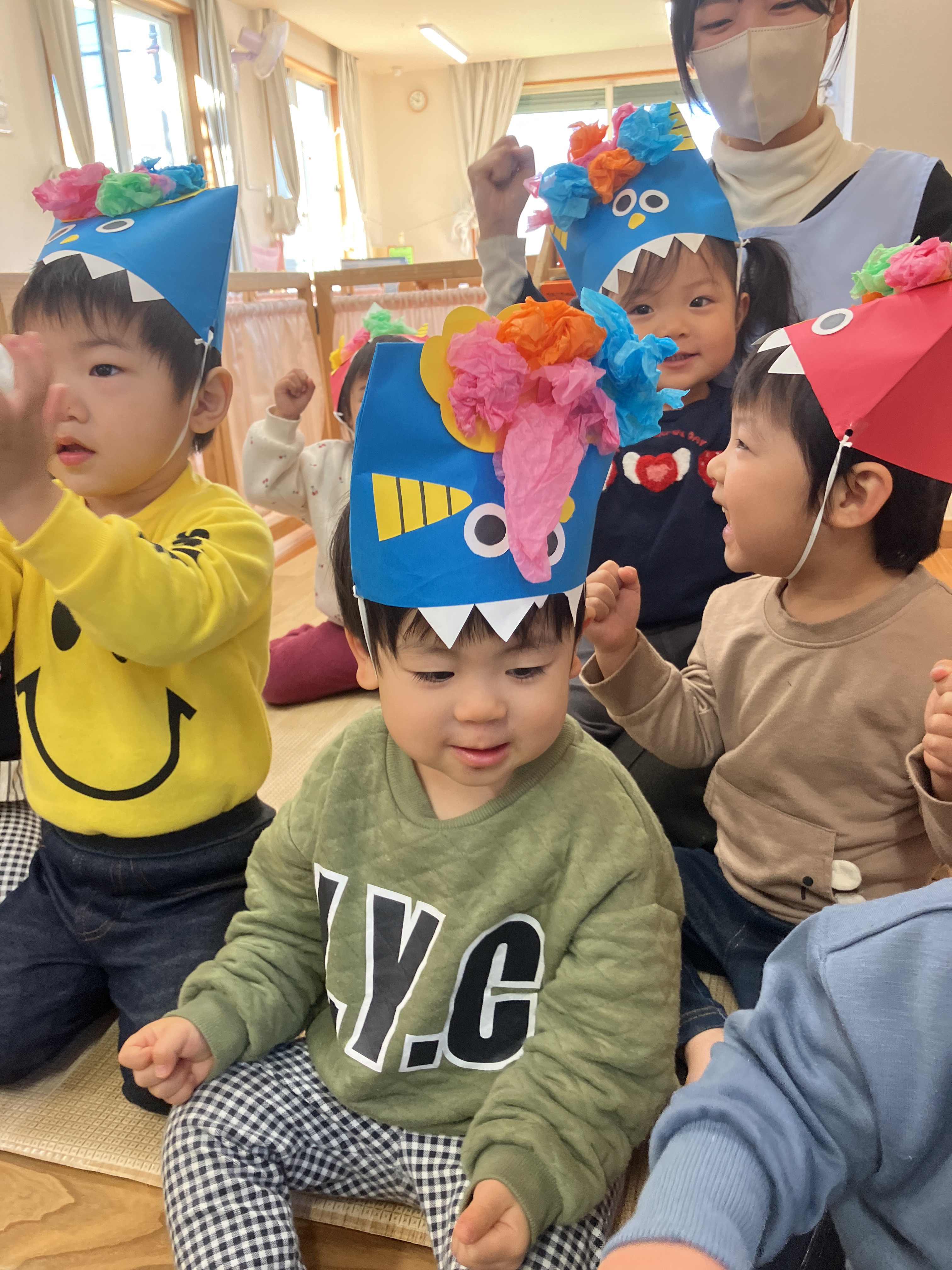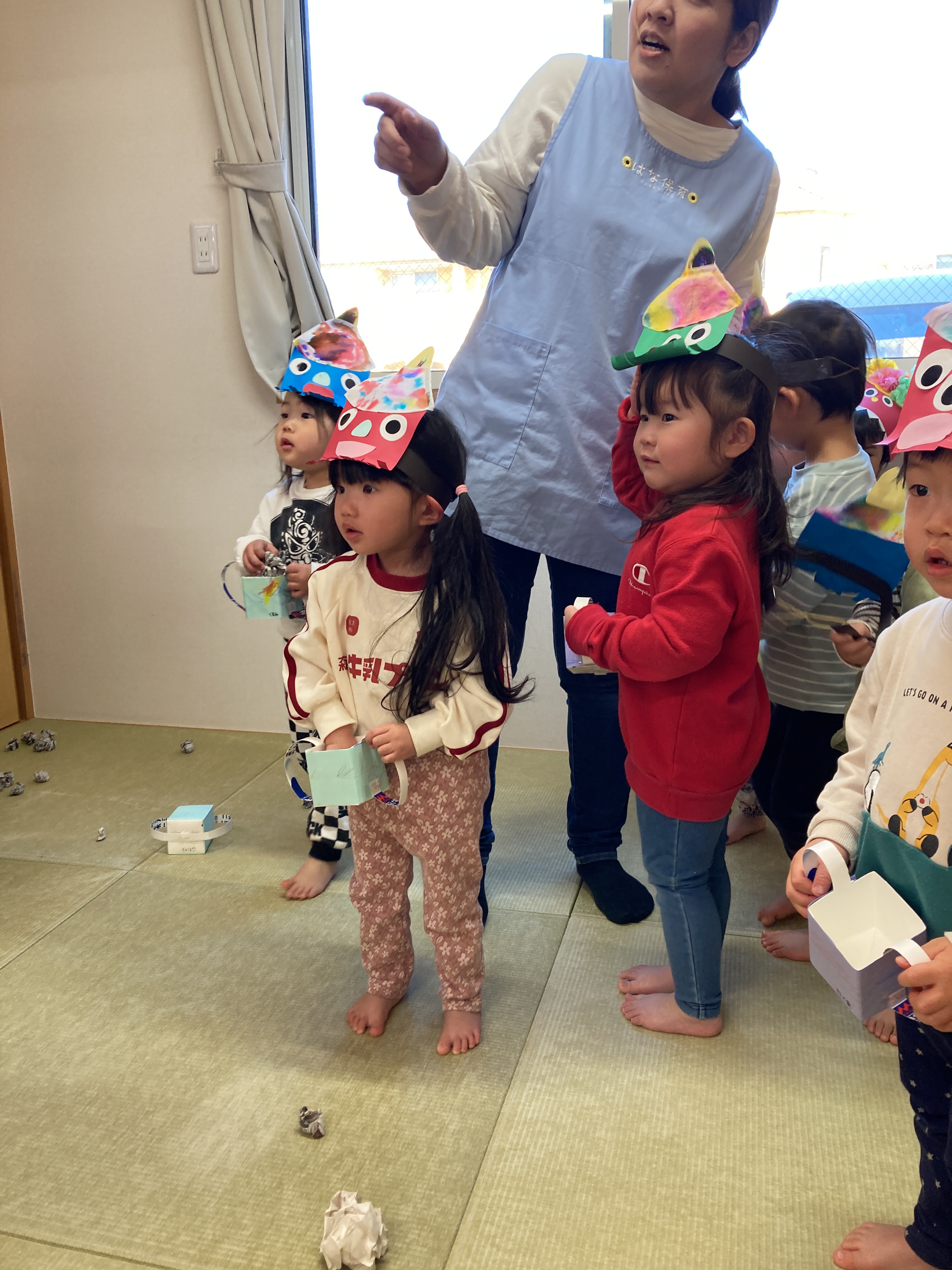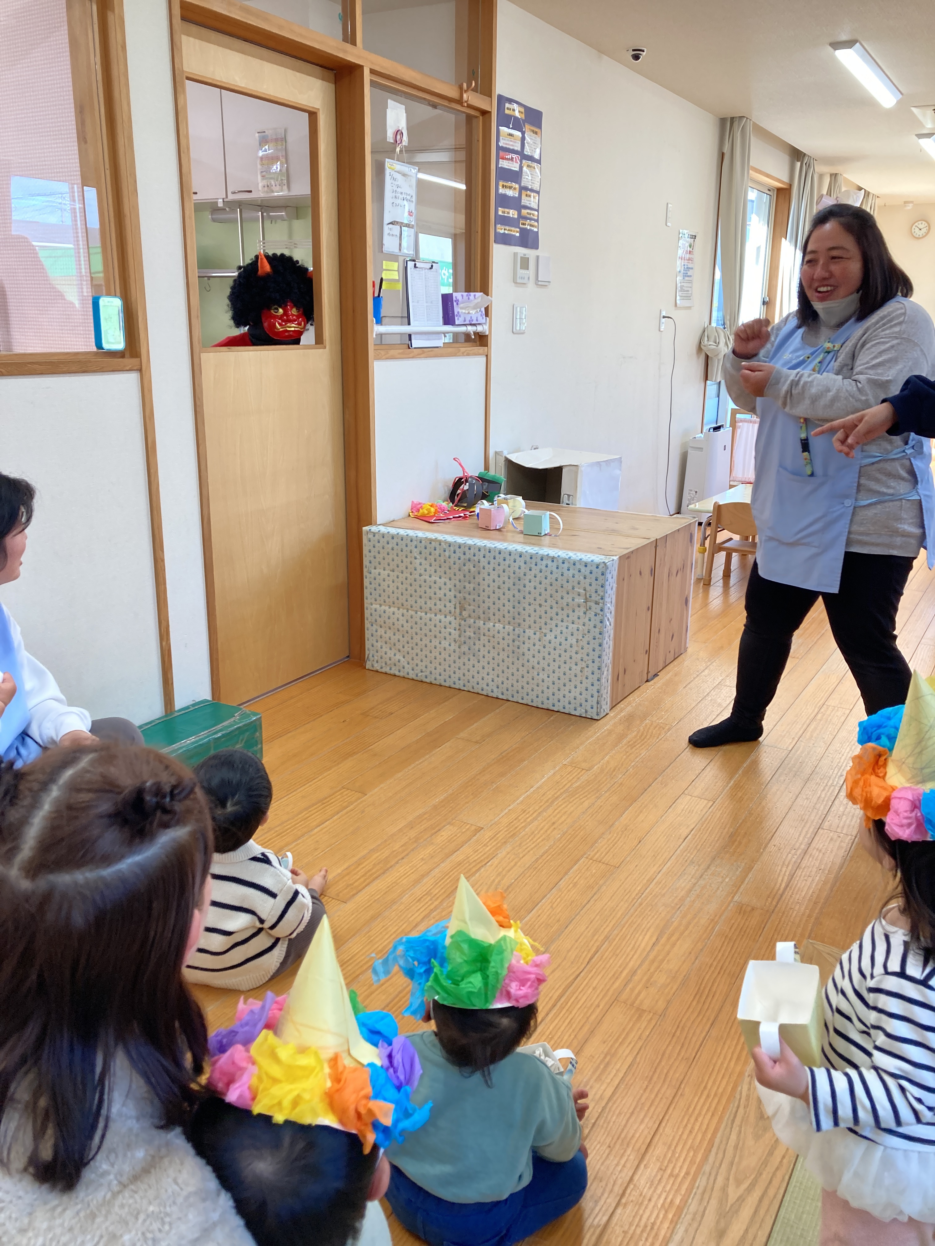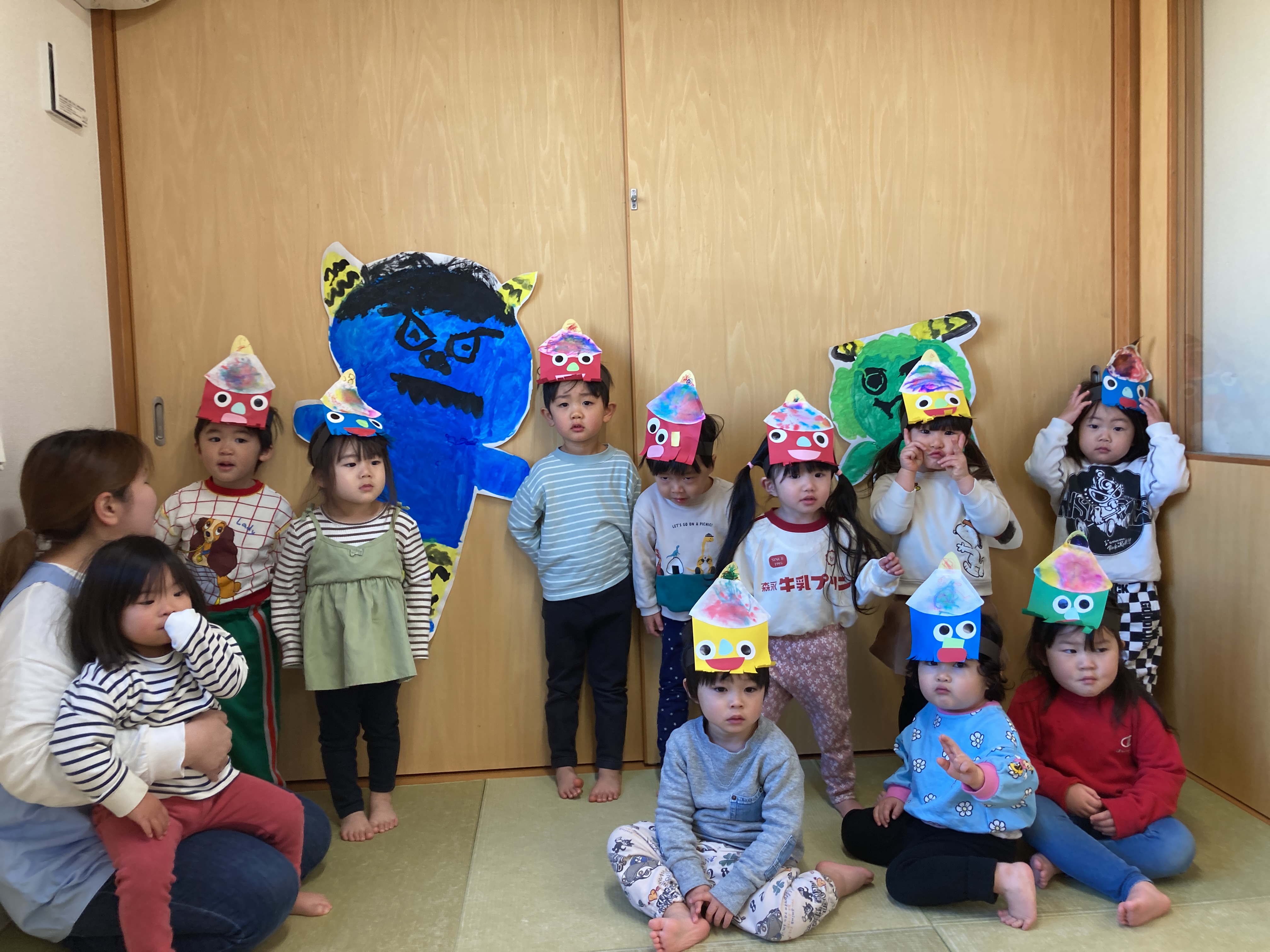 楽しみにしていた節分会、乳児さんと幼児さんでまた違った可愛らしい姿が見られました!