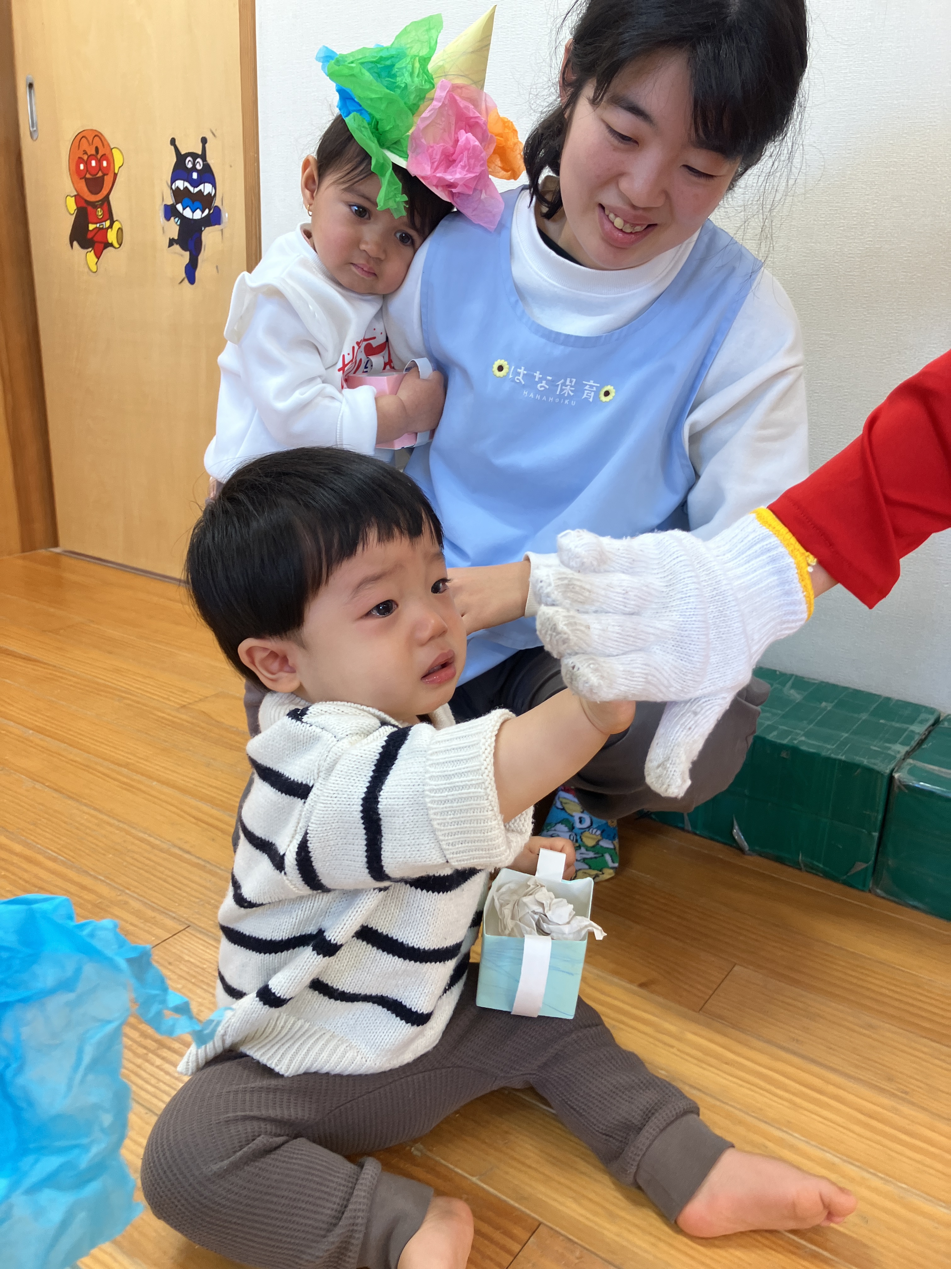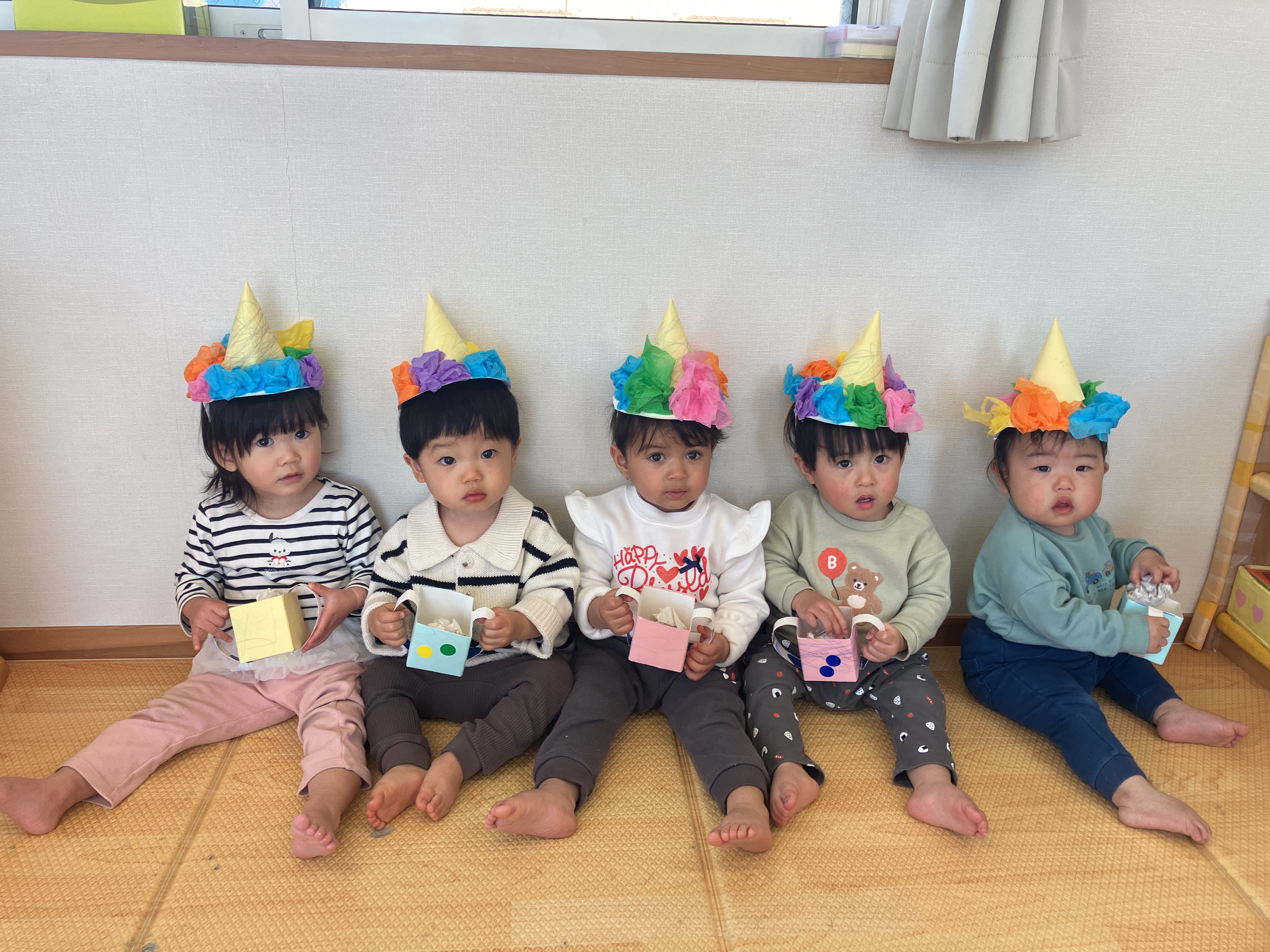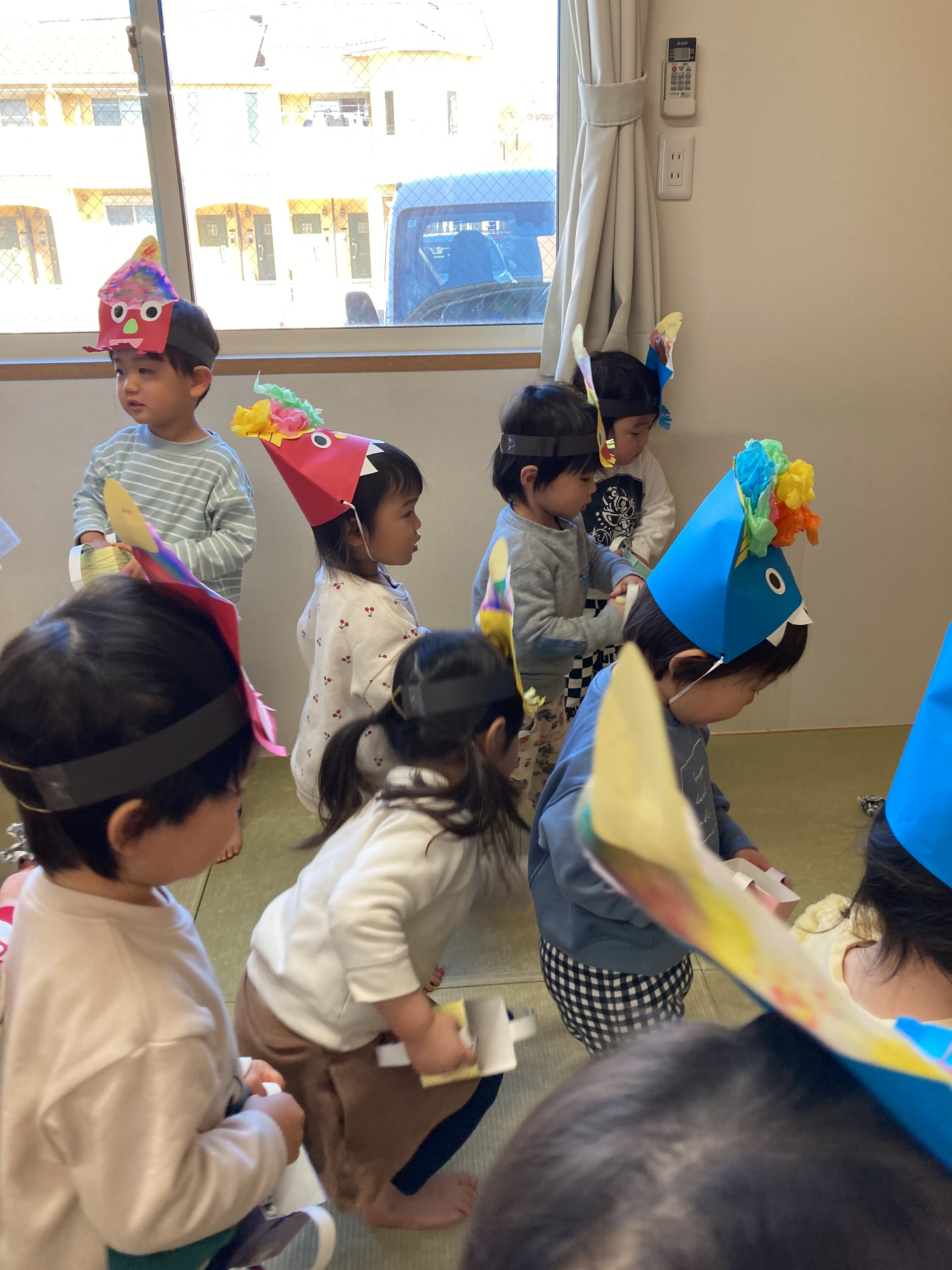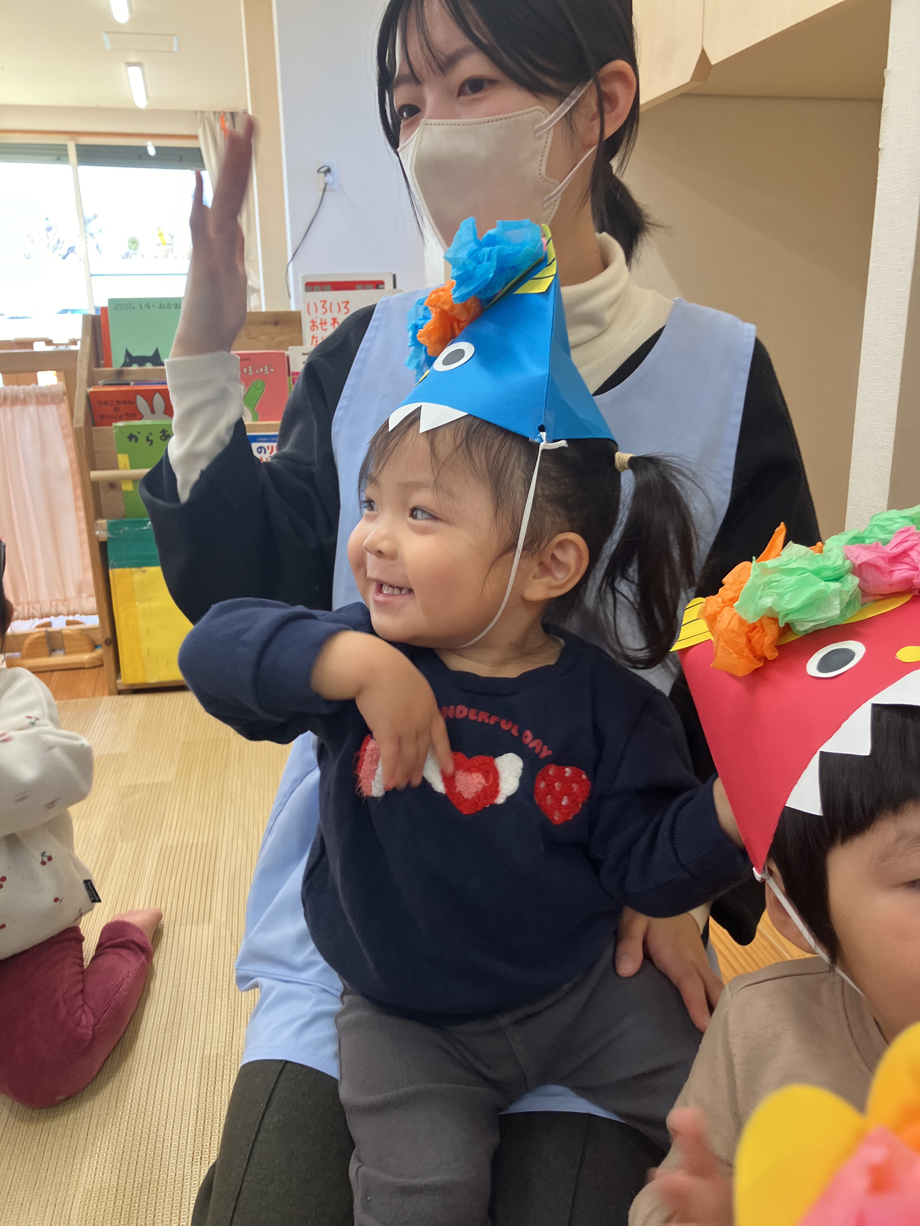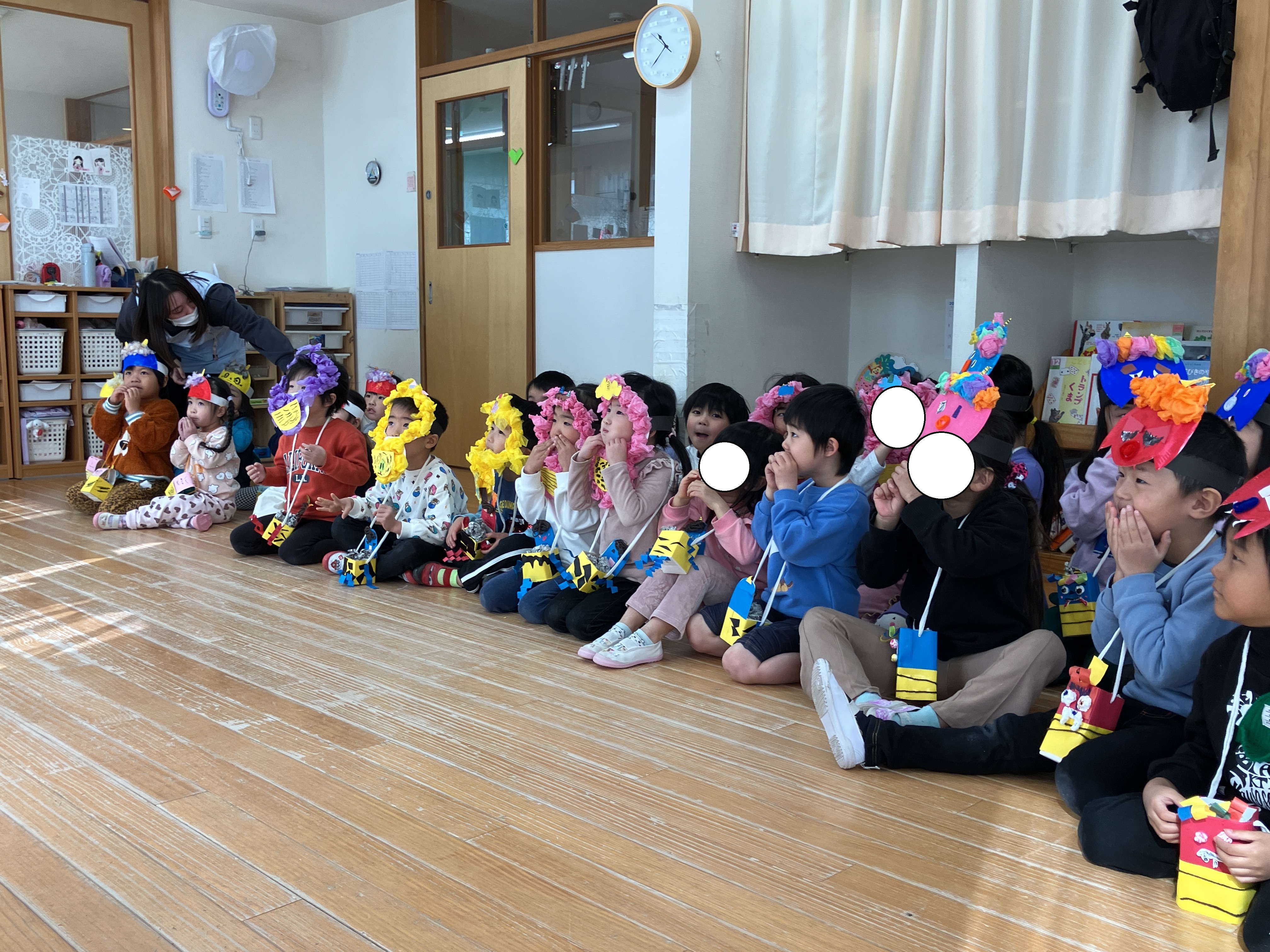 楽しみにしていた節分会、乳児さんと幼児さんでまた違った可愛らしい姿が見られました!
