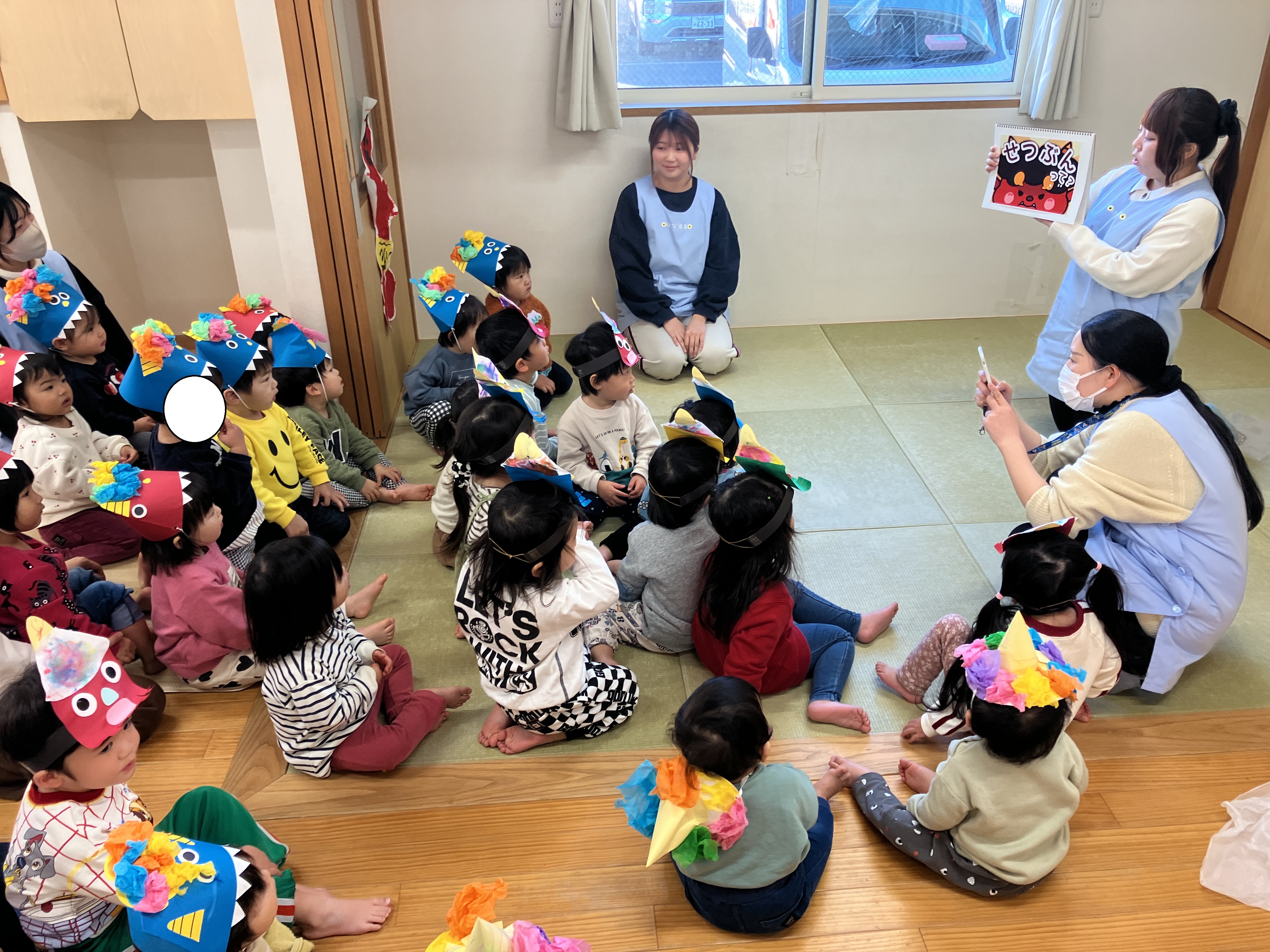 真剣に節分の話を聞きながら「うんうん」と頷いてくれるみんな![]()
