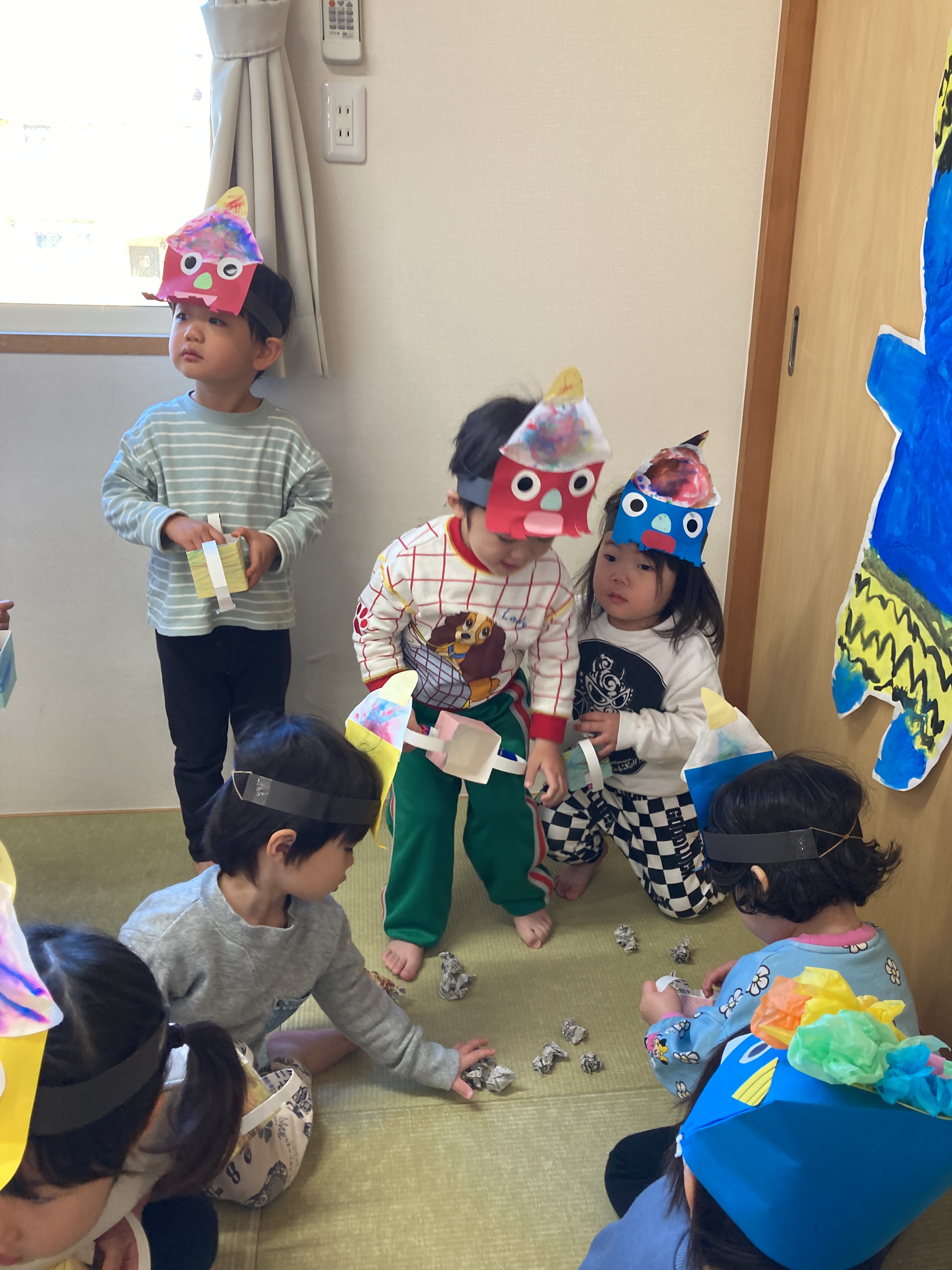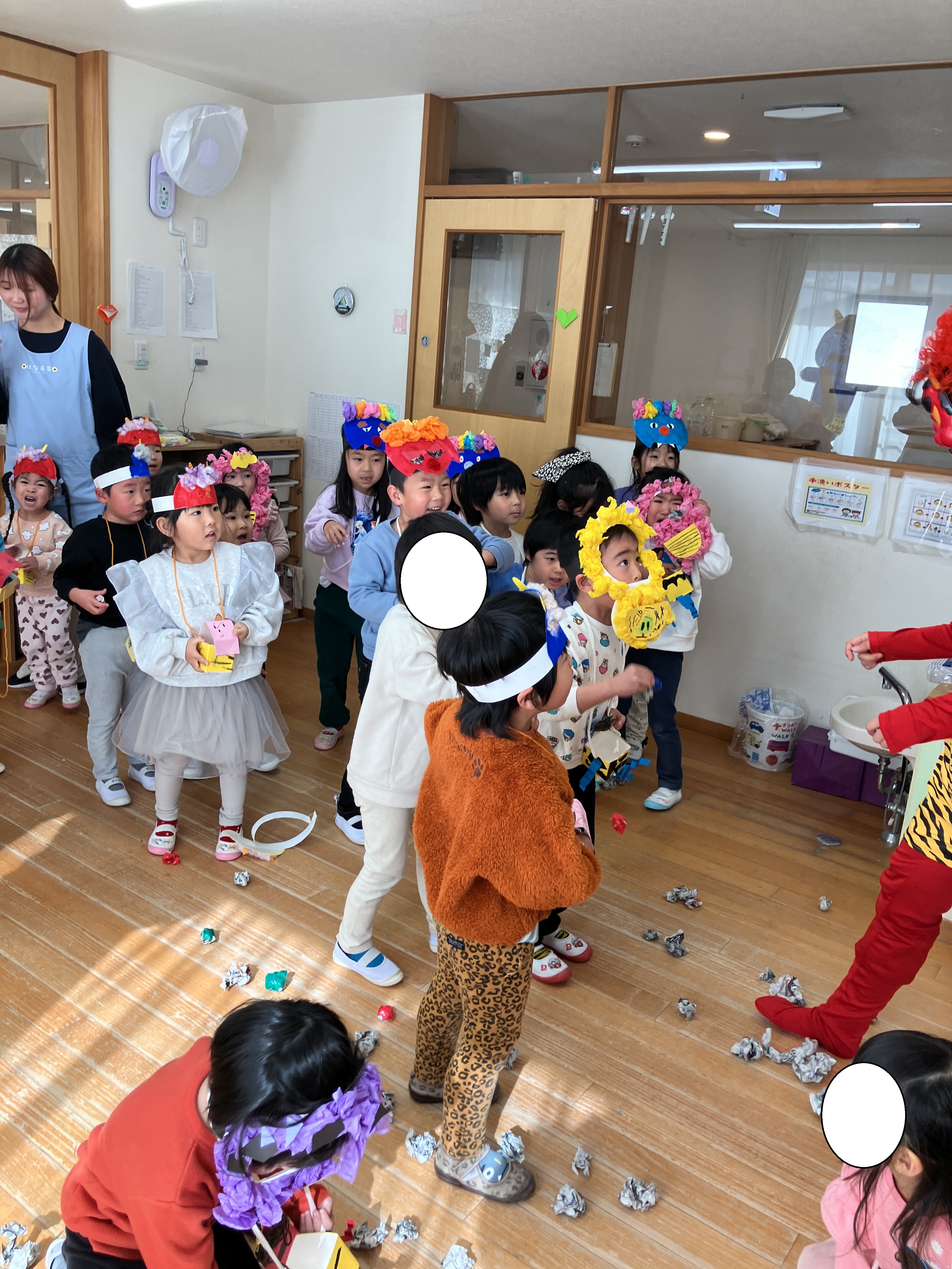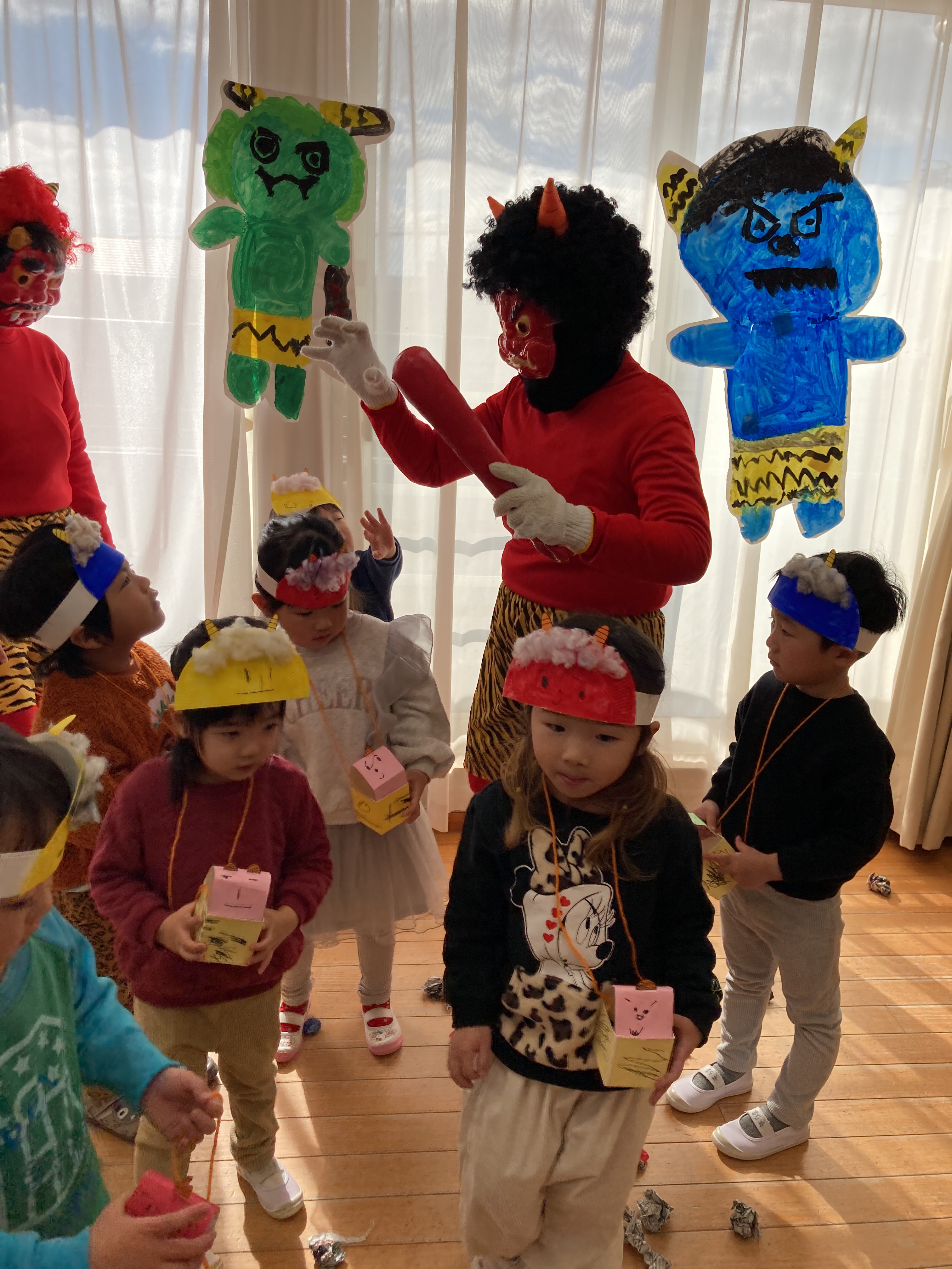 お家でも作った鬼のお面をかぶってみたり、鬼がどうだったかなど聞いてみたりしてくださいね![]()