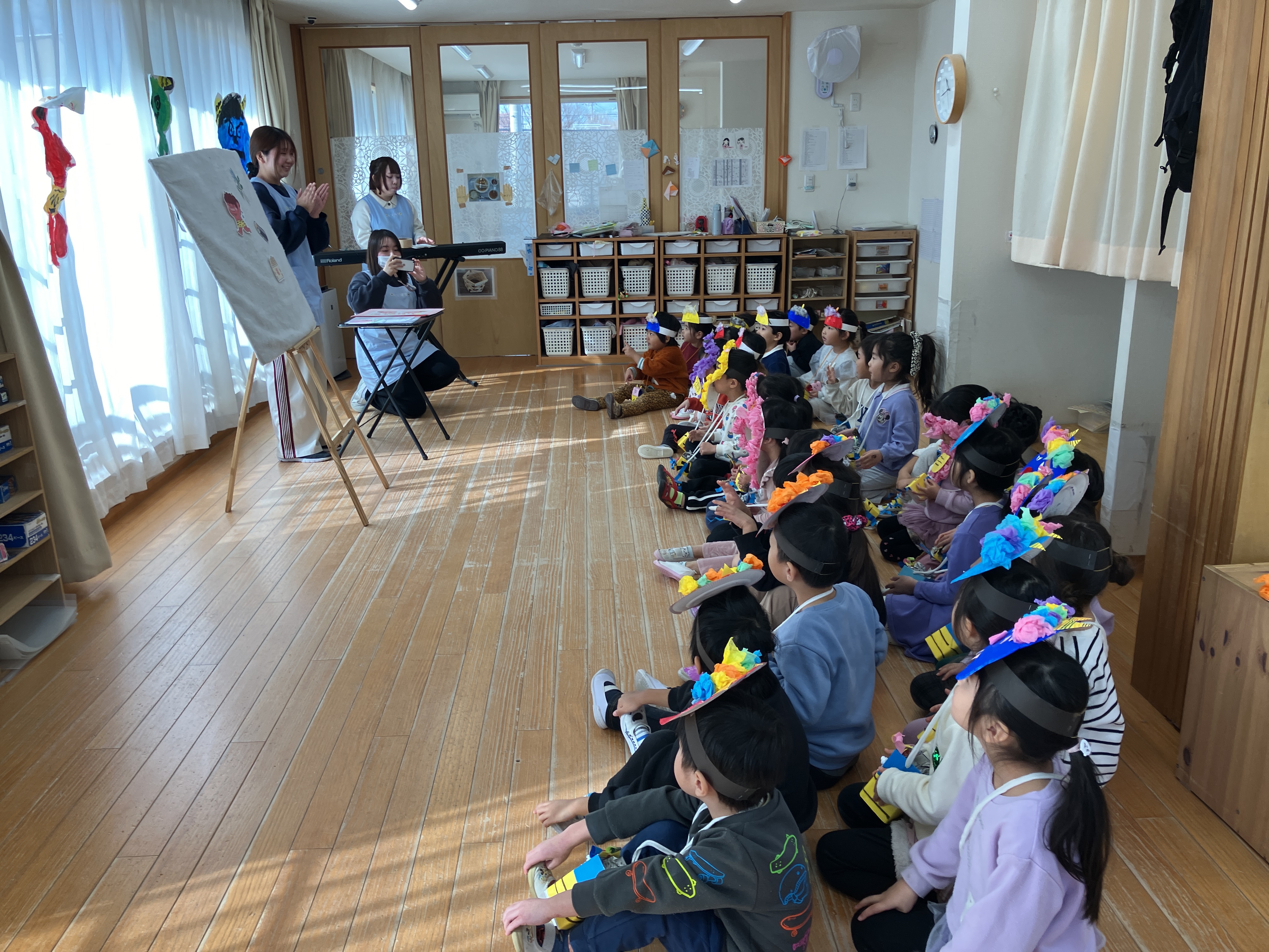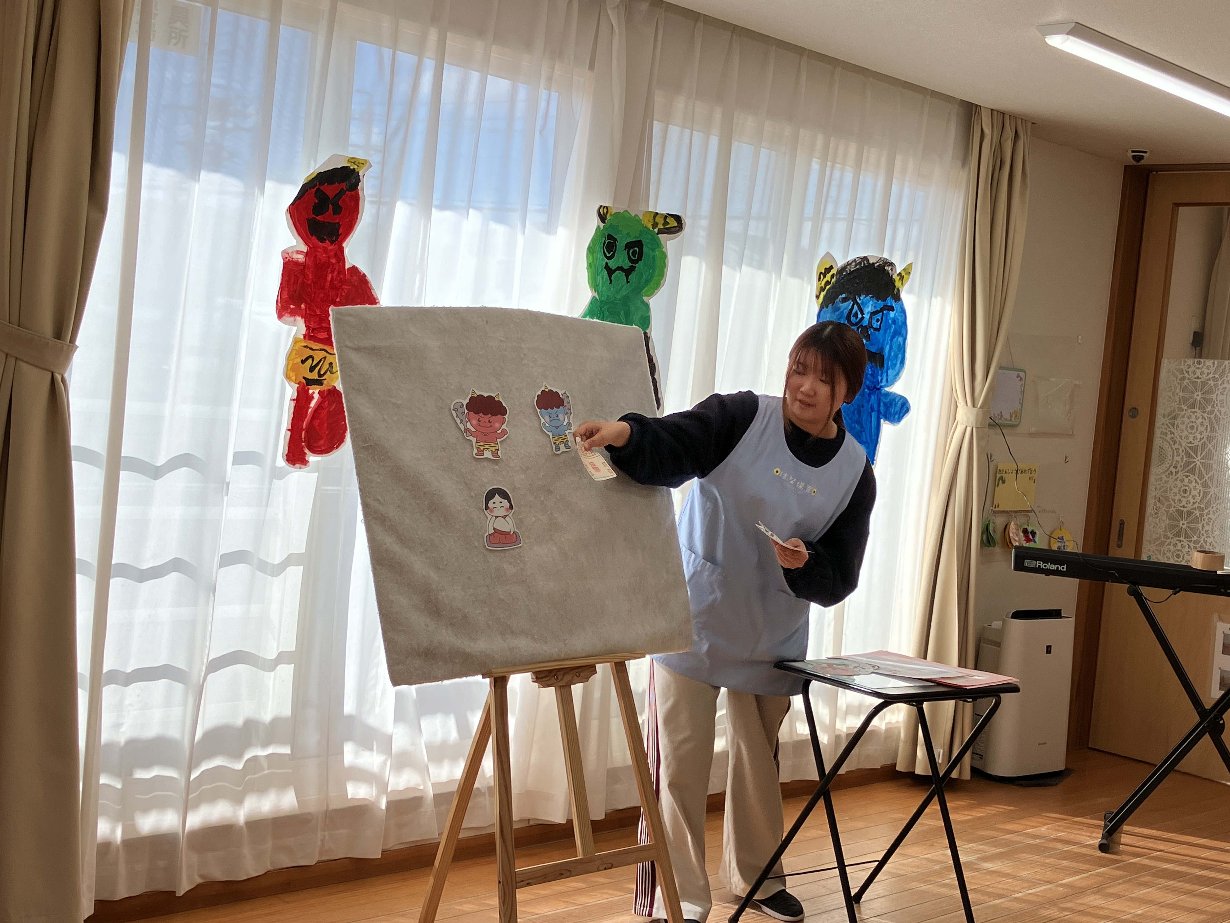 そのあとは節分についてのパネルシアターを聞きました!![]()