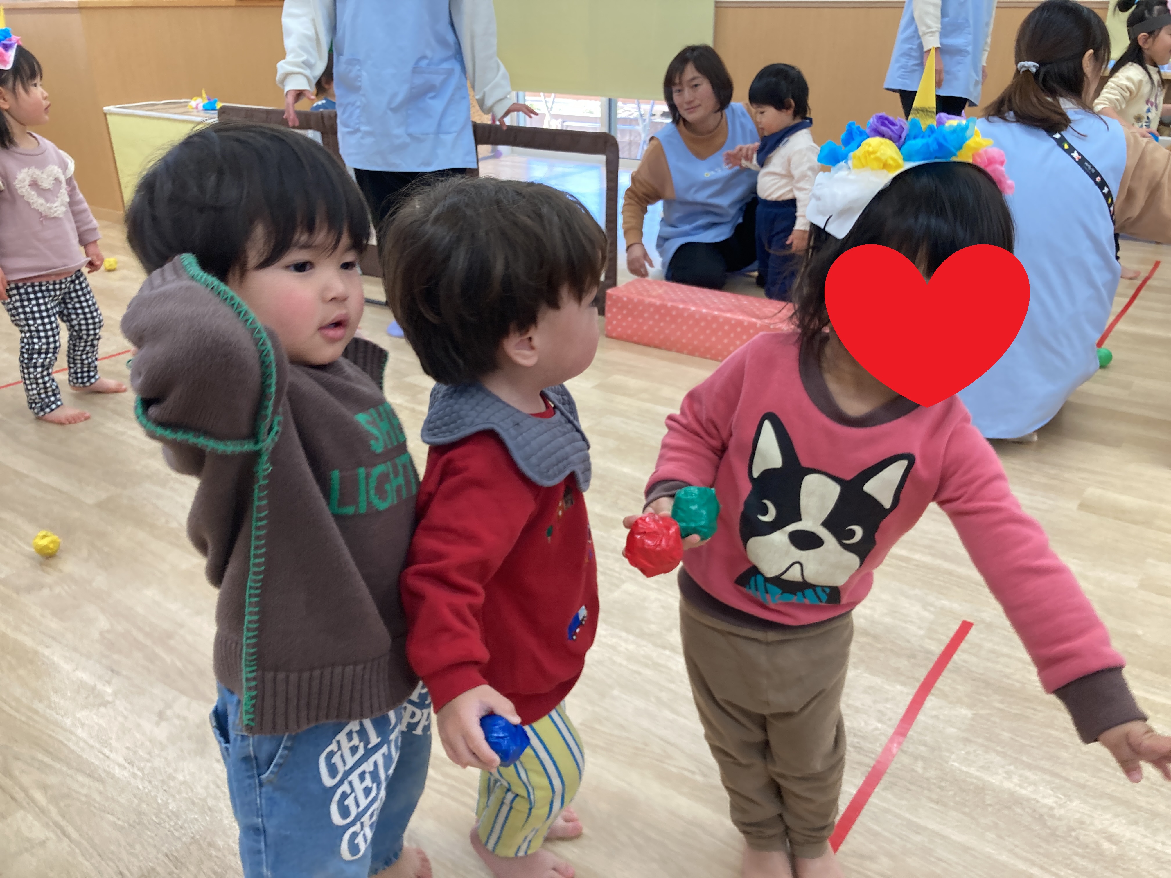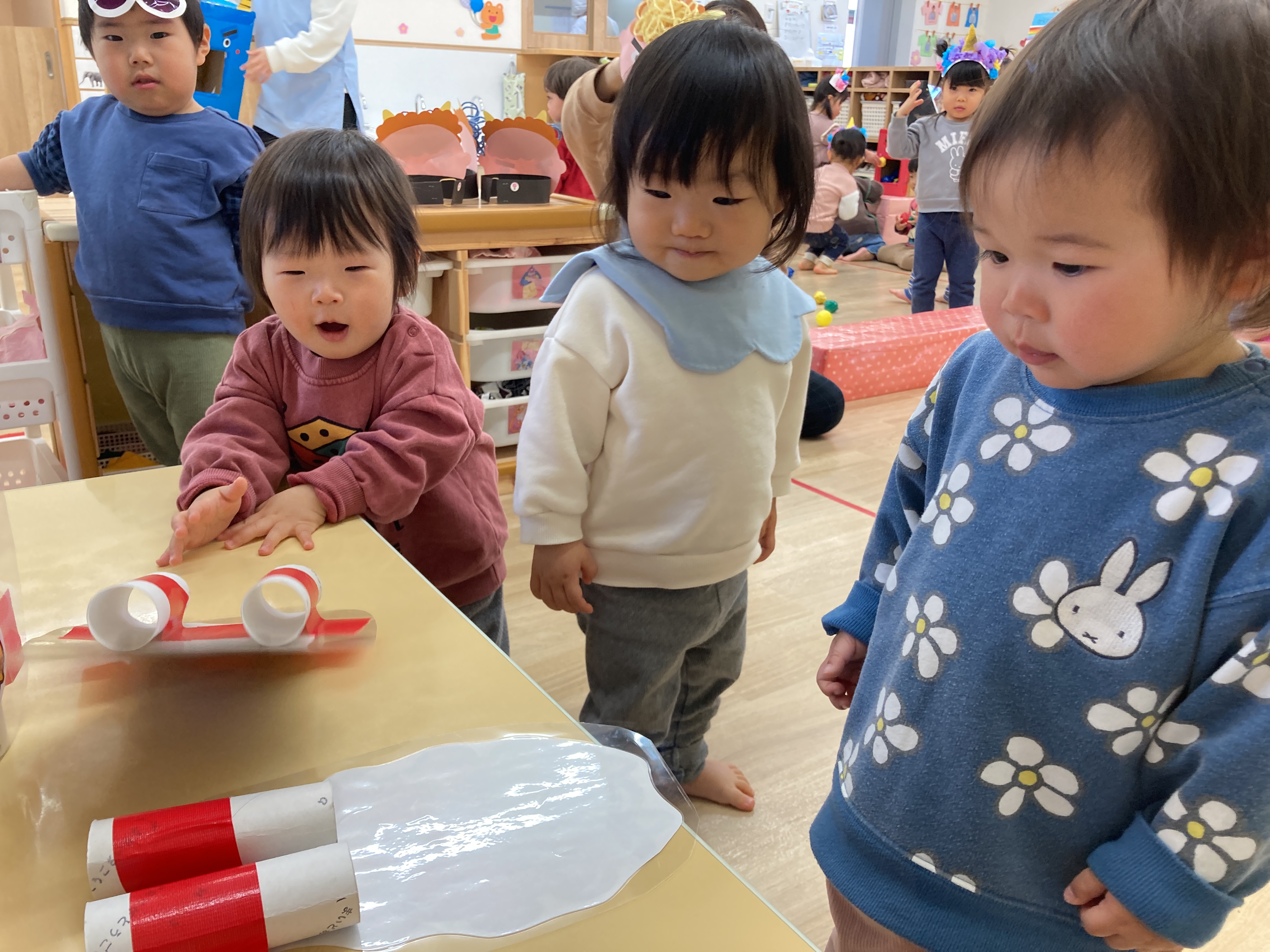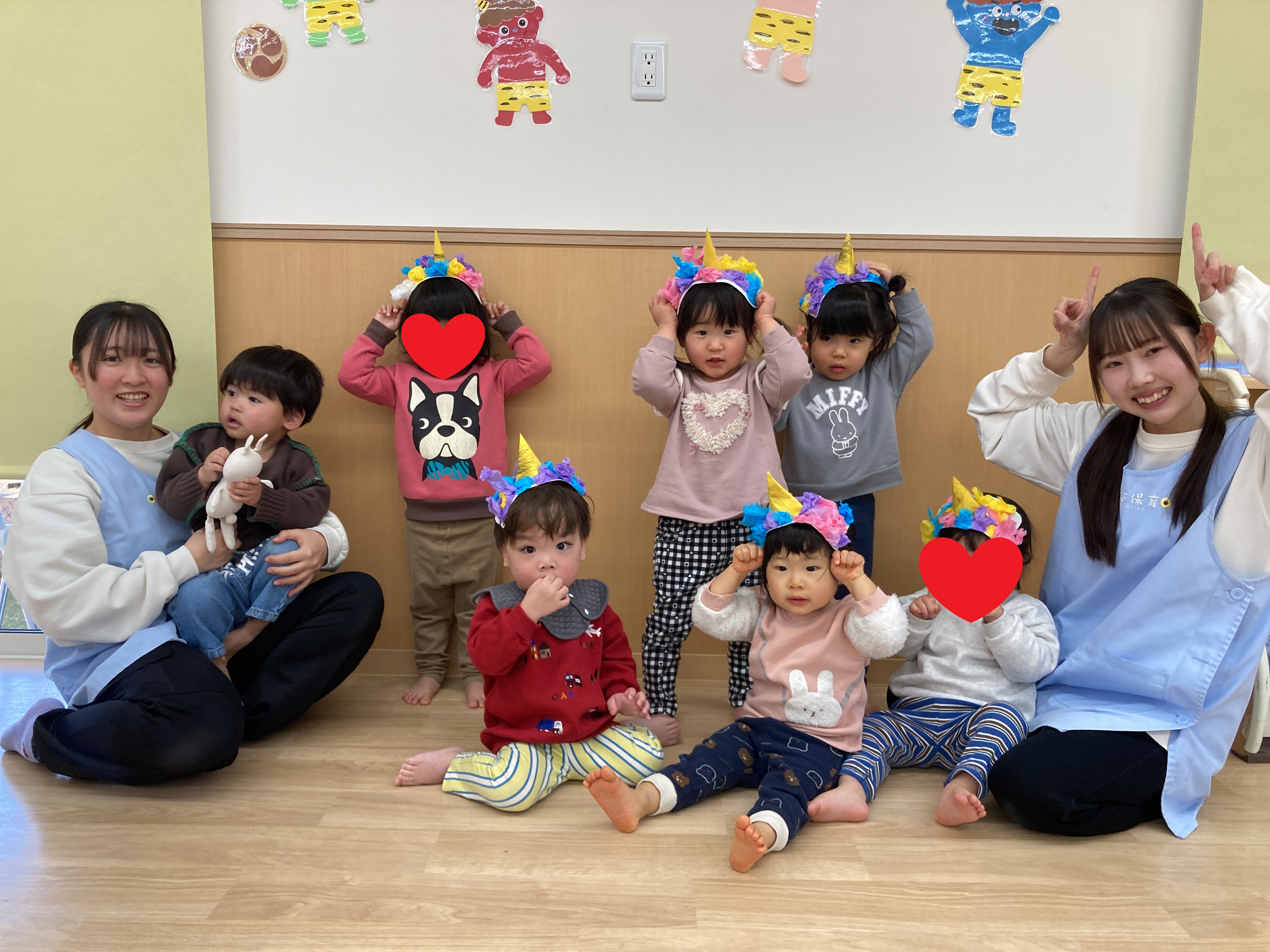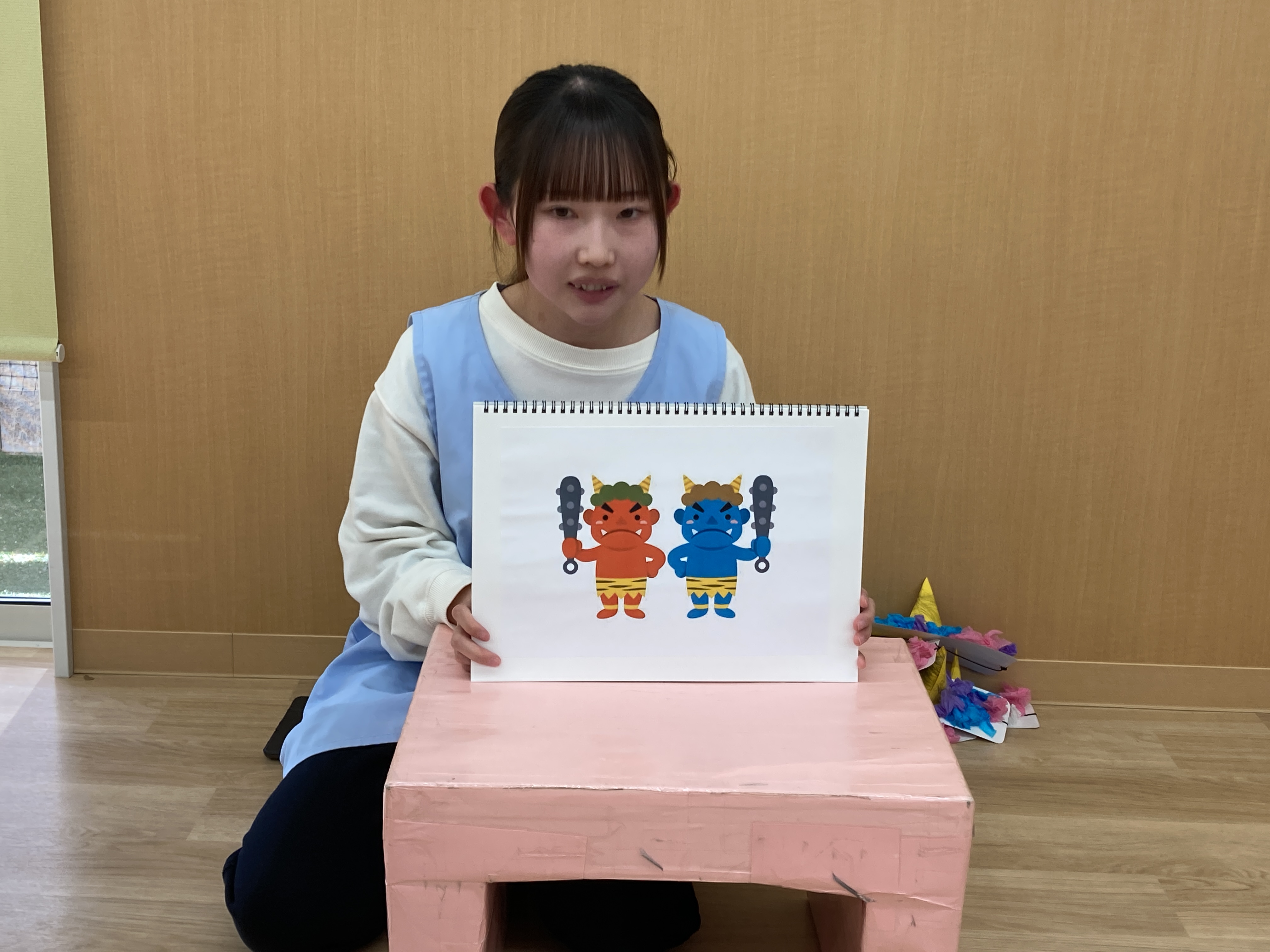 みんなが一生懸命作った鬼のお面やヘアバンド、とても似合ってて可愛いね
