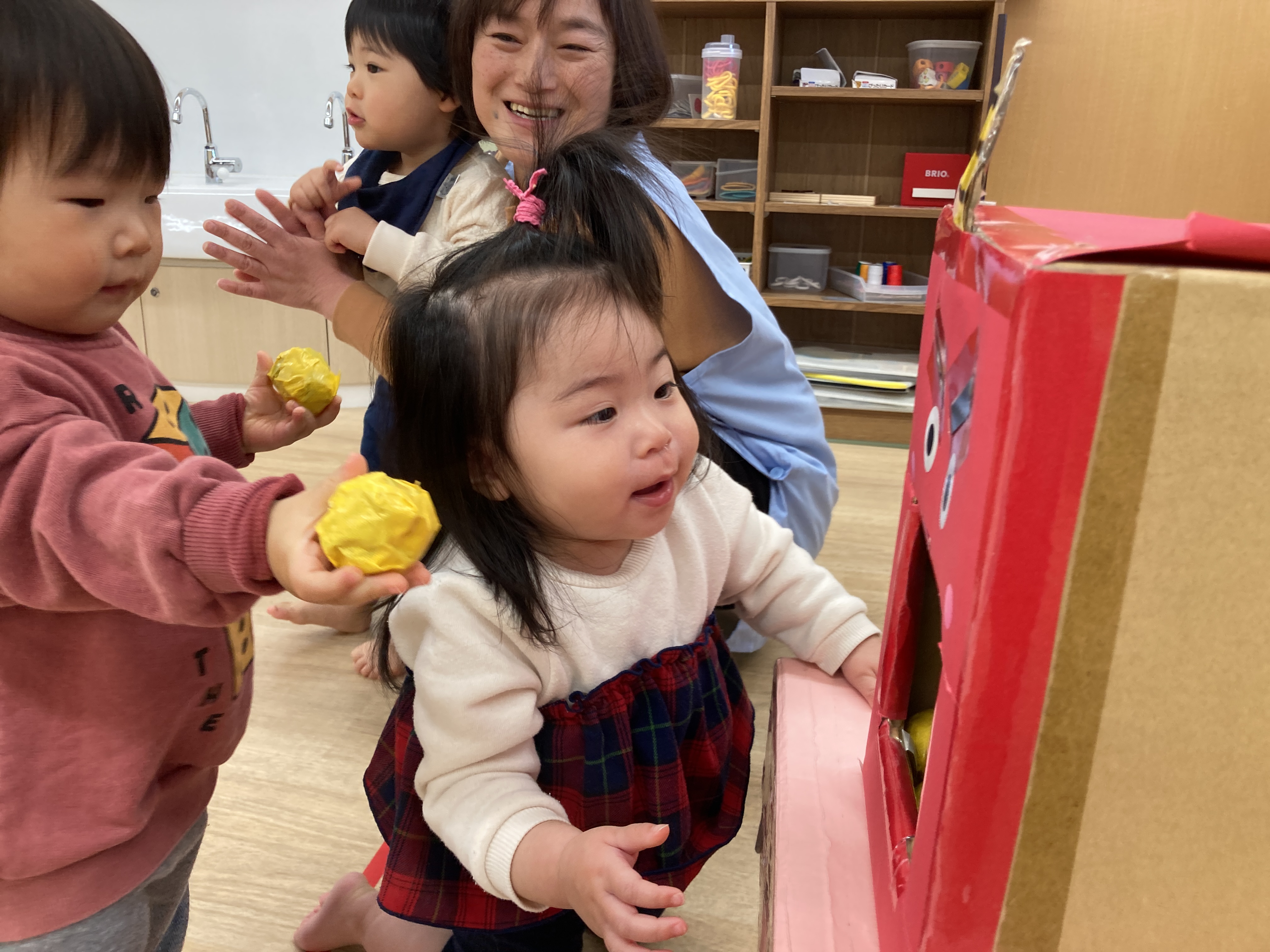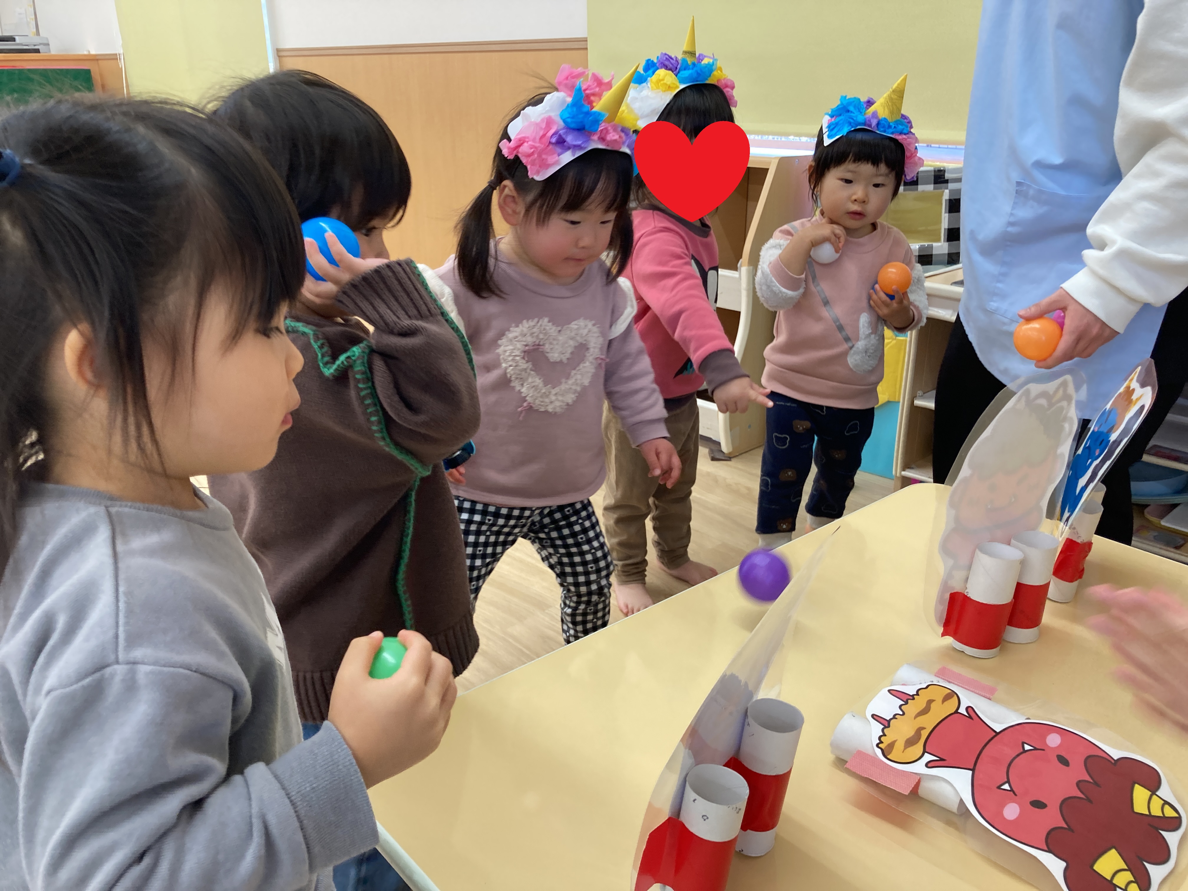 鬼の的当てや玉入れを楽しみながら豆まきの練習![]()