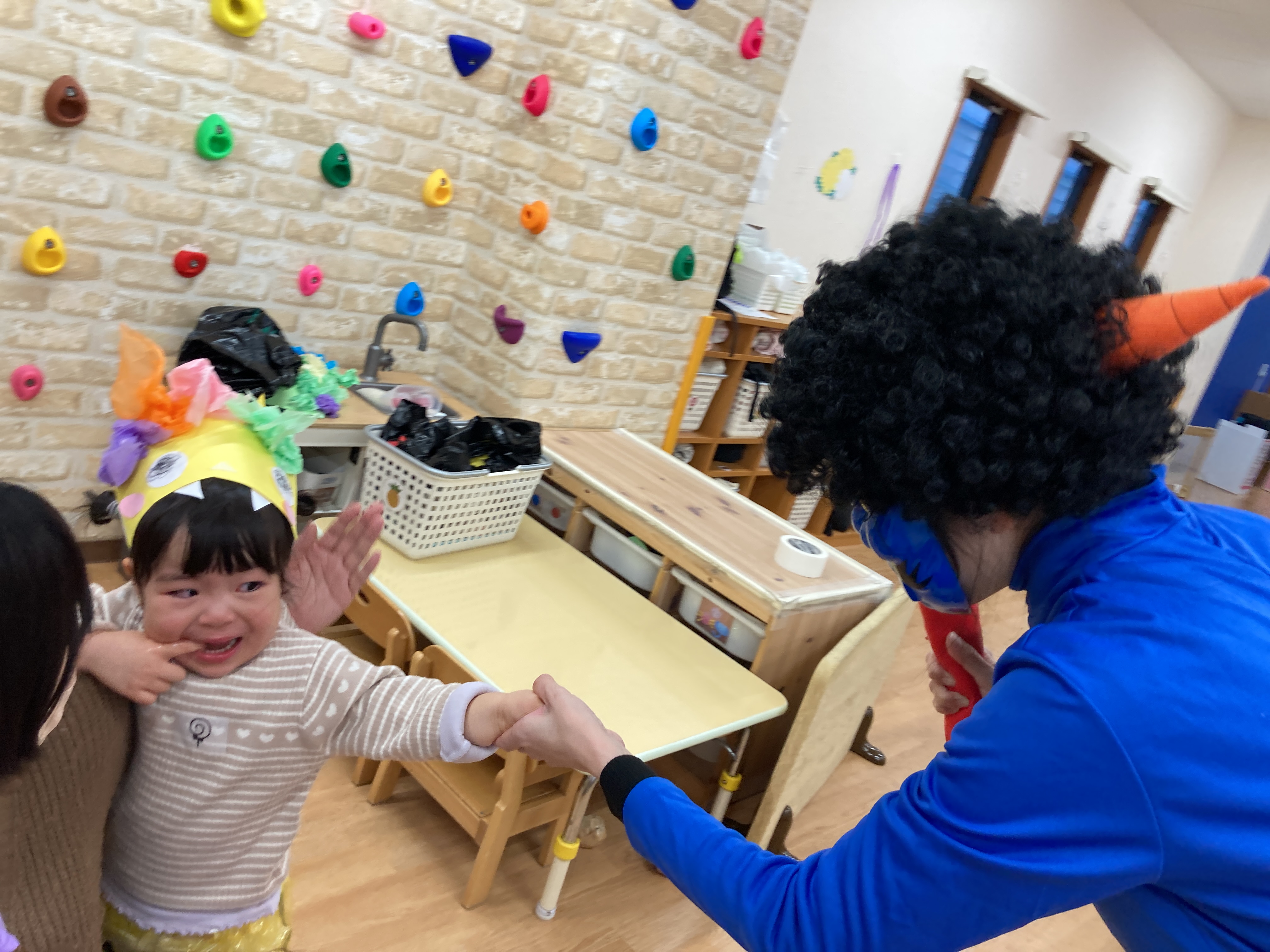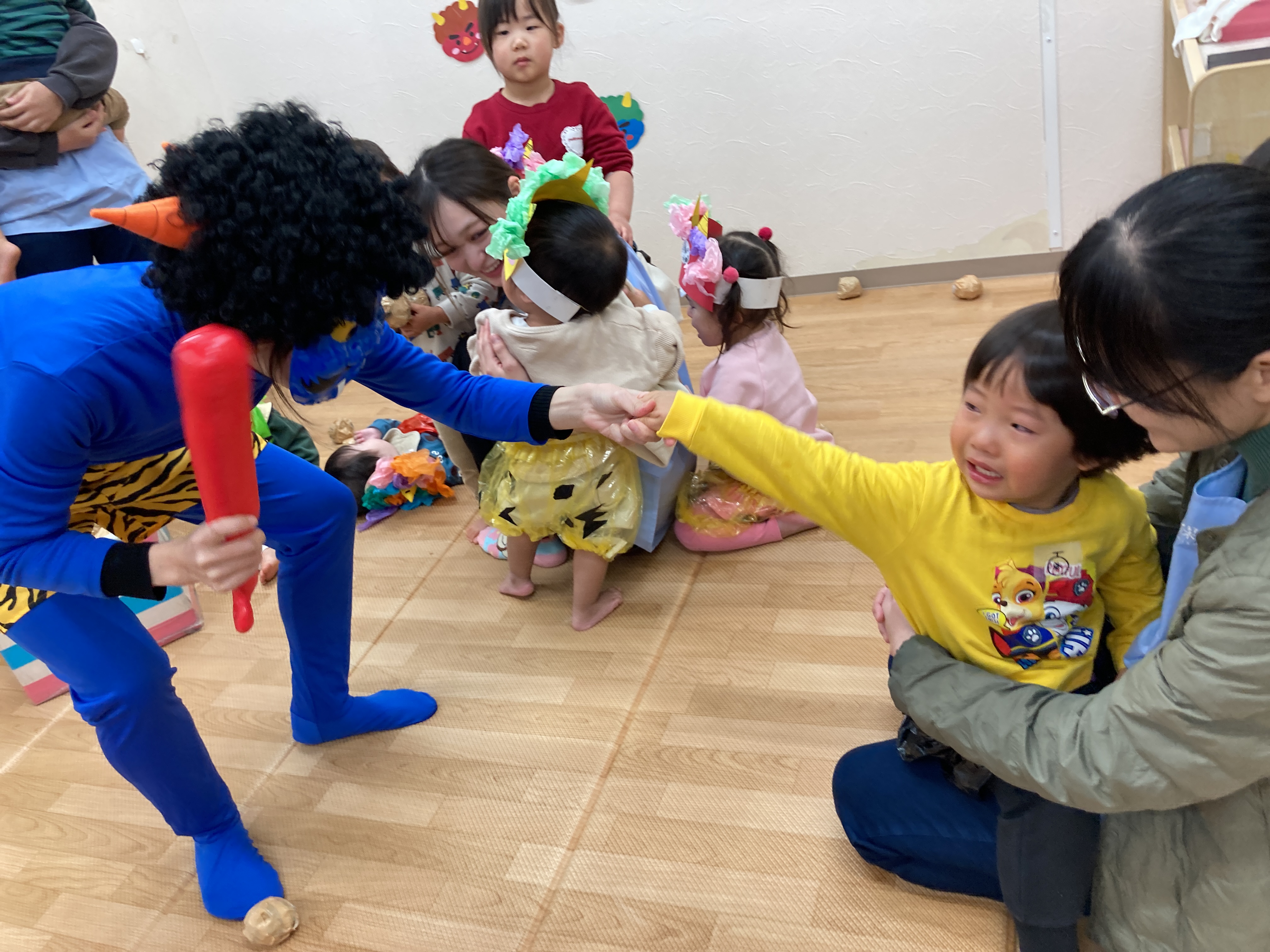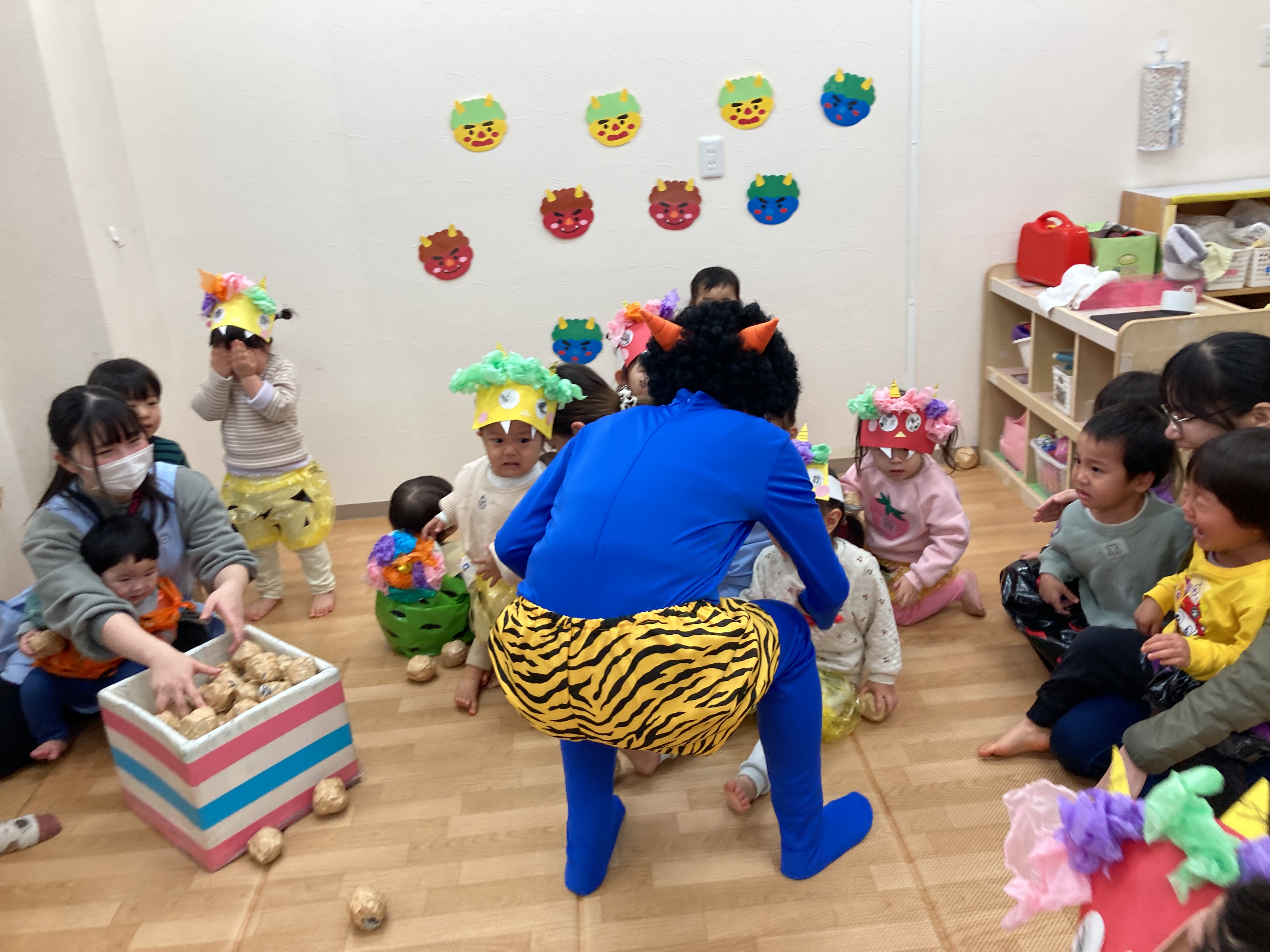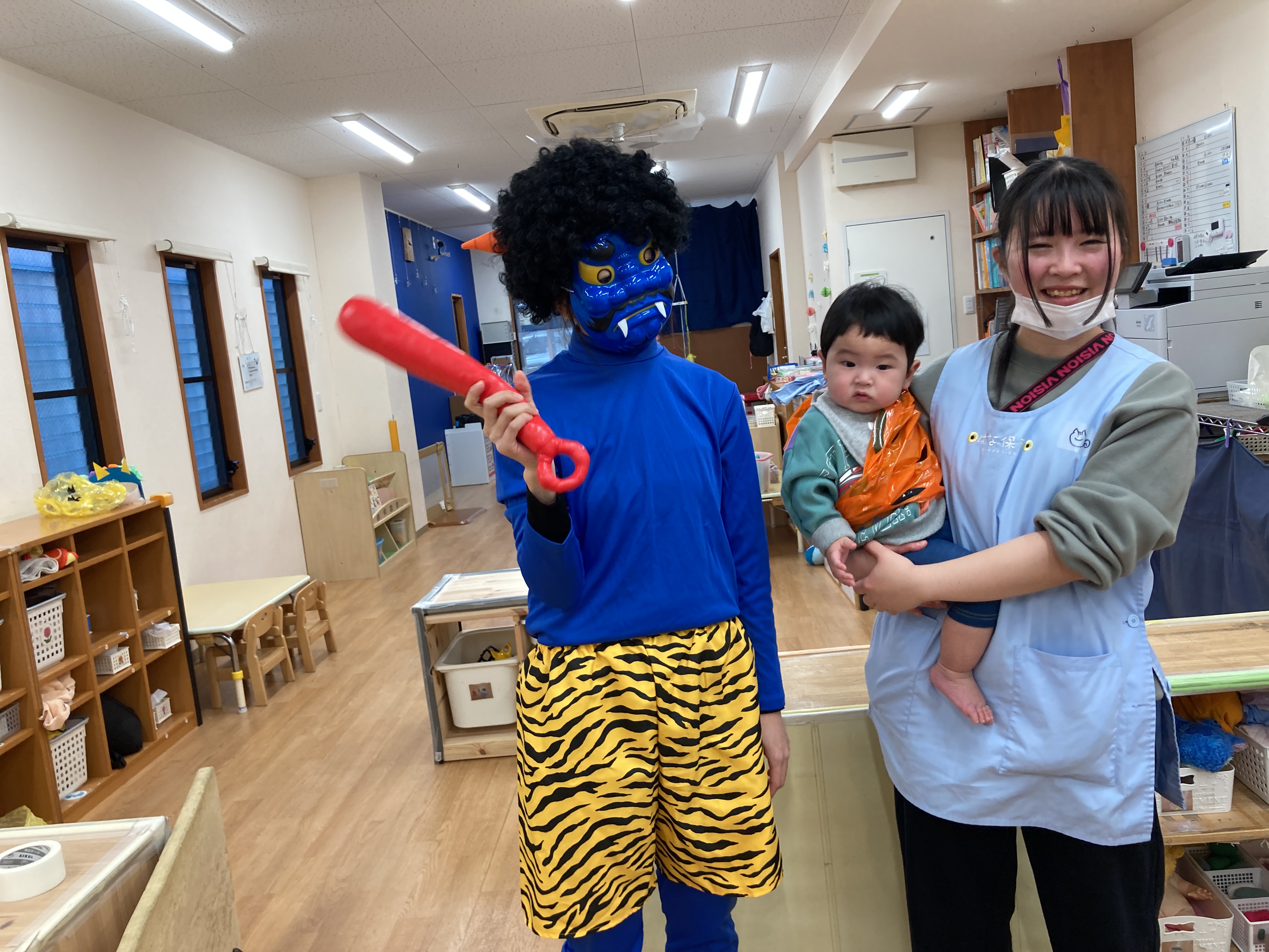 鬼を見て子どもたちはビックリ!先生の後ろに隠れてしまうお友だちもいましたが、