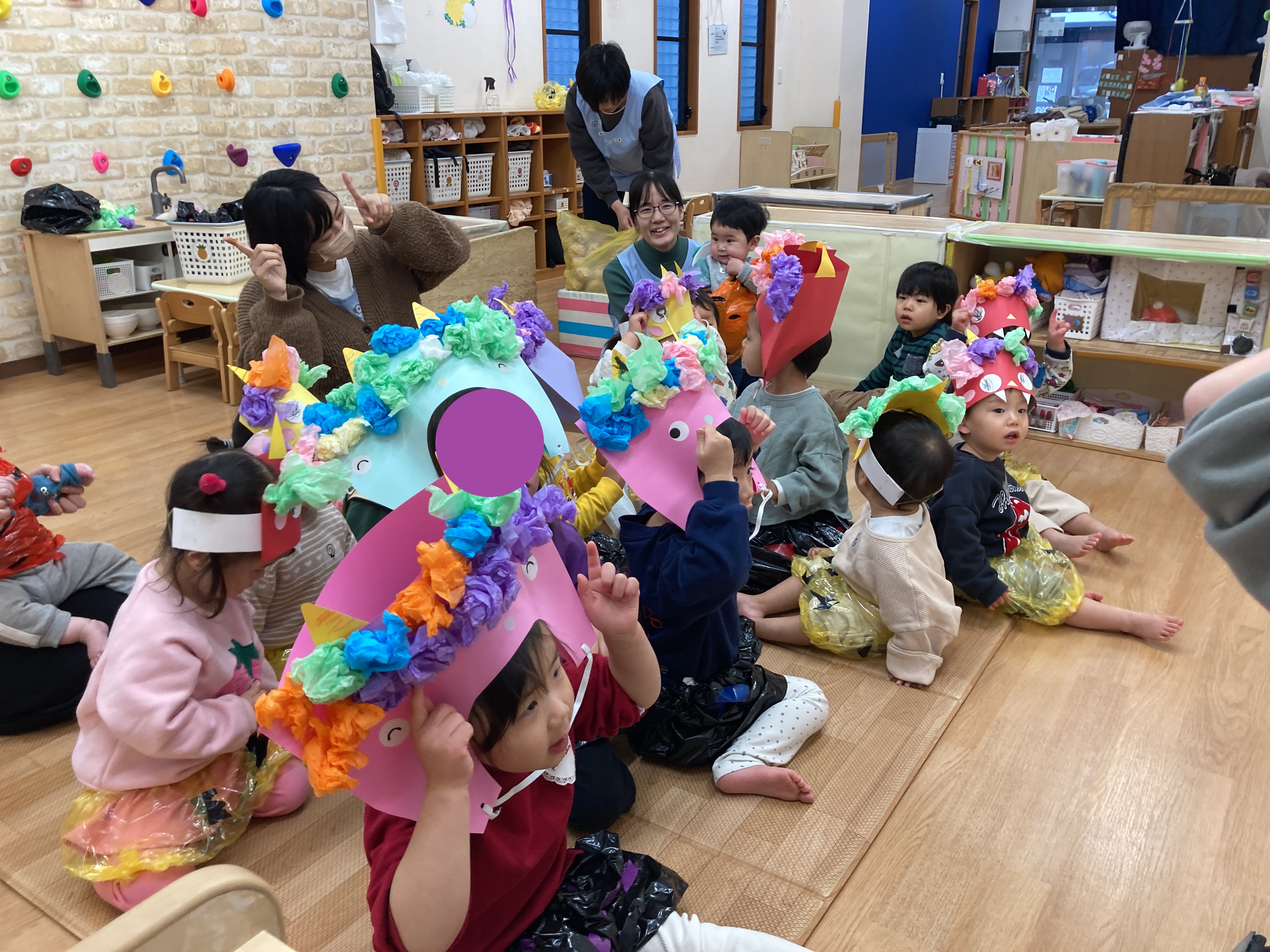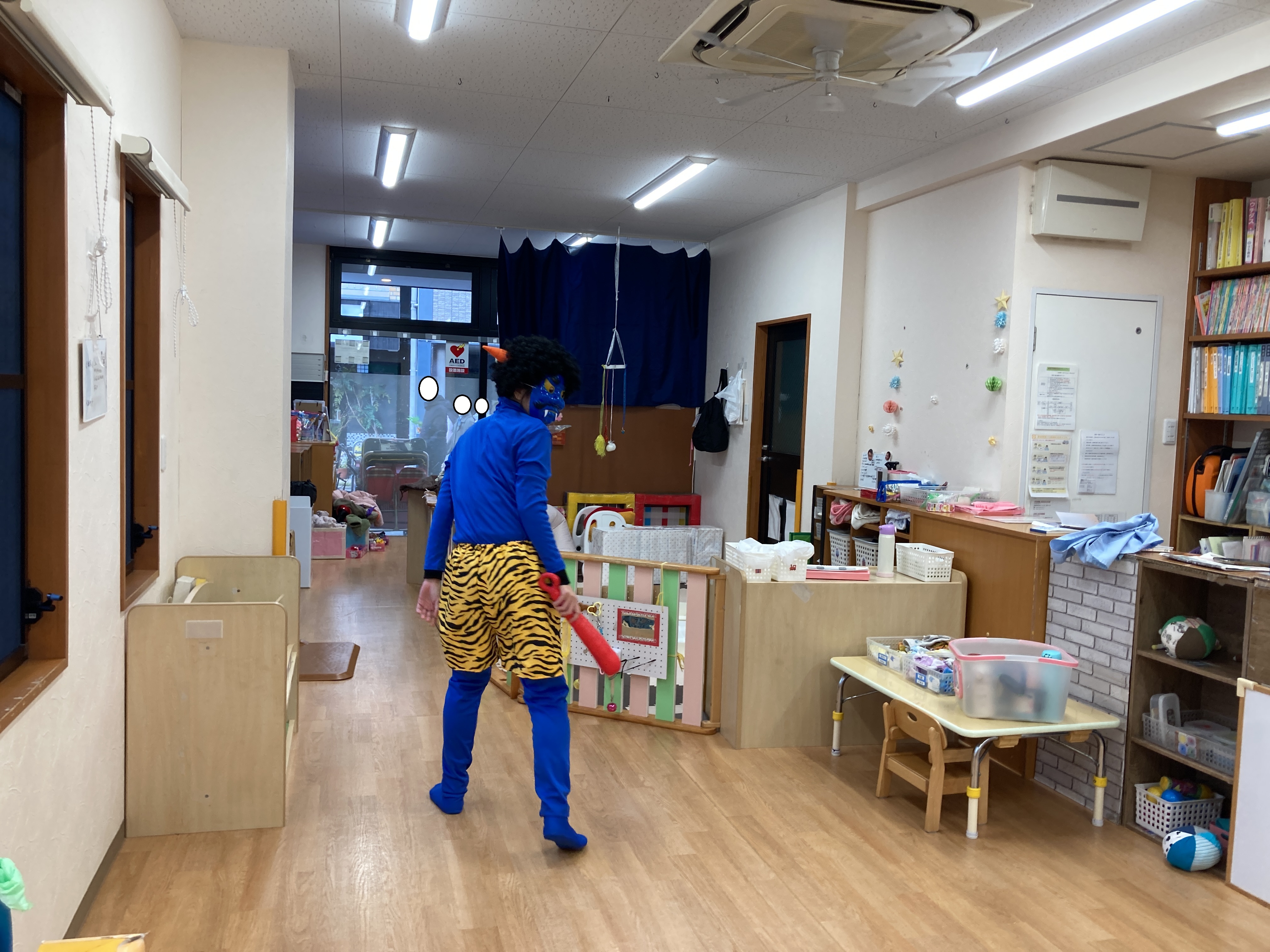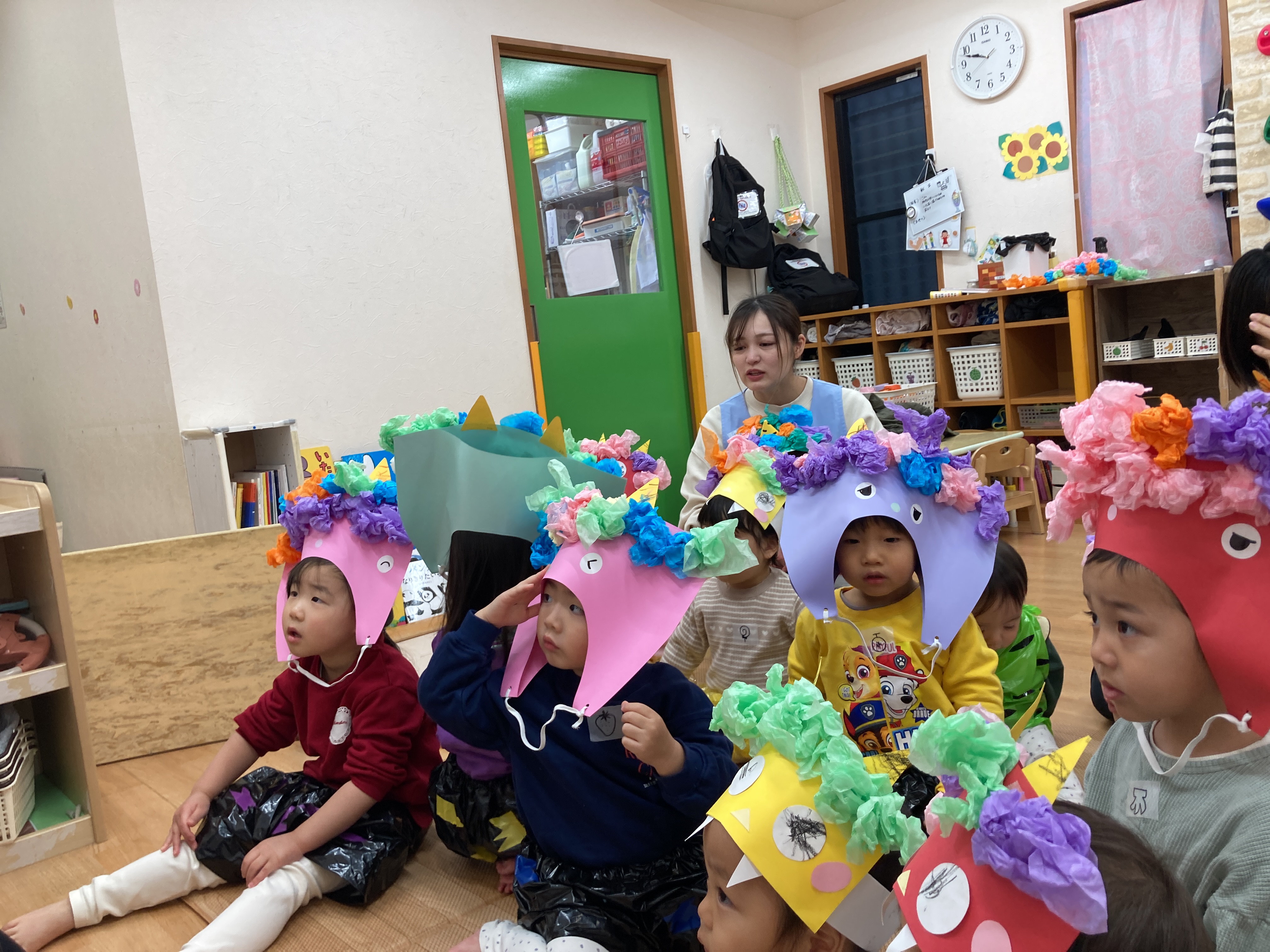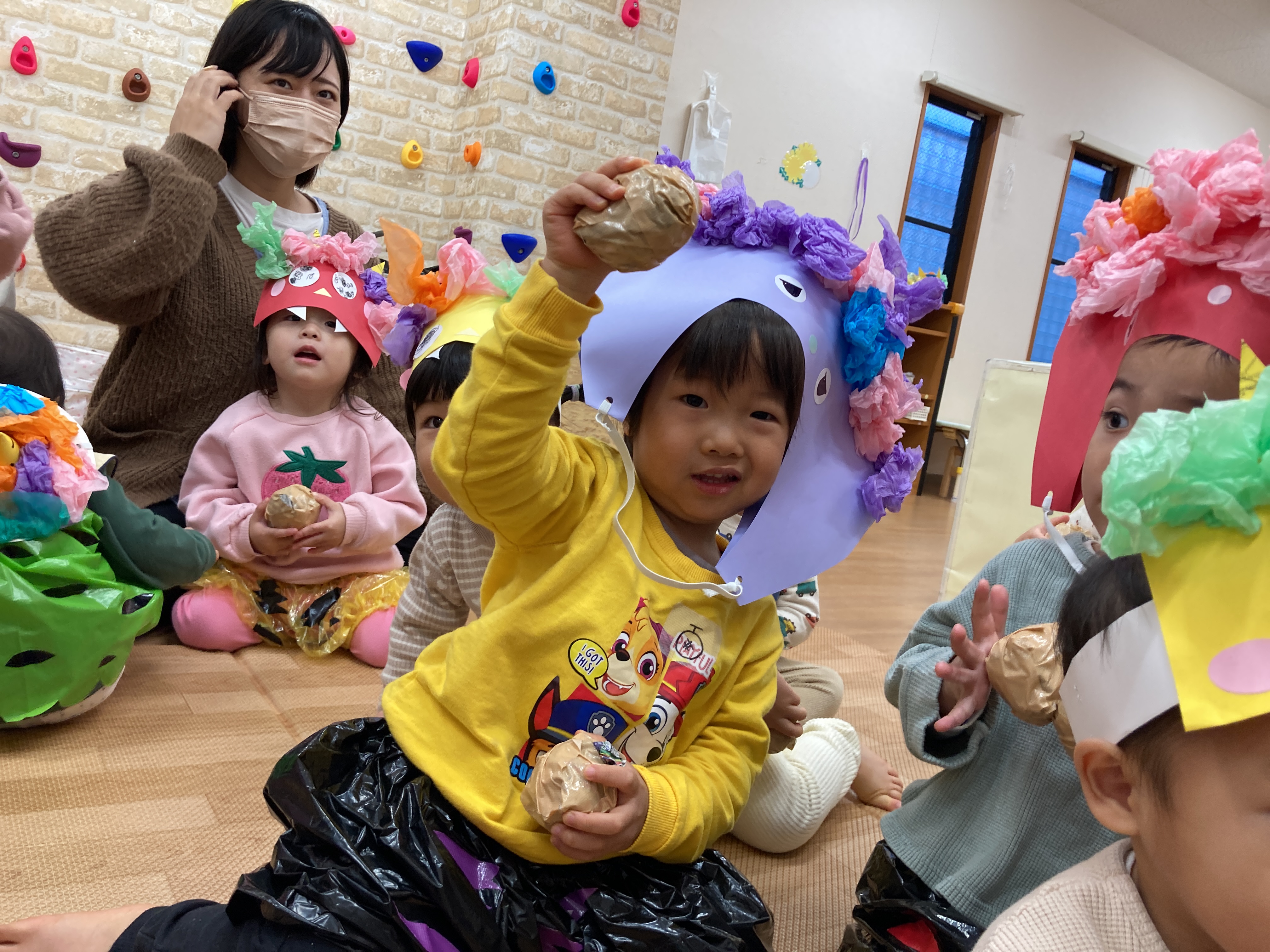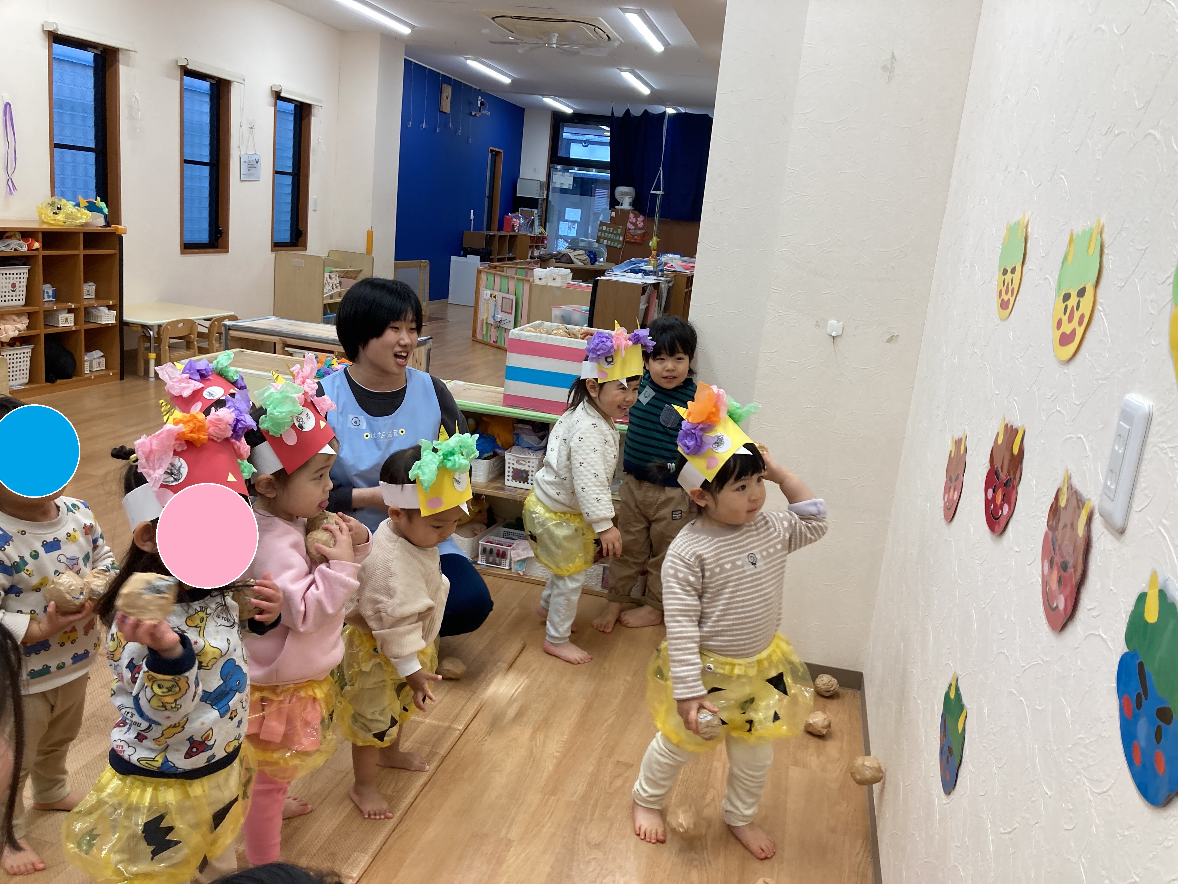 鬼を見て子どもたちはビックリ!先生の後ろに隠れてしまうお友だちもいましたが、