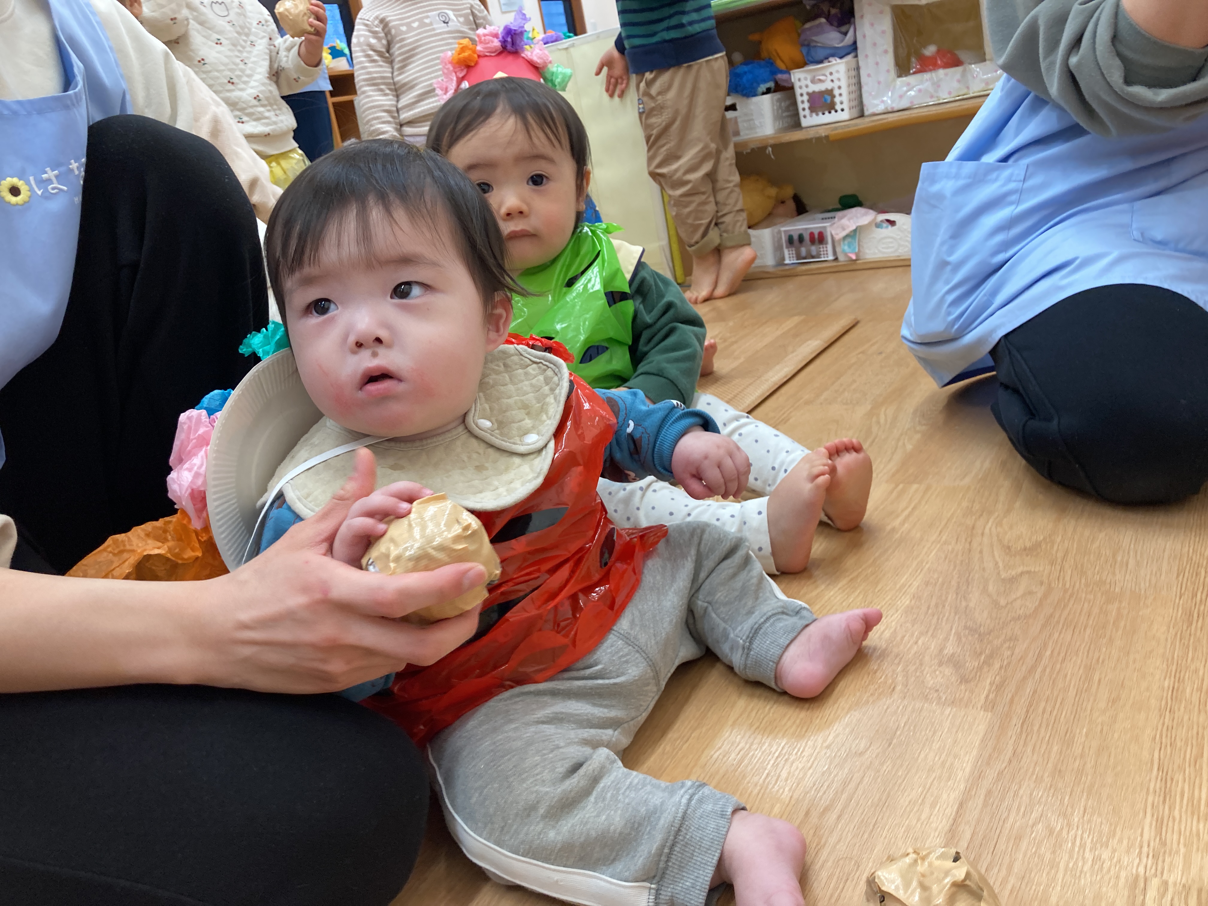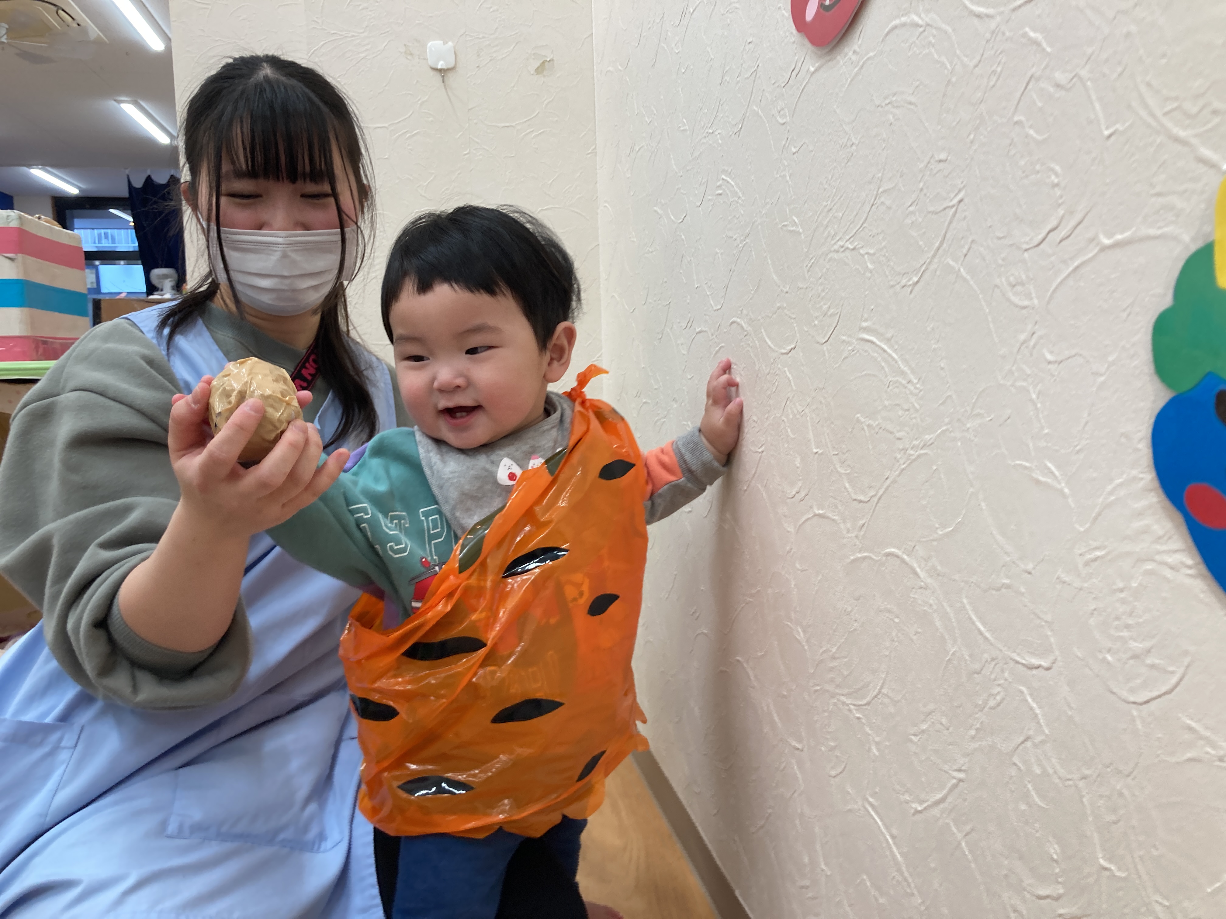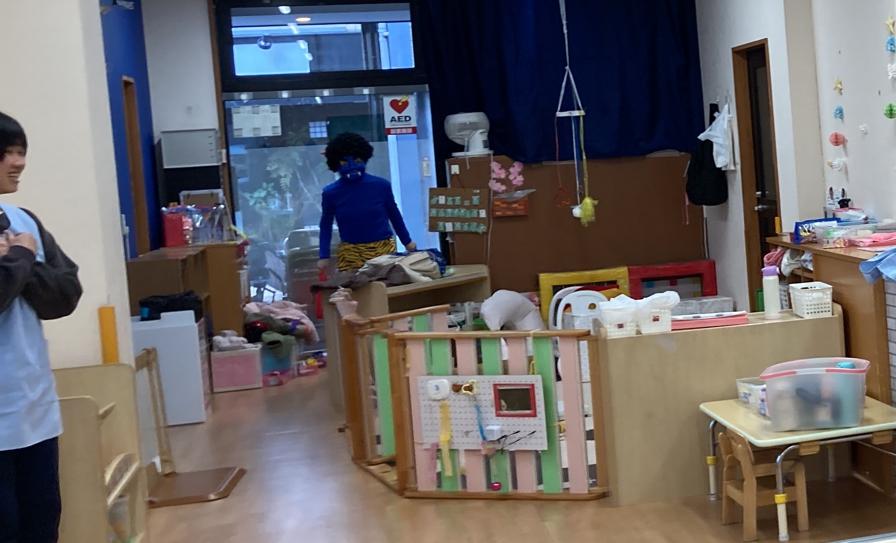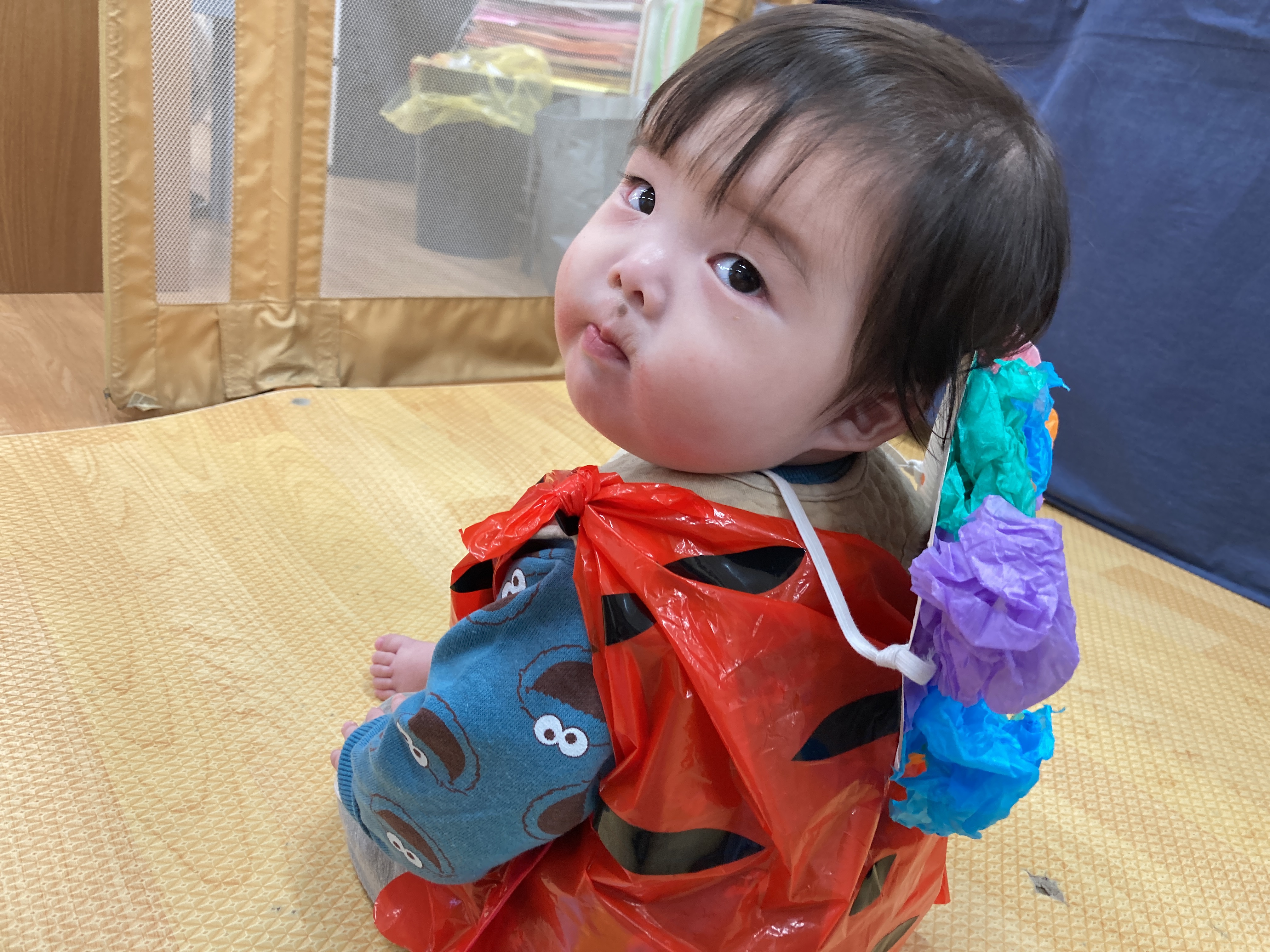 鬼を見て子どもたちはビックリ!先生の後ろに隠れてしまうお友だちもいましたが、