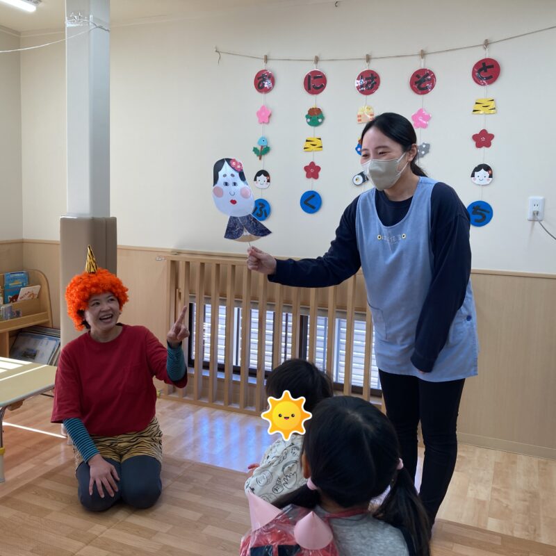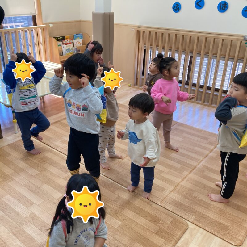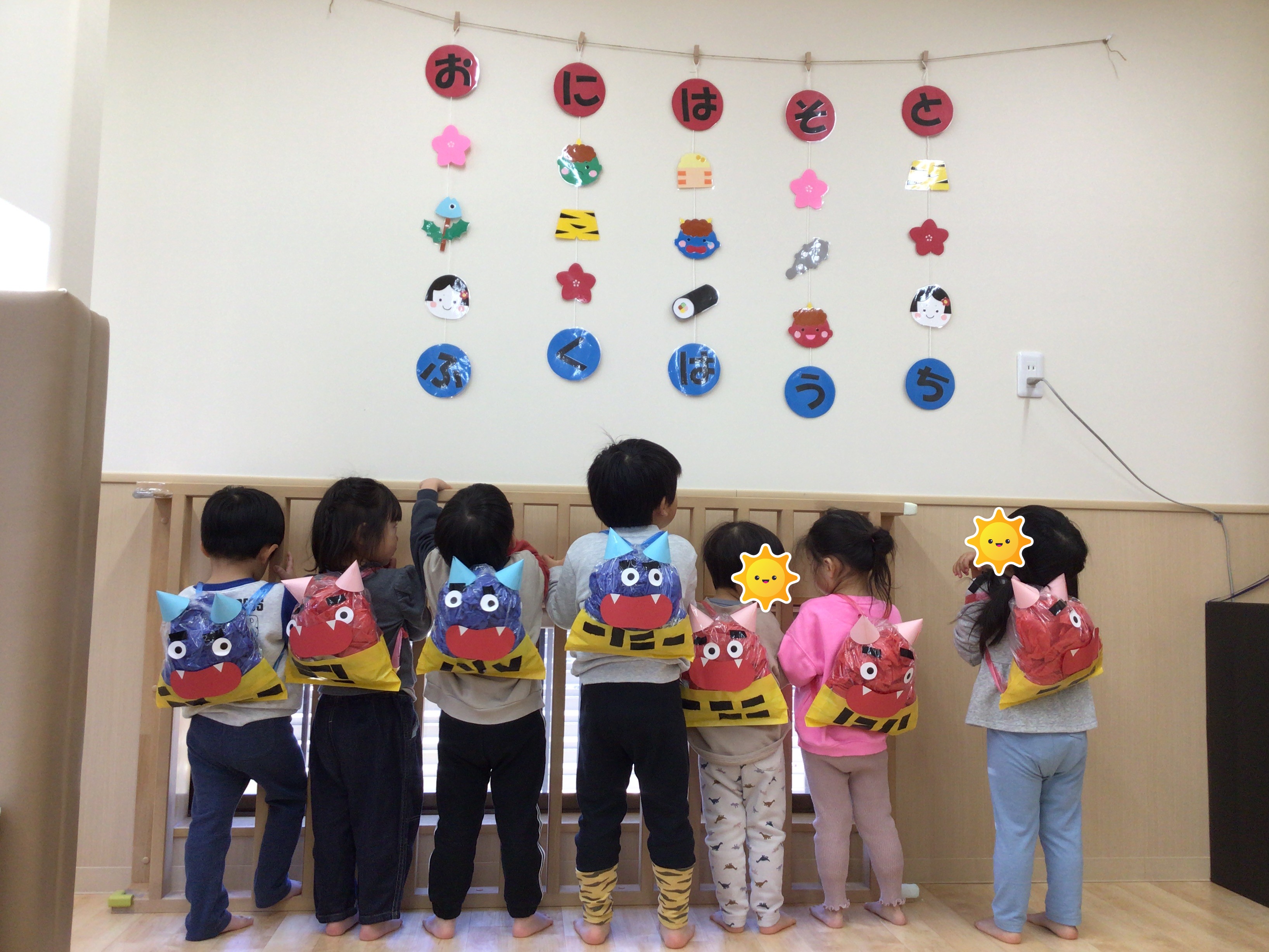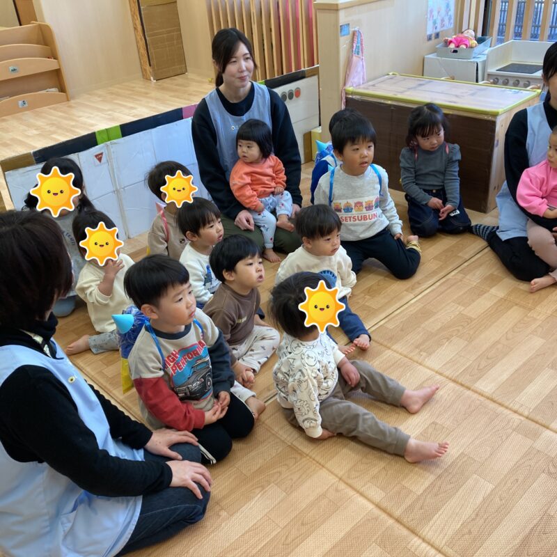 と毎日歌を歌ったり踊って節分会を楽しみにしていた(?)子どもたちはお部屋に集まると少しソワソワ・・・