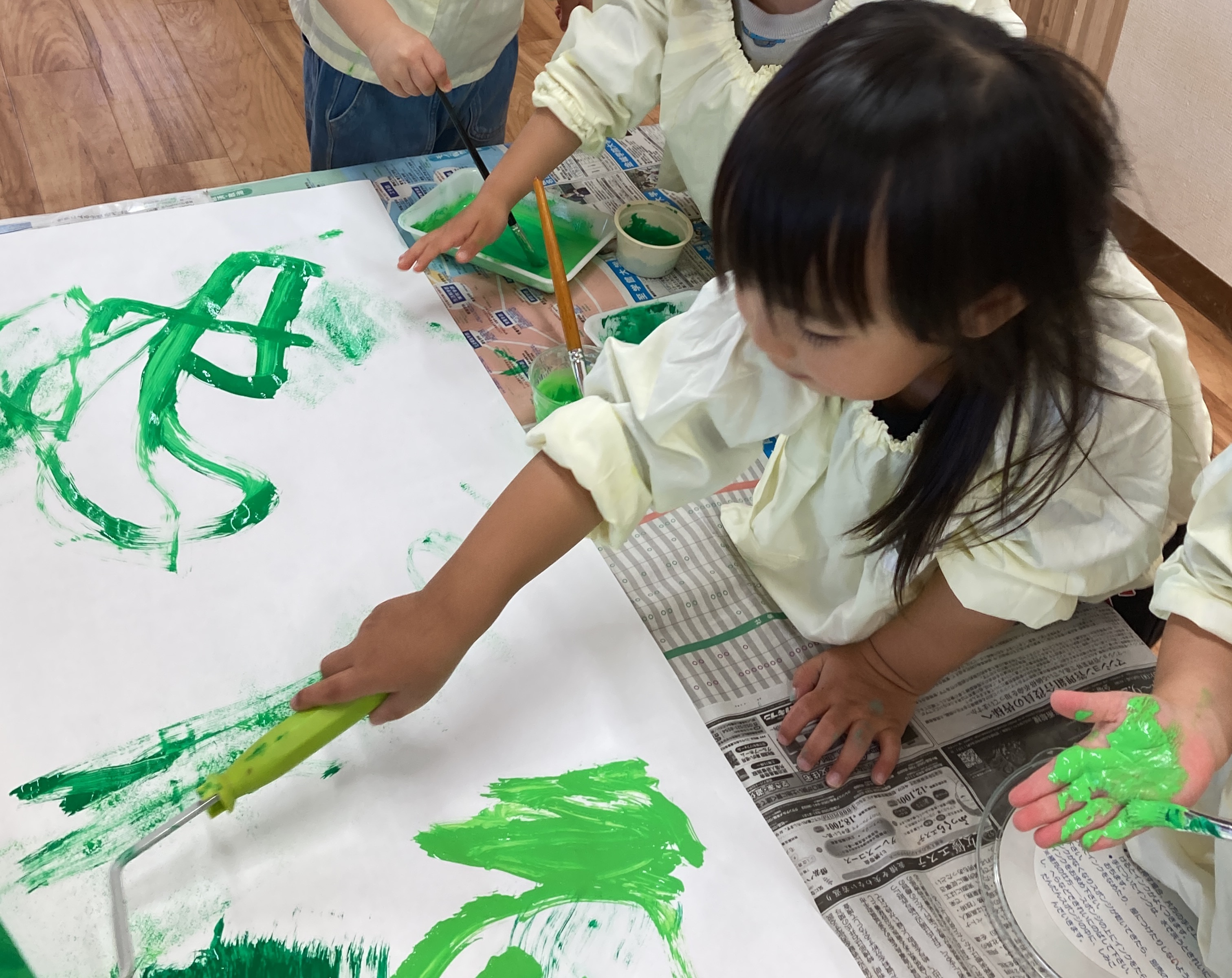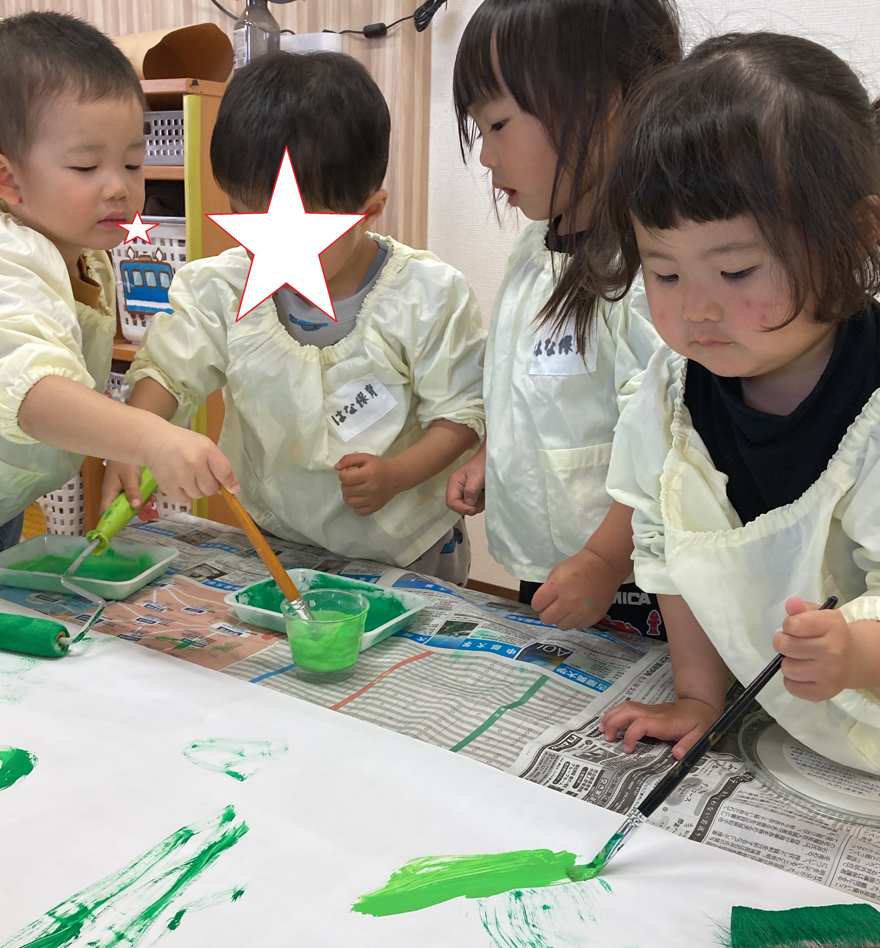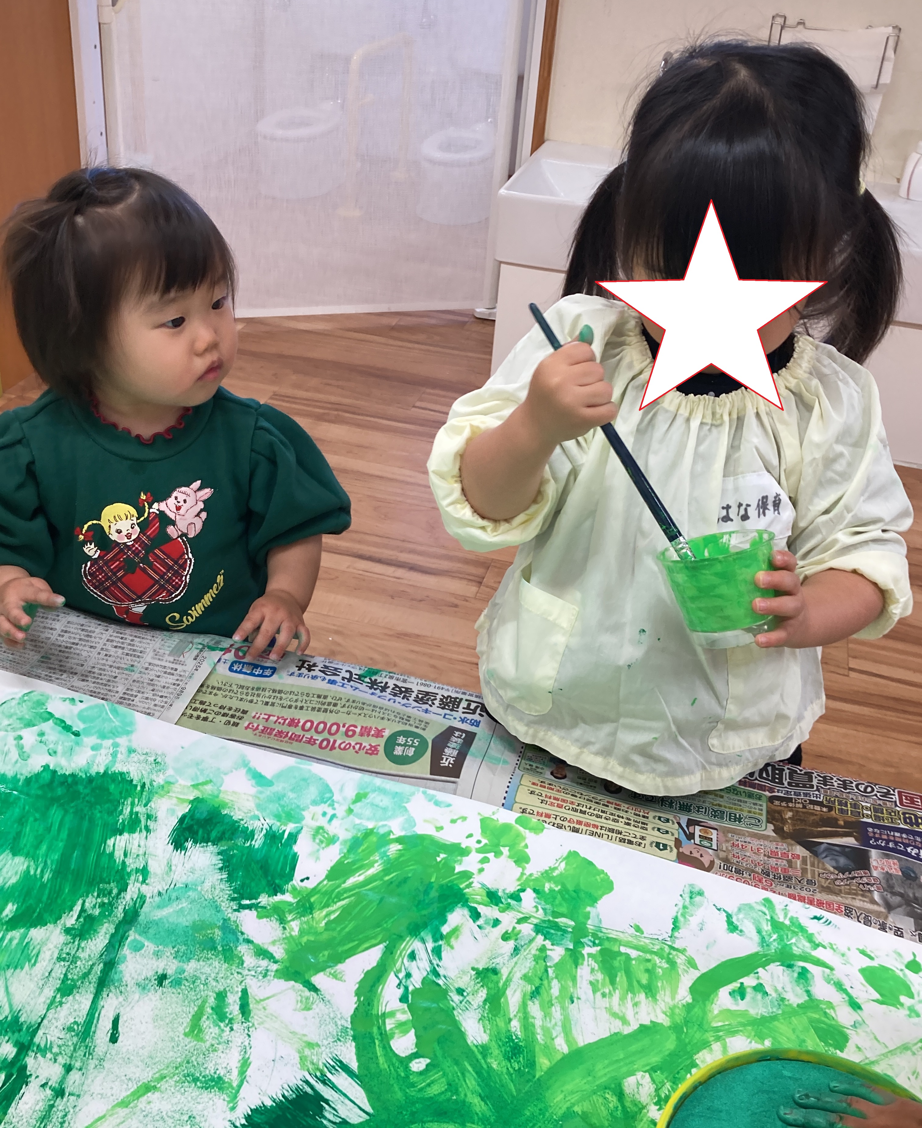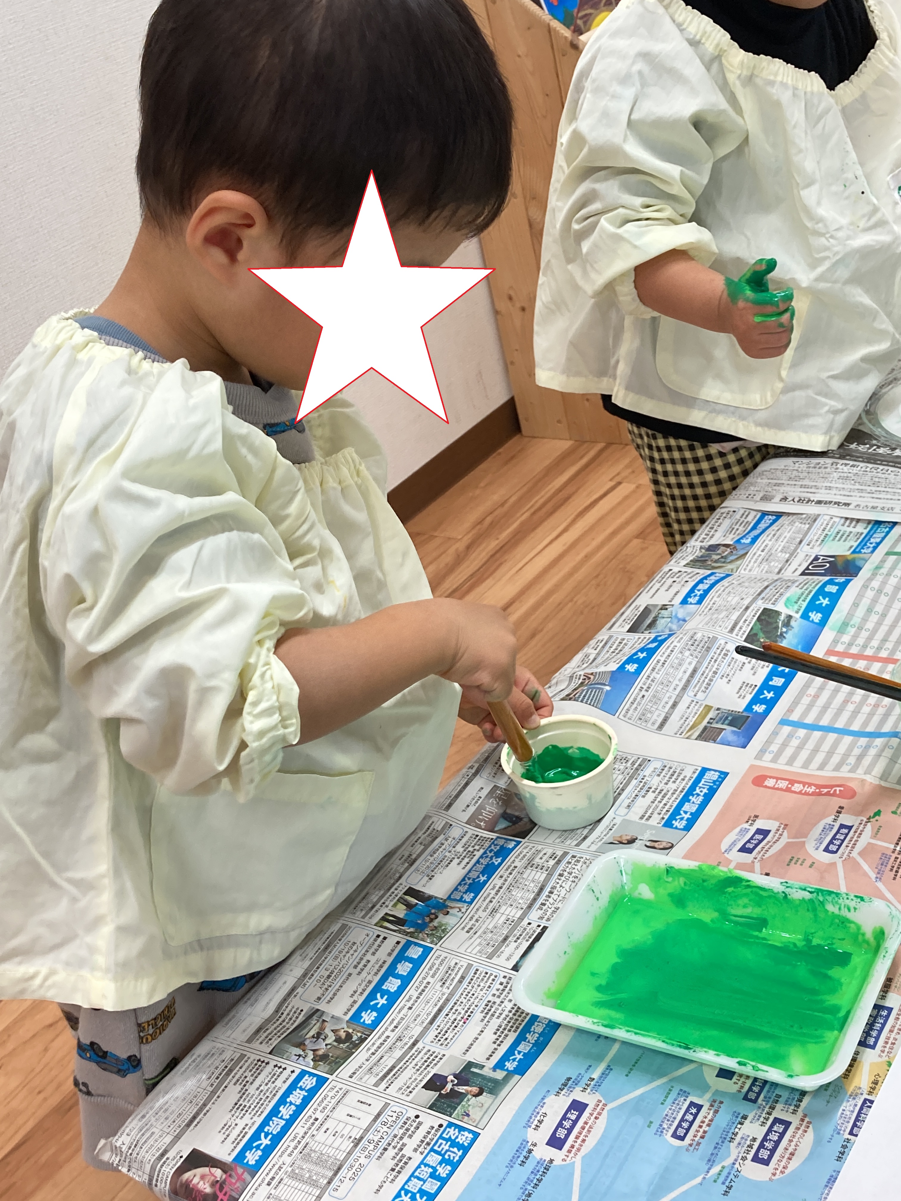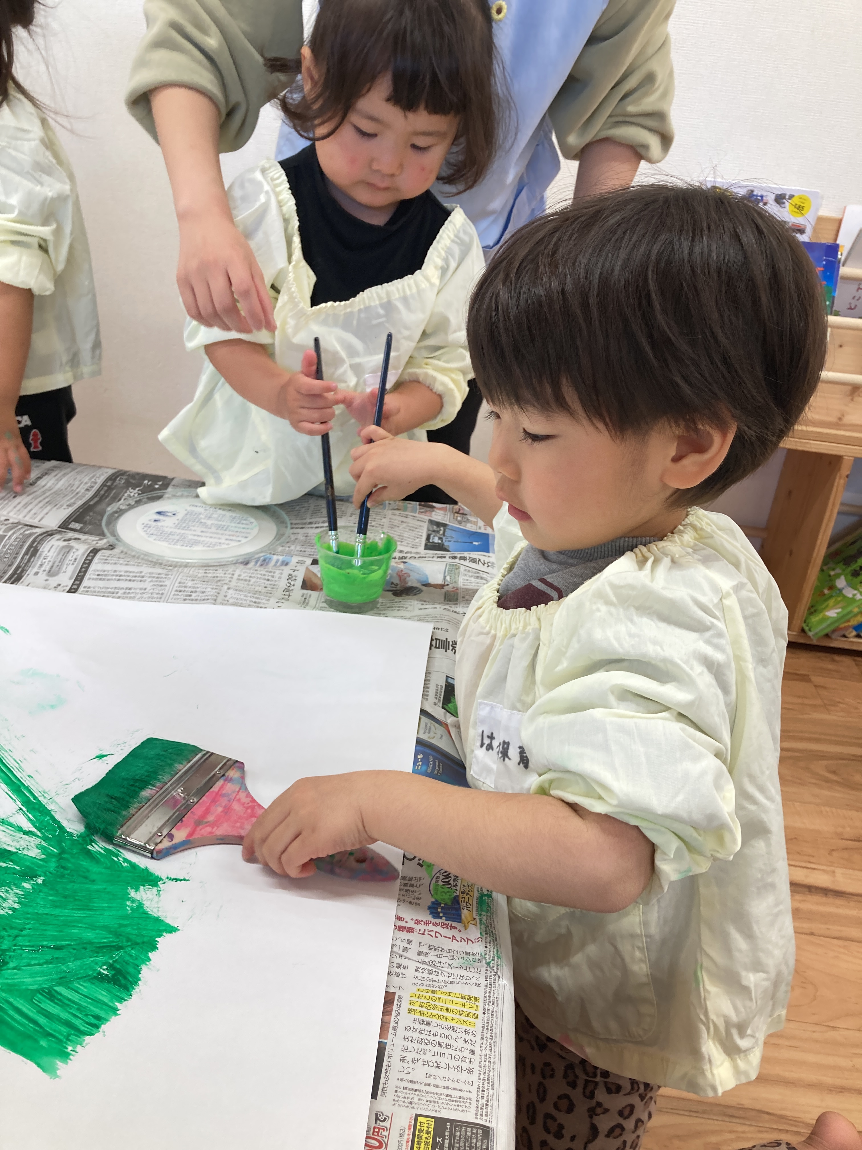 今年のクリスマス製作は、クリスマス会に向けて皆でクリスマスツリーを作りました。