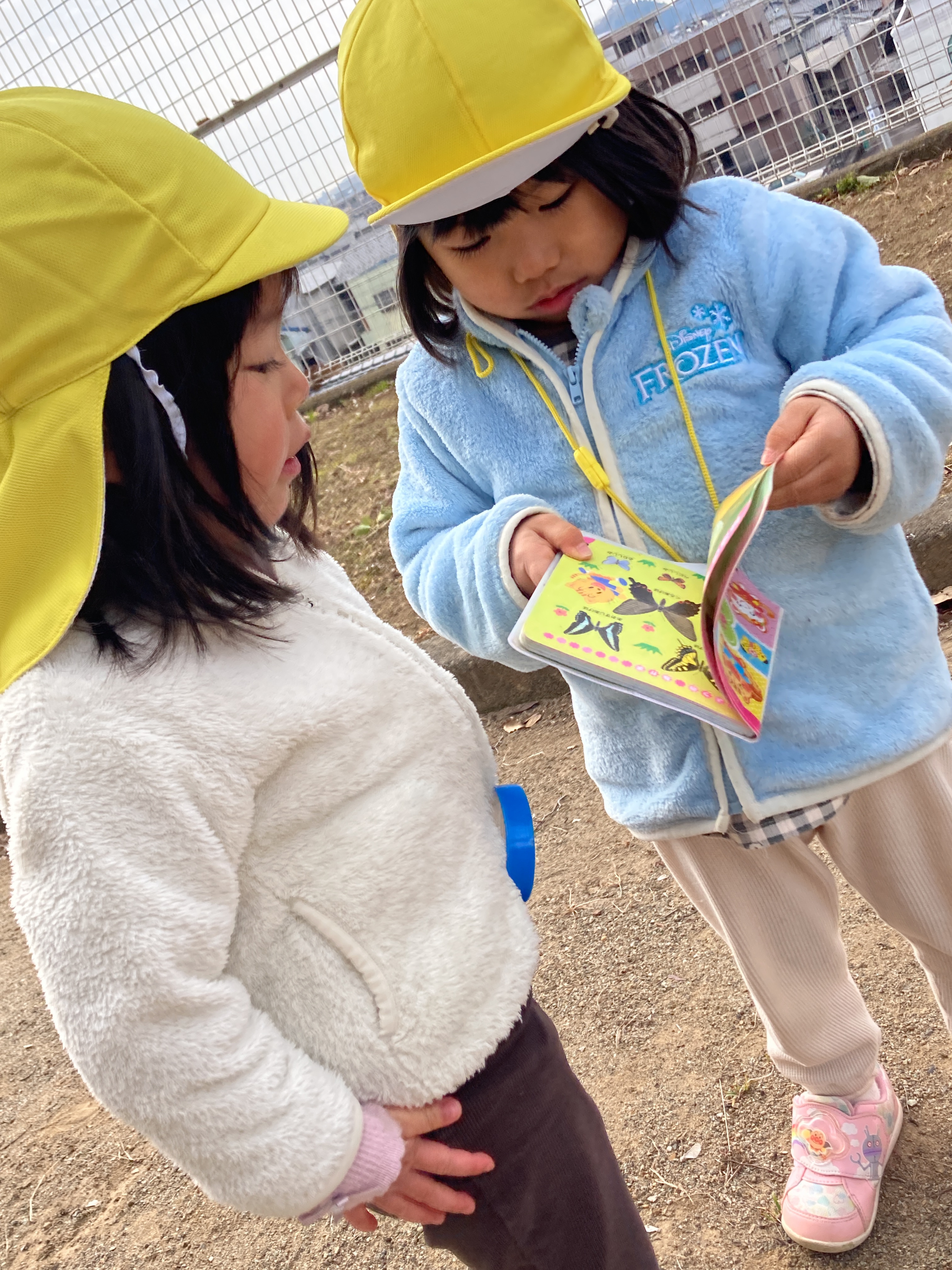 また、友だち同士で図鑑を見せ合ったり、「どこにいるかな?」と、協力して虫探しをする姿も見られました![]()