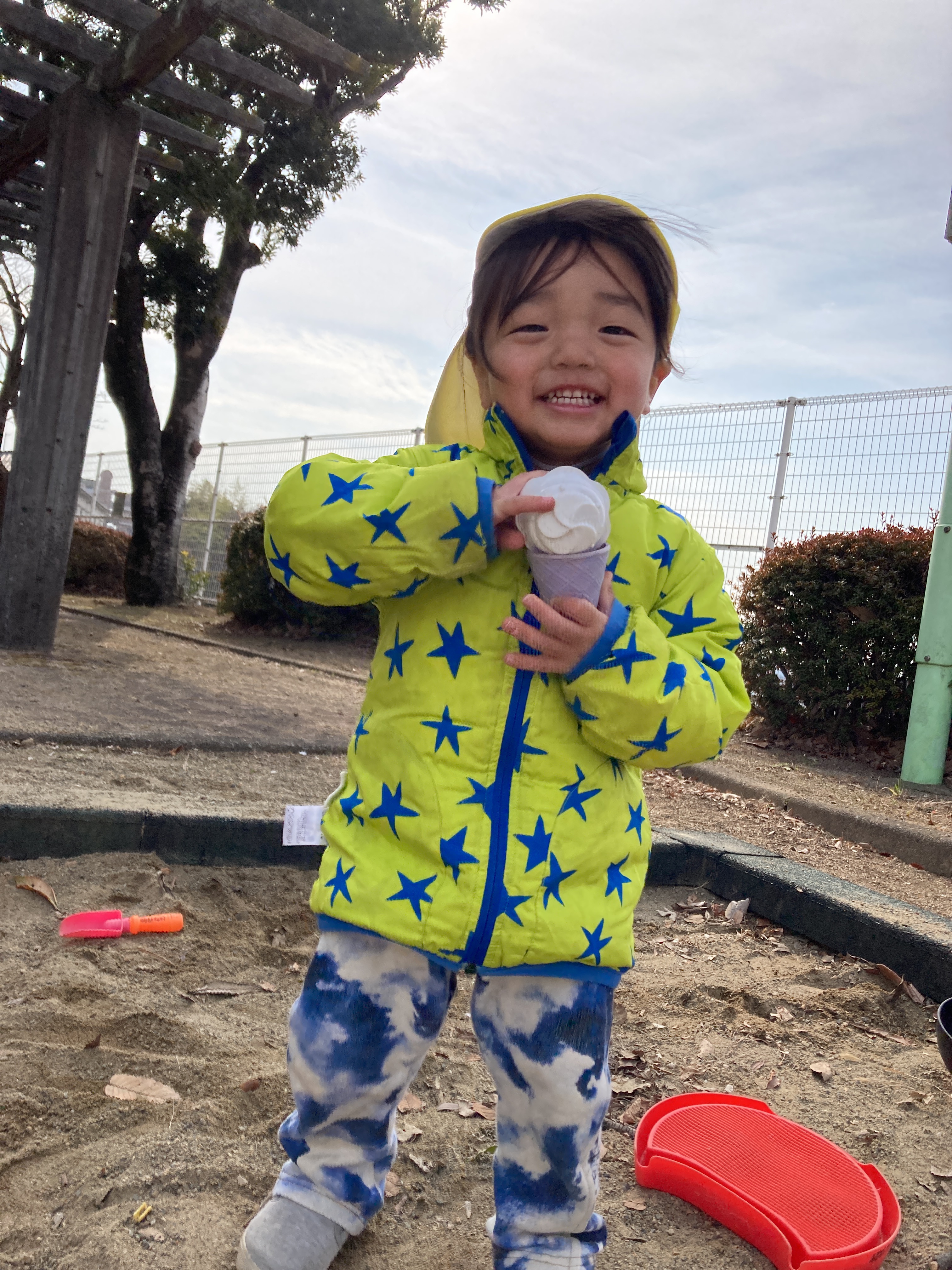 砂場ではアイスクリームを作ったり、保育者と一緒にお店屋さんごっこを楽しんだりしました![]()