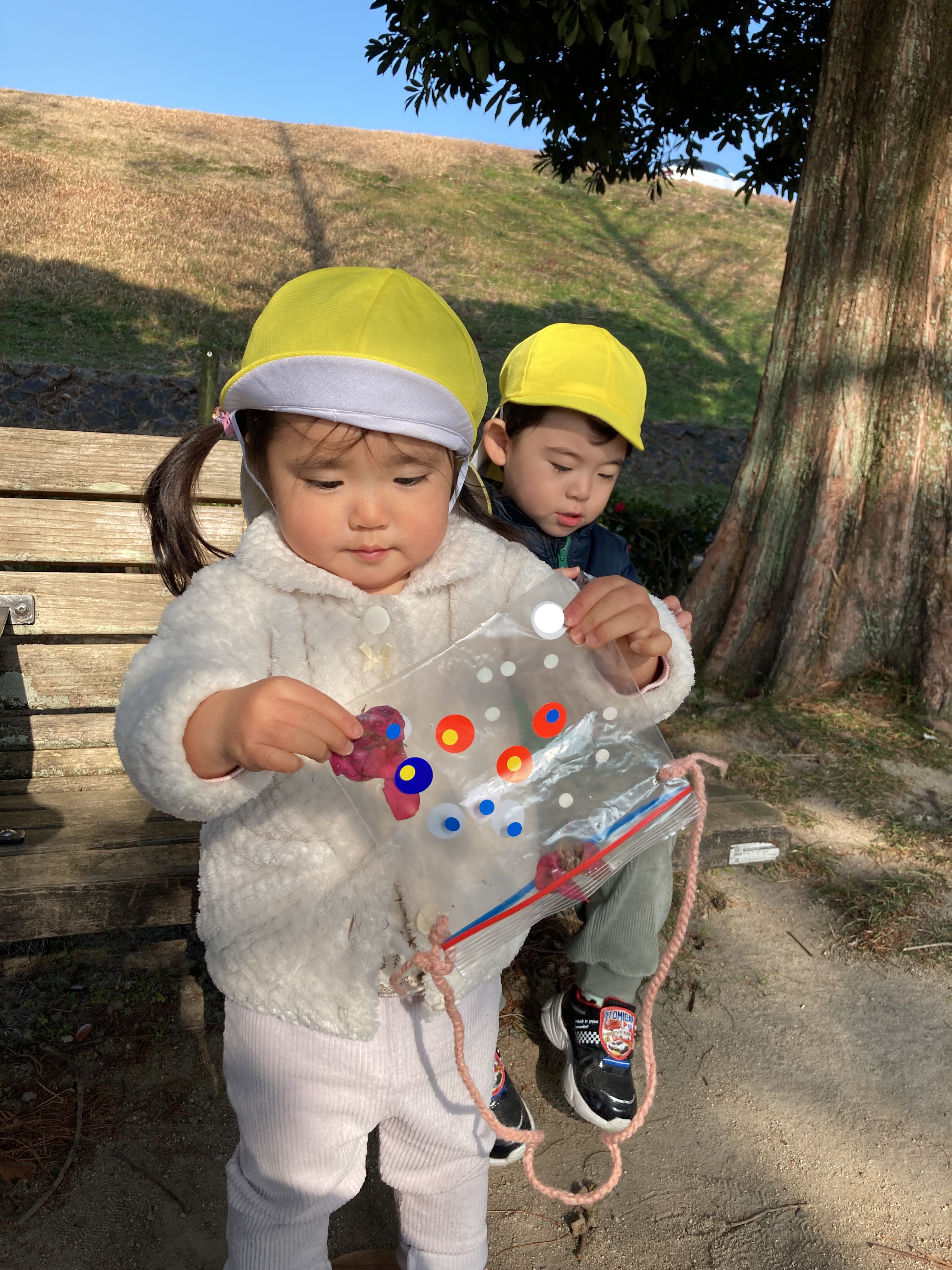 園周辺にはいくつか公園があるので、行き先によって落ちている葉っぱや木の実が違うのもまた楽しいところです![]()