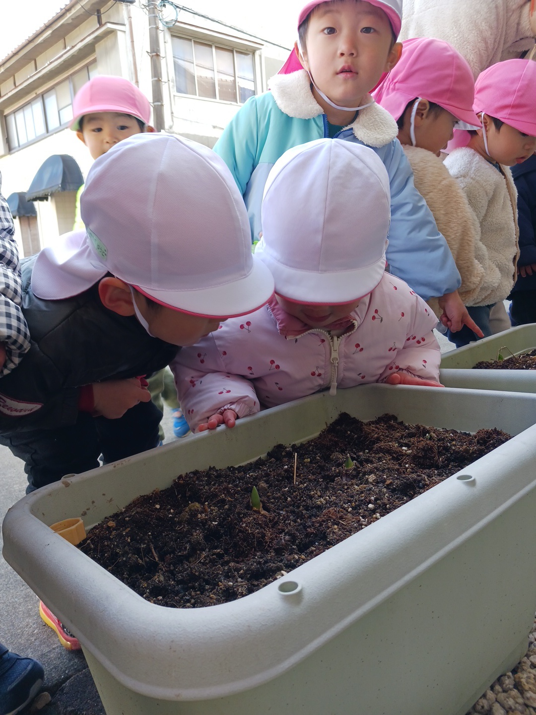 からの、みんなで植えた球根にも