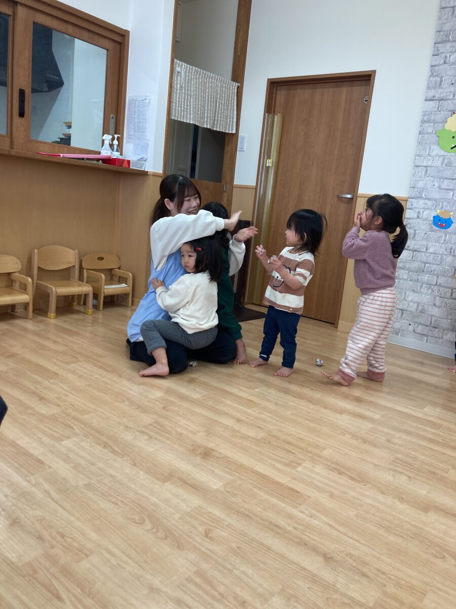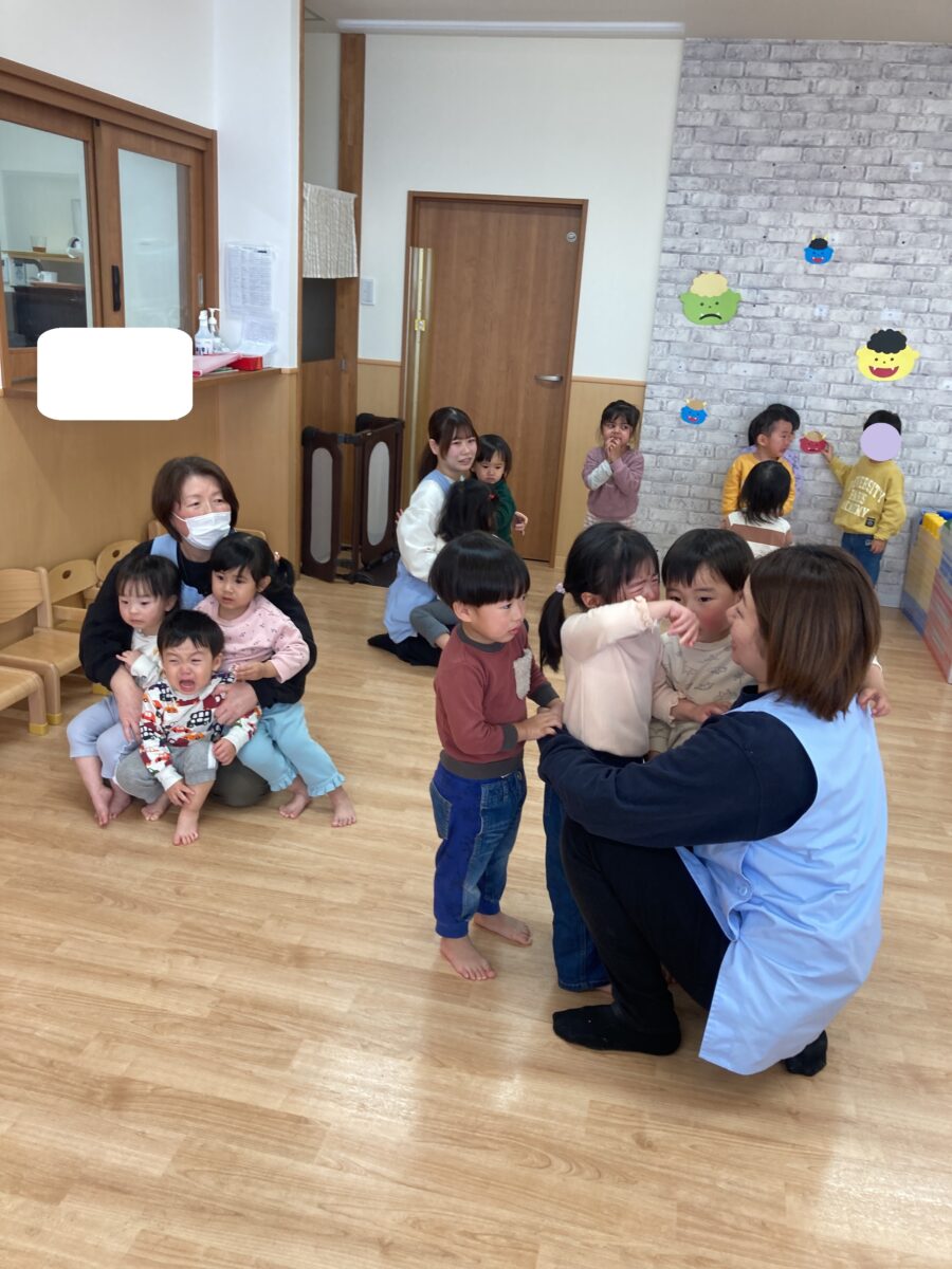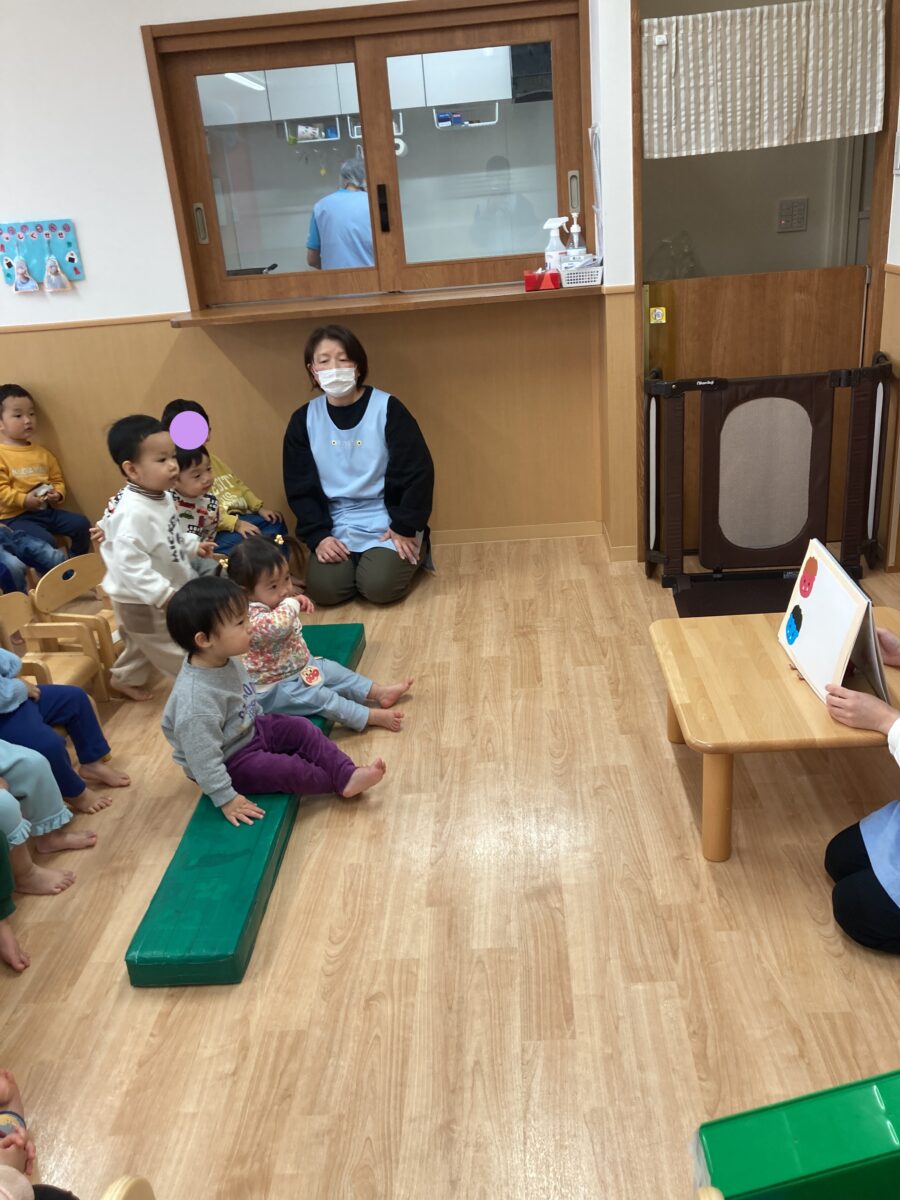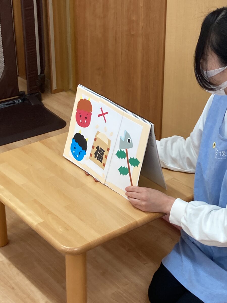 節分ってなにかな?鬼さんは何が嫌いなのかな?豆まきの絵本もみんな真剣に見てくれました!