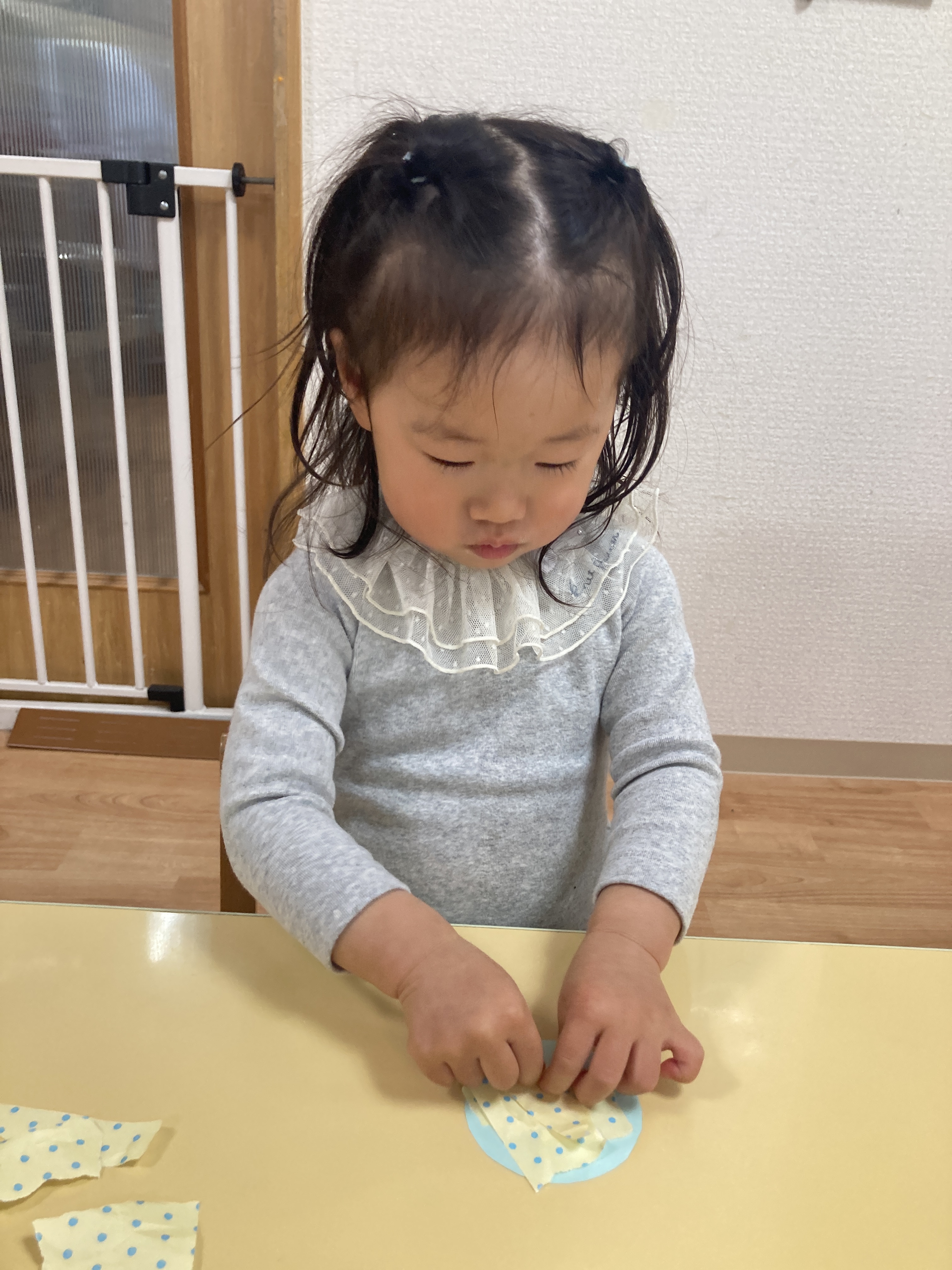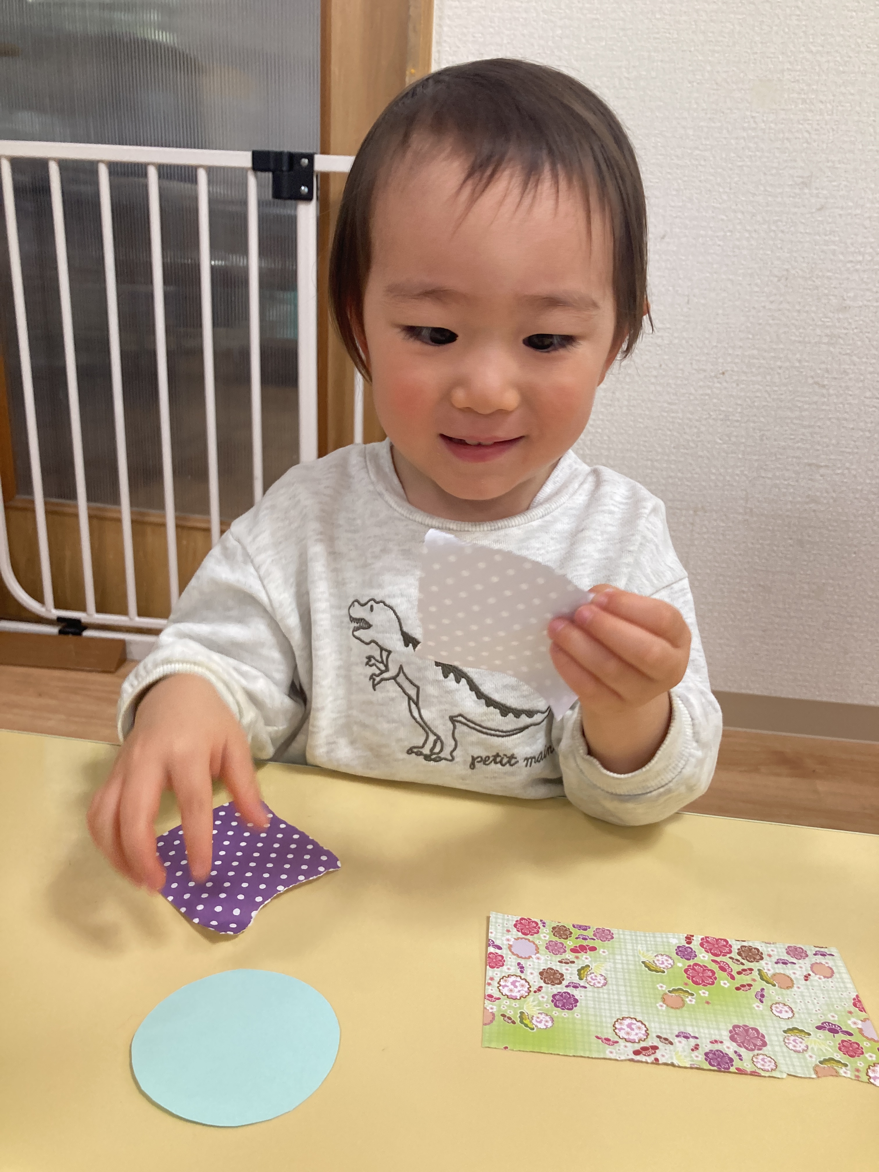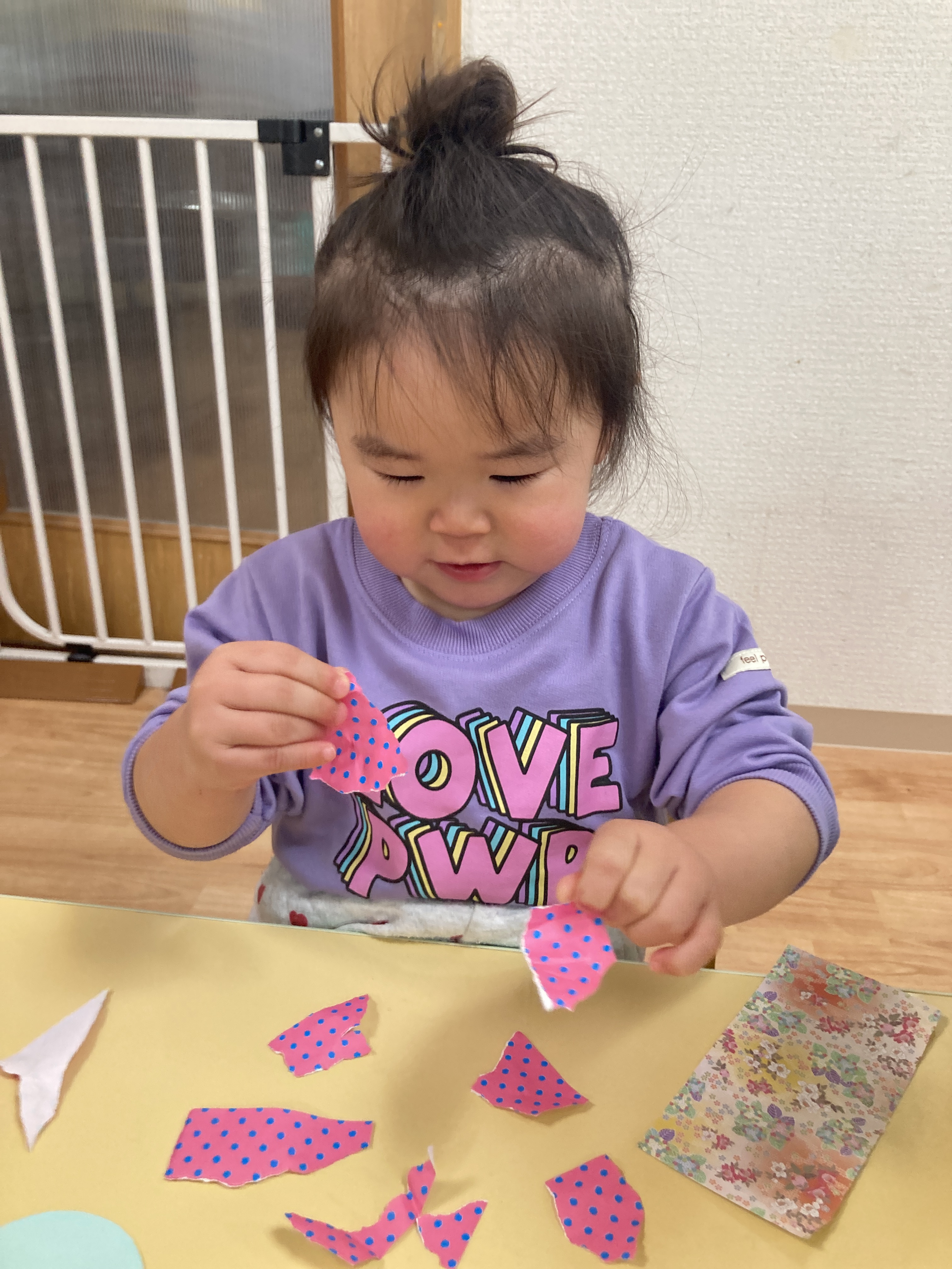 自分で選んだお気に入りの紙を大きくちぎってみたり…
