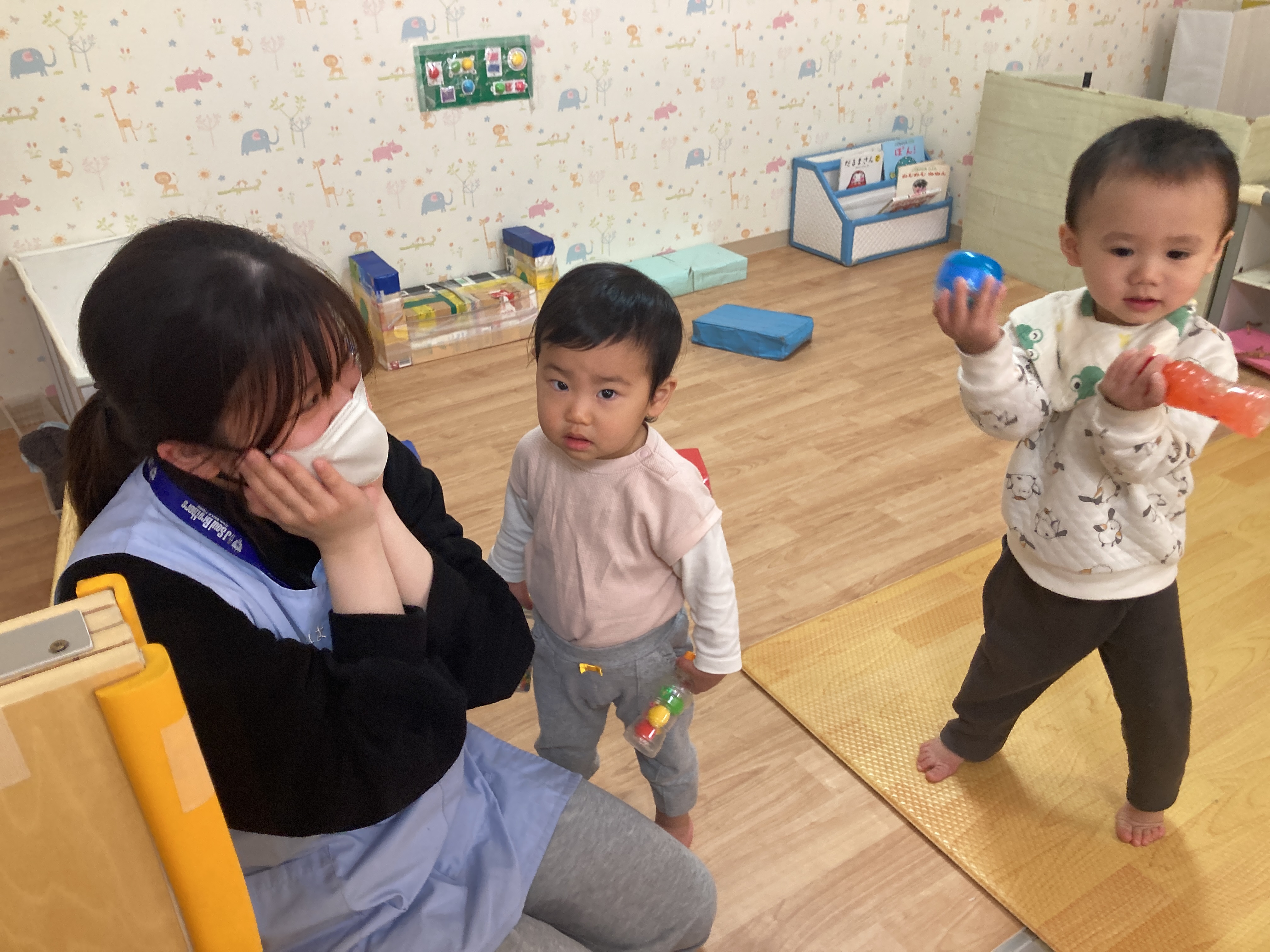 ひなまつりの歌を歌うと、マラカスを持って一緒に演奏してくれるももぐみさんです![]()