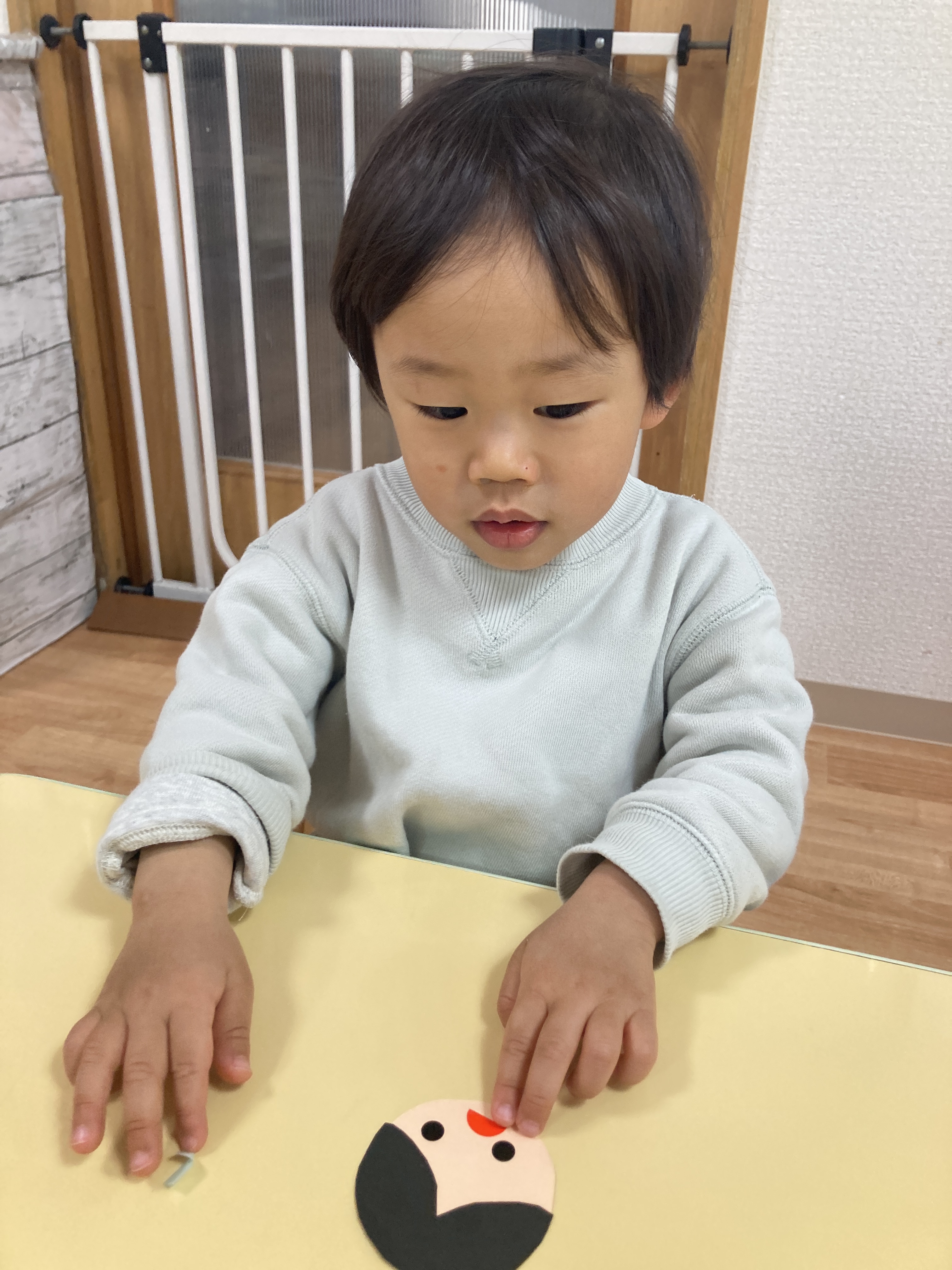 自分の思うところに目と口のシールを器用に貼り付けています![]()