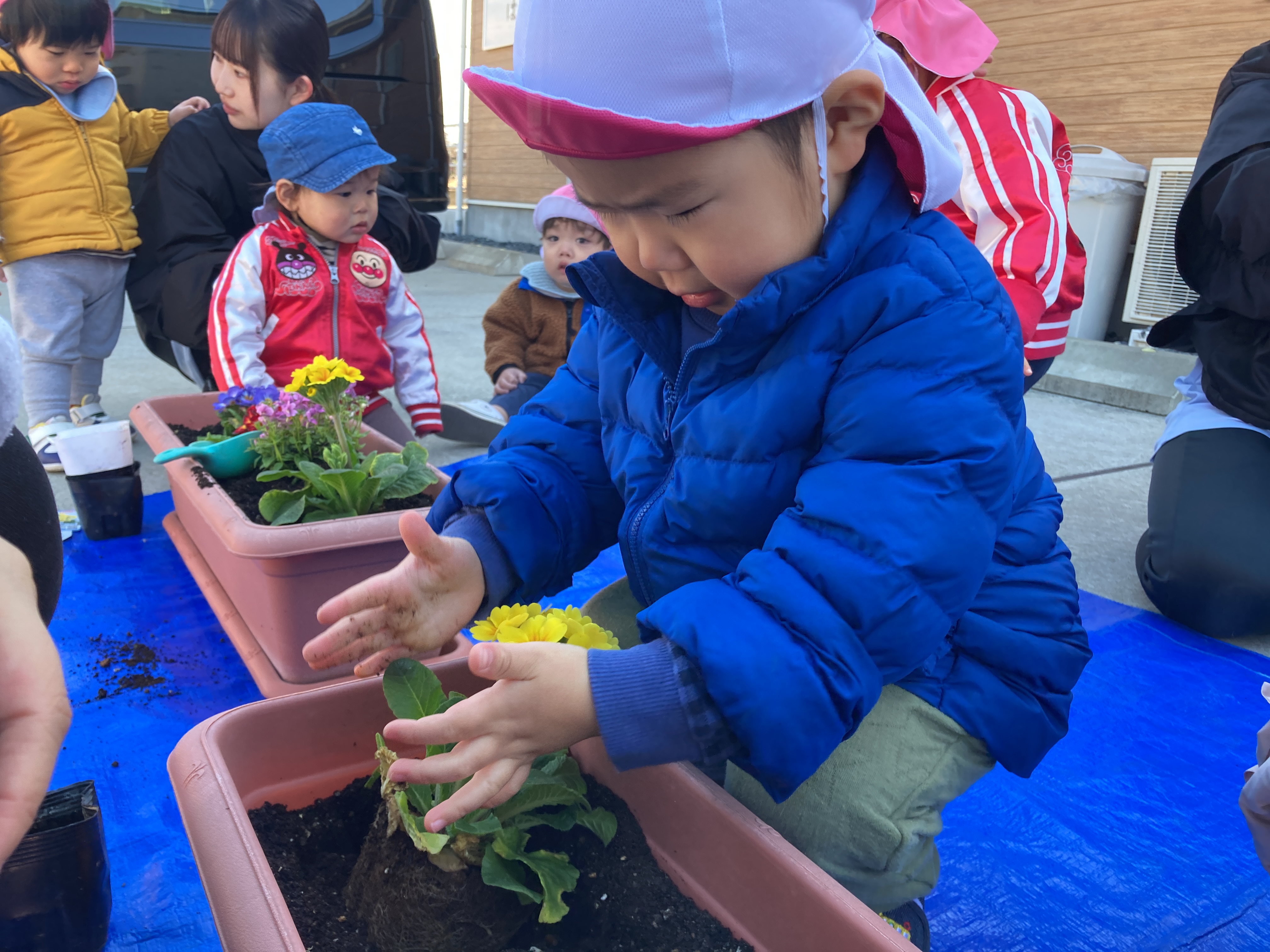 卒園式や入園式に向けて、子どもたちと一緒にお花を植えました🌺